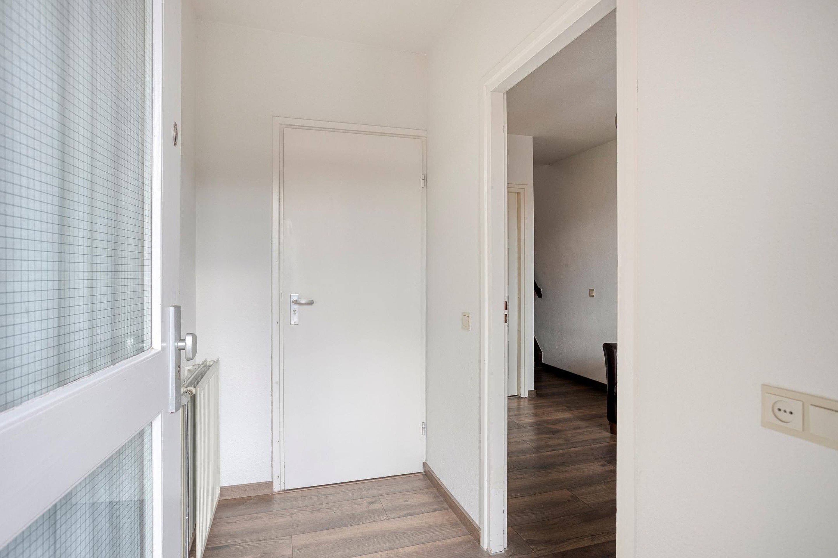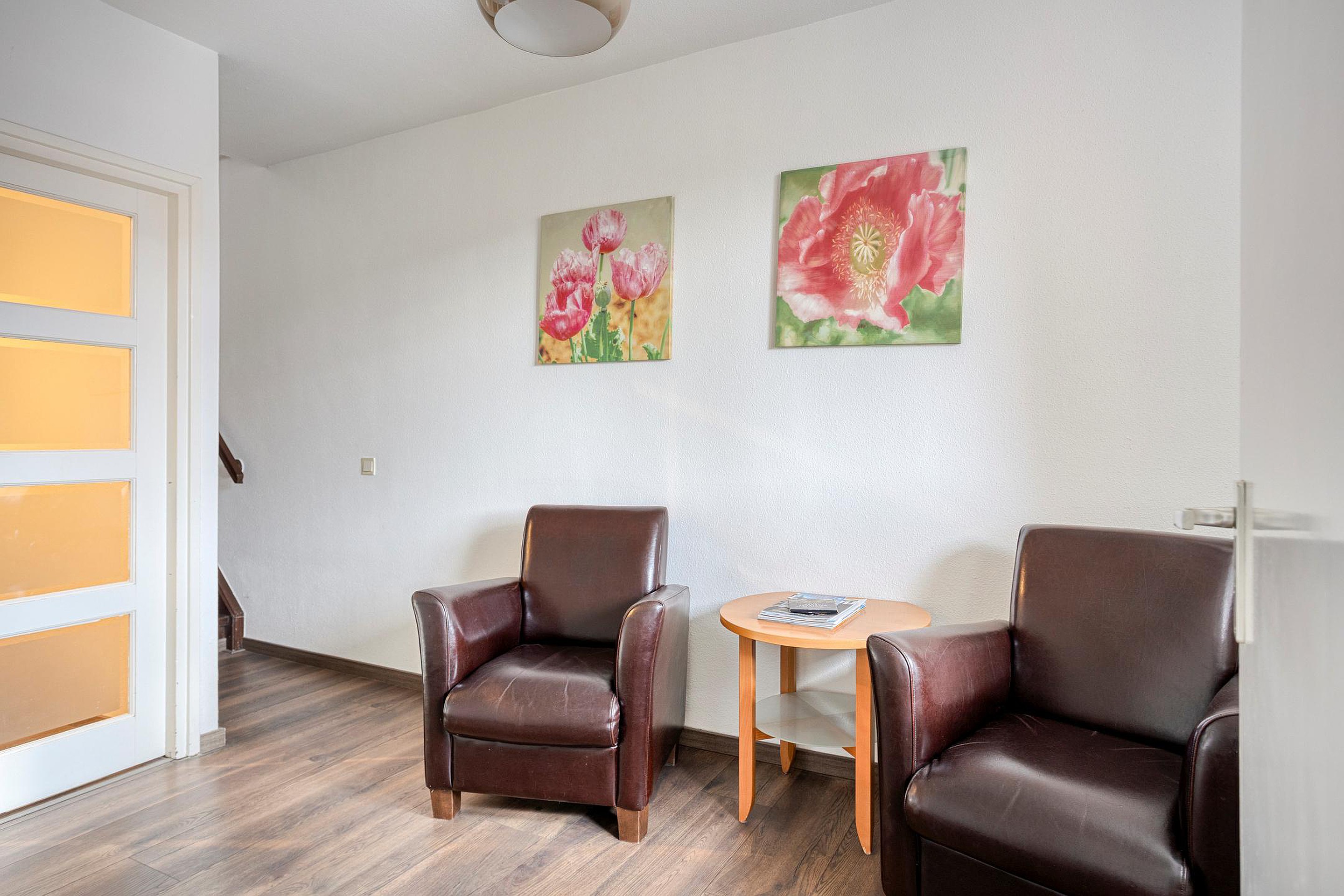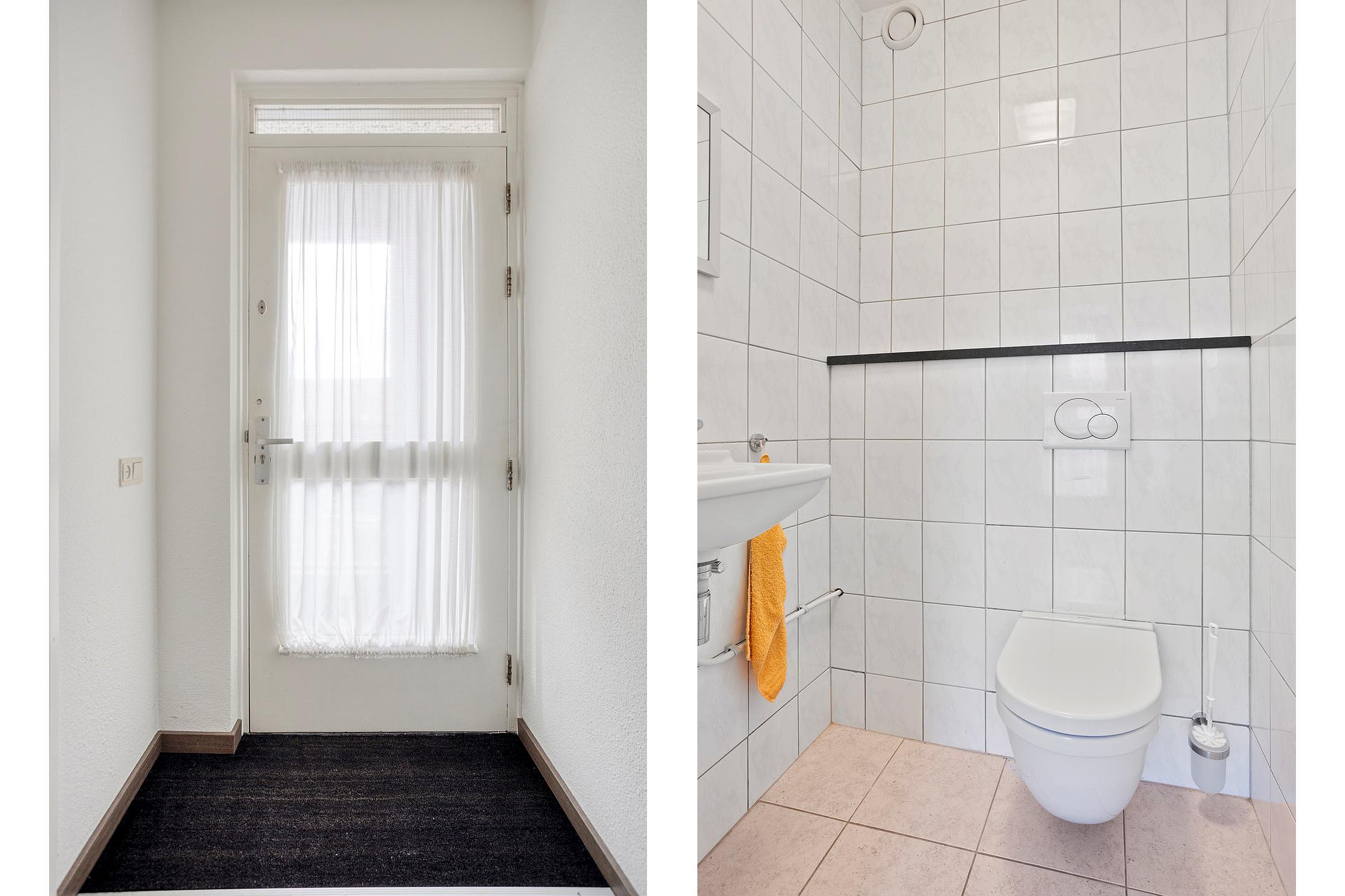 Entree/hal met toiletruimte voorzien van een wandcloset en fonteintje. Vanuit de hal is ook een fijne werk- of studeerkamer (10m2) bereikbaar, perfect voor wie graag vanuit huis werkt of een rustige plek zoekt.