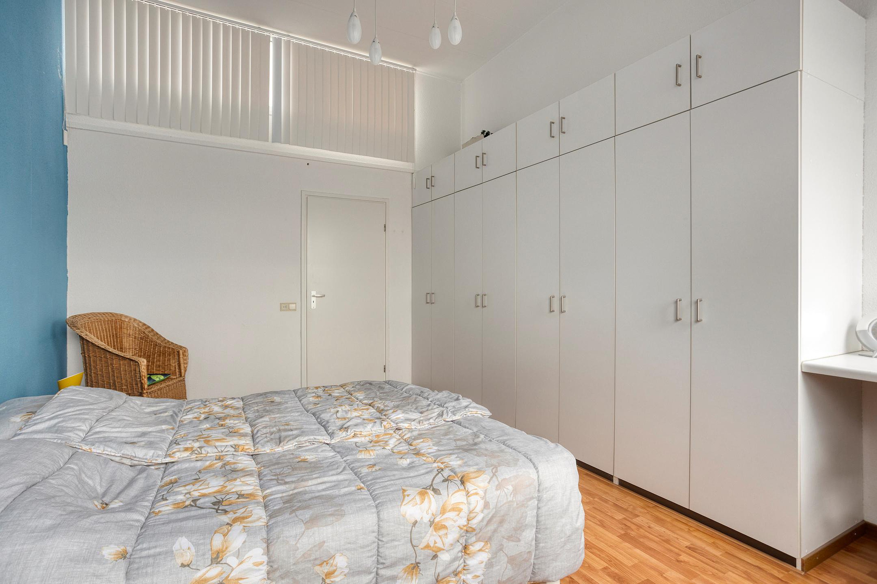 De tweede slaapkamer (15m2) ligt aan de achterzijde, is eveneens voorzien van een laminaatvloer en is extra ruim door het dichtmaken van de vide. Deze kamer heeft een mooie plafondhoogte en via een openslaande deur stap je zo de patio (5m2) op. De kunststof kozijnen met isolerende HR++ beglazing zorgen voor extra comfort en isolatie.