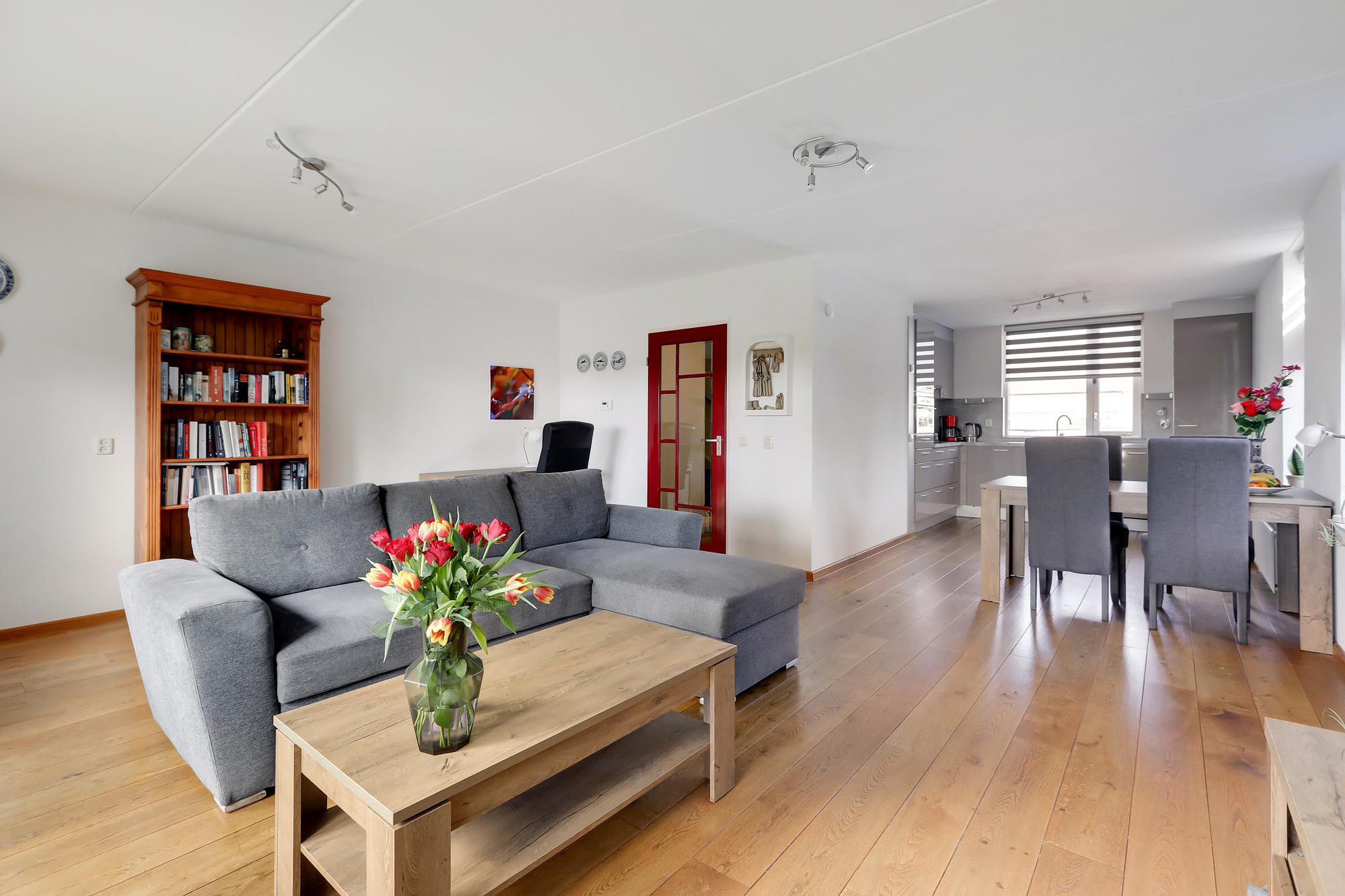 De woning is gebouwd in 1991 en beschikt over een moderne hoekkeuken, voorzien van diverse inbouwapparatuur. De lichte, L-vormige woon-eetkamer is afgewerkt met een massief eikenvloer, radiatoren, houten kozijnen met dubbel glas en openslaande terrasdeuren die leiden naar het grote, zonnige dakterras van maar liefst 49 m2 met een grote veranda. Hier kunt u genieten van het buitenleven en prettig uitzicht.