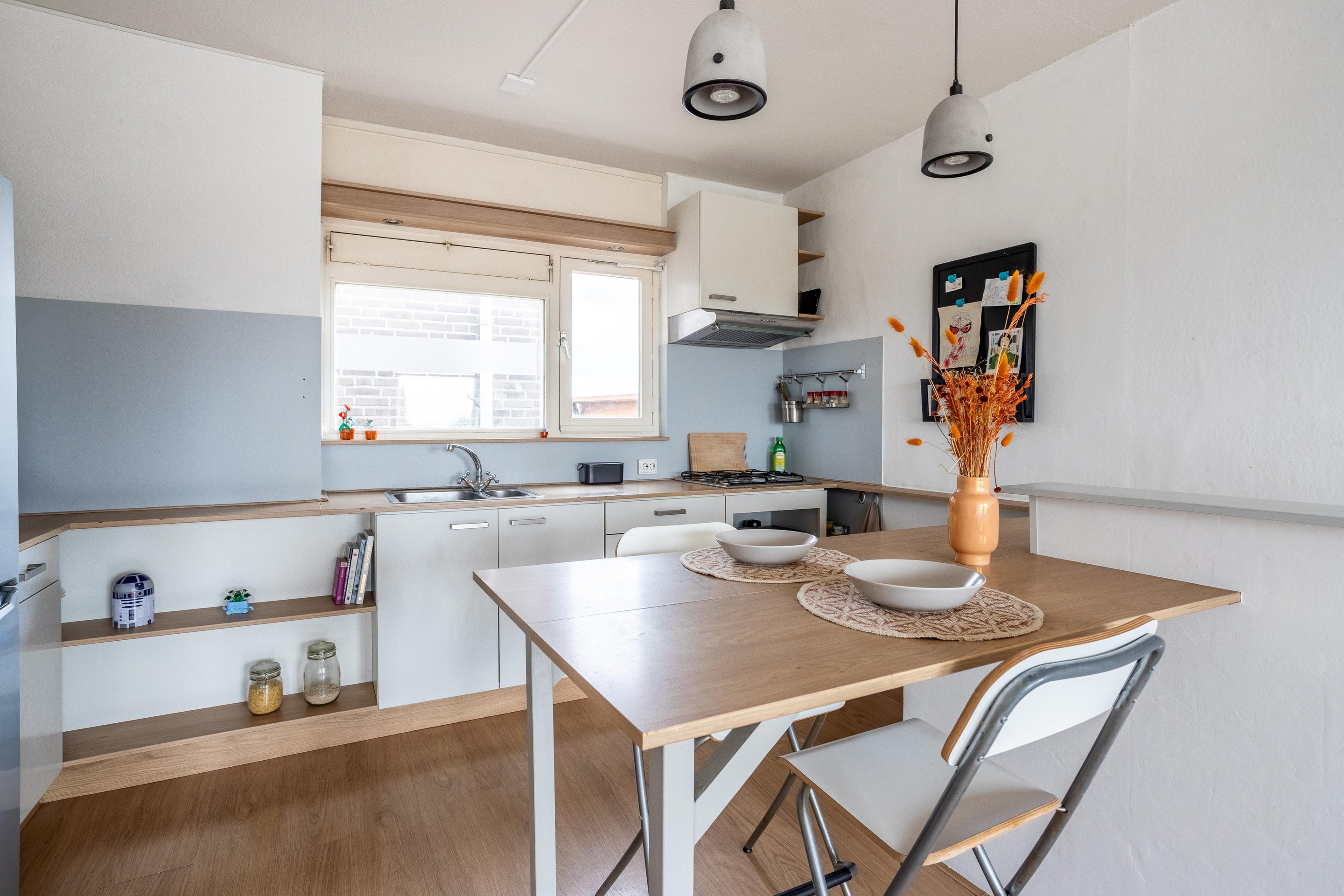 De ruime woonkamer met grote ramen zorgt direct voor een prettige, lichte sfeer. De open keuken sluit naadloos aan op de woonkamer. Deze is neutraal maar sober van inrichting - wellicht ideaal om deze direct naar eigen smaak in te richten.