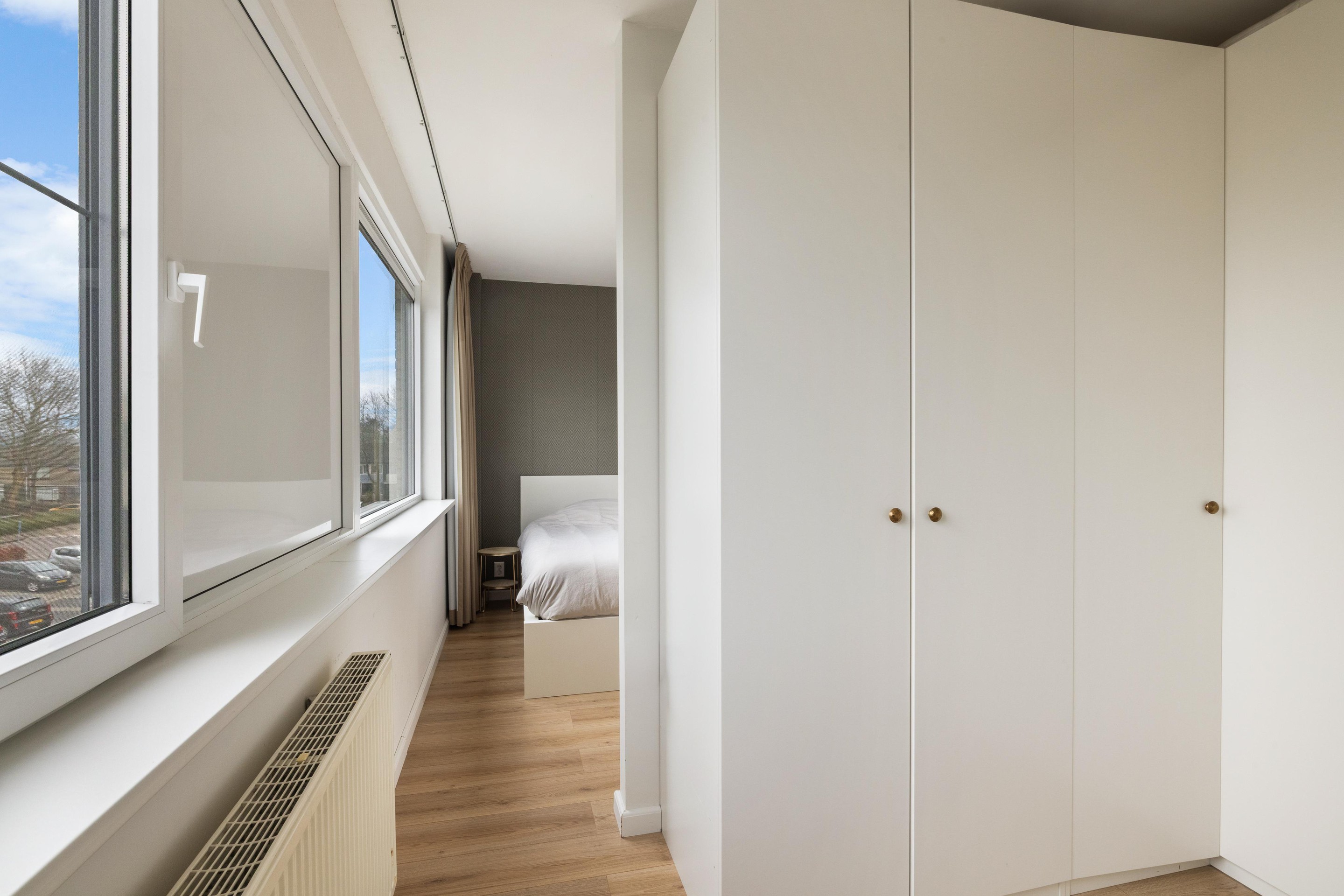 Op de bovenliggende etage vindt u een ruime overloop met een praktische bergkast. Hier bevinden zich drie ruime slaapkamers. De slaapkamer aan de voorzijde meet ca. 17 m2 en is voorzien van een comfortabele inloopkast. Aan de achterzijde bevinden zich twee slaapkamers van ca. 14 m2 en ca. 10 m2.