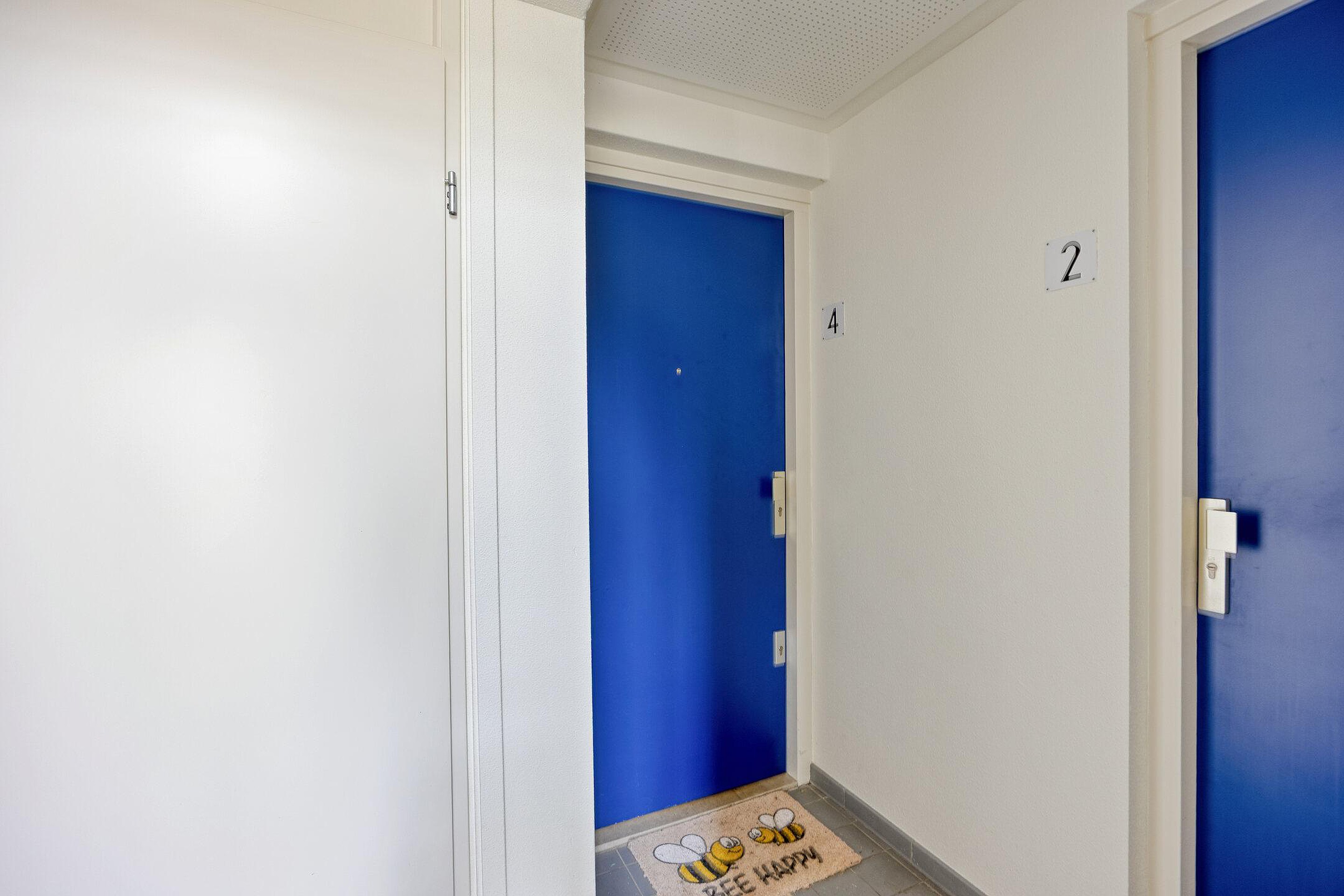 Op de begane grond van dit kleinschalige complex komt u binnen in de nette centrale hal waar u het bellentableau vindt, de brievenbussen, het trappenhuis en de toegang naar de appartementen.