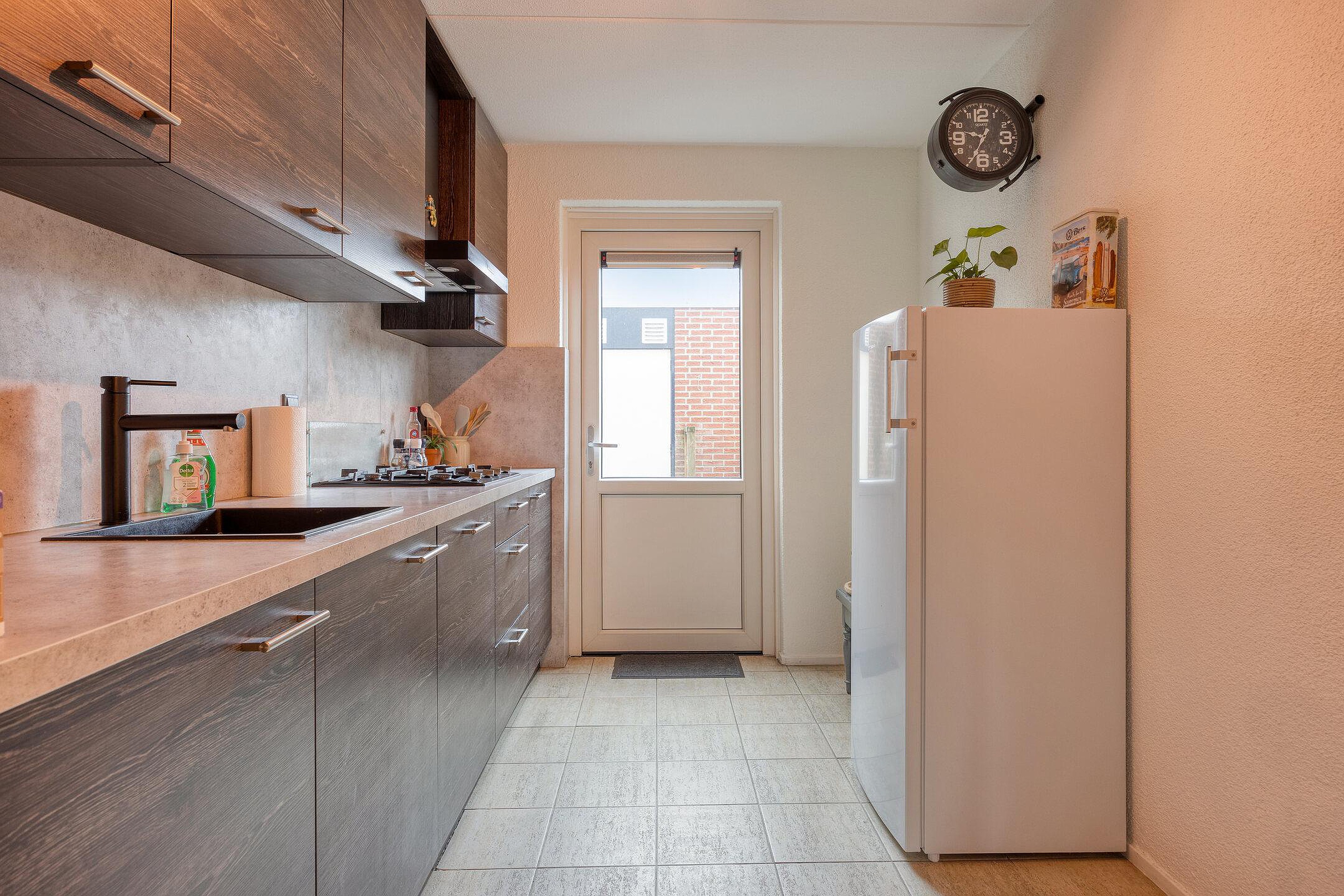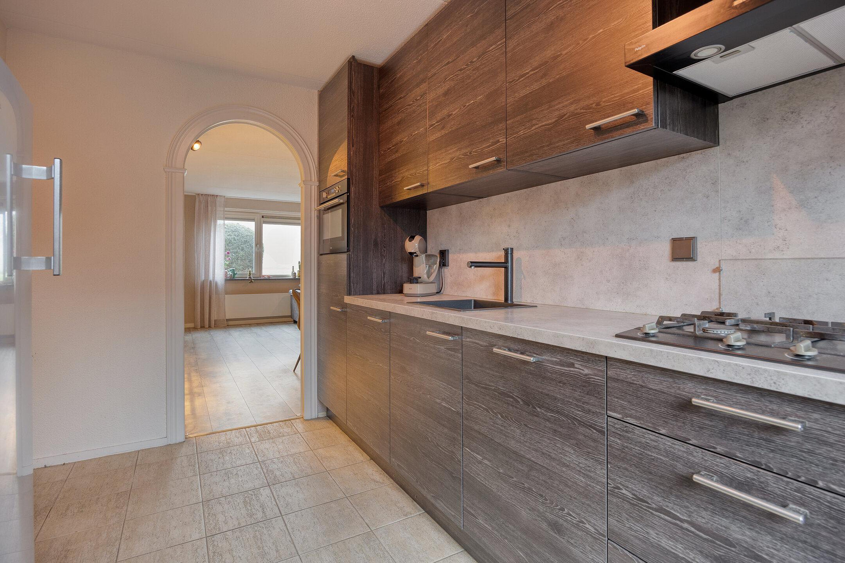 De woonkamer is heerlijk licht door de grote ramen op het Zuiden waar u uitkijkt op de tuin van het complex en het fietspad en de groenstrook. De ruime living is afgewerkt met nette wanden en plafonds en dezelfde laminaat als in de hal. Er is ruimplaats voor een al uw meubels en extra bergruimte vindt u in de grote trapkast. Via een open doorgang komt u in de keuken welke in 2019 volledig is vernieuwd. Deze is geplaatst in een wandopstelling en is uitgevoerd in een moderne stijl. De keuken is voorzien van een royaal werkblad, diverse moderne apparatuur en veel bergruimte in de diverse laden en kasten. In de keuken vindt u ook de achterdeur waar u zo de fijne achtertuin in stapt voor een kop koffie op het terras.