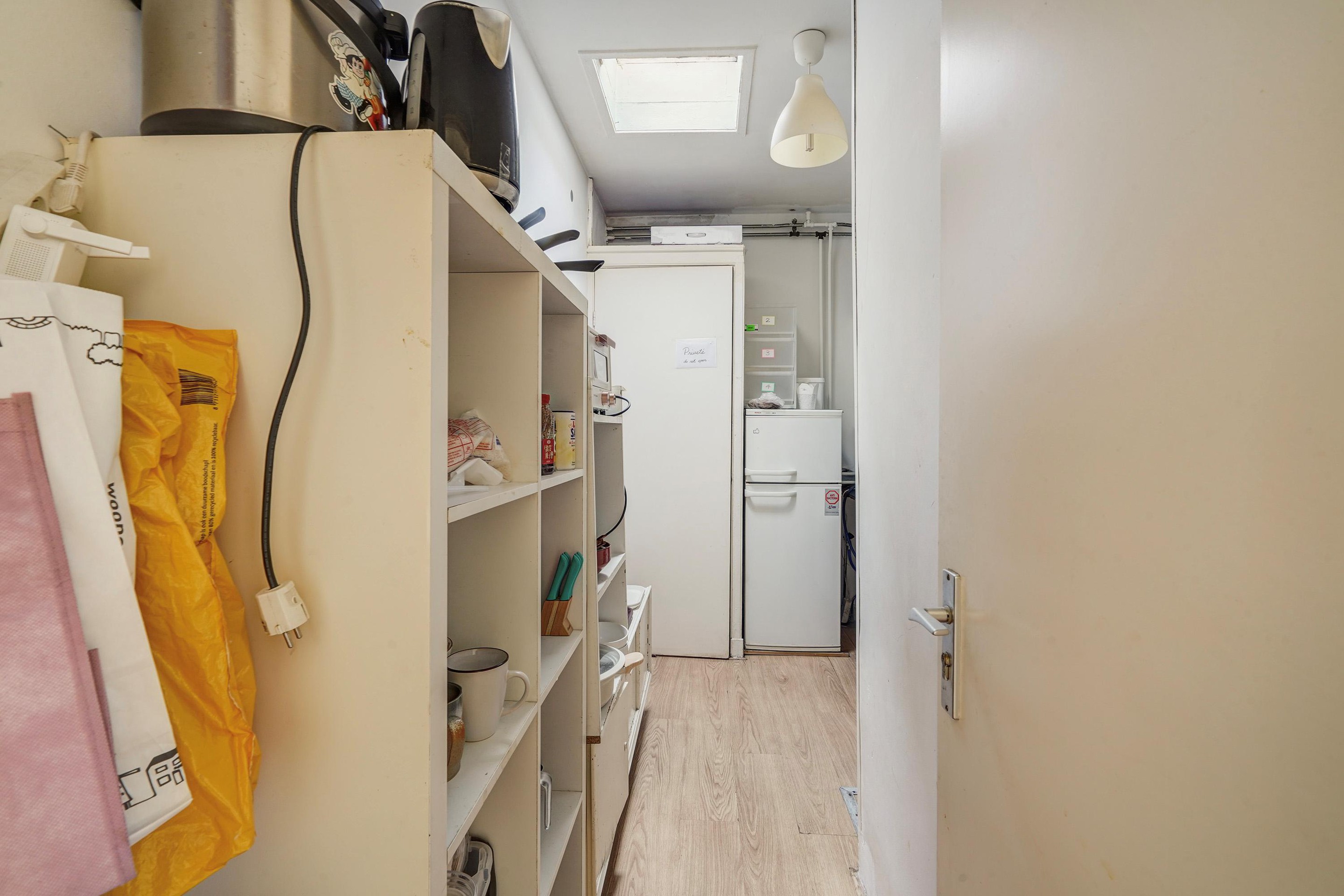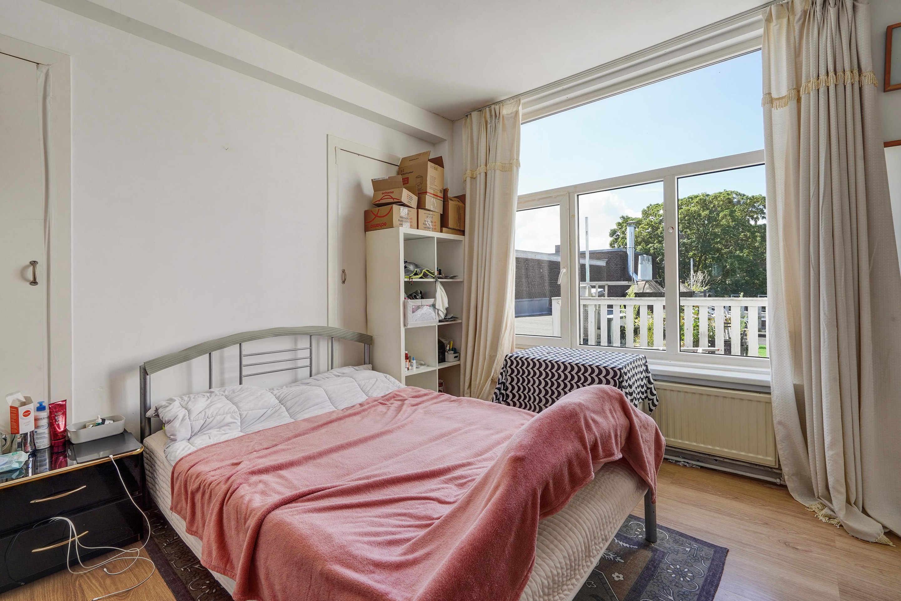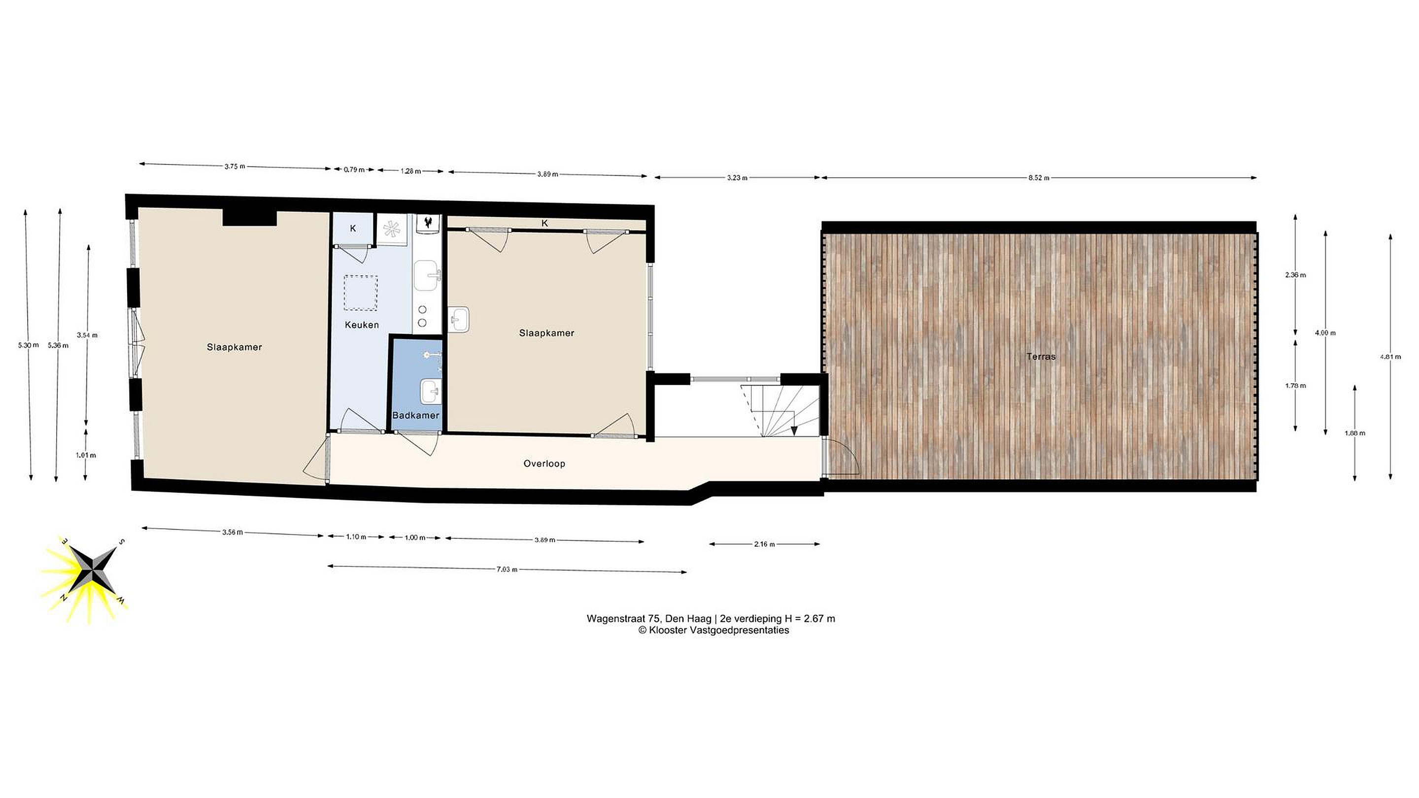 De tweede verdieping biedt nog een grote slaapkamer aan de voorzijde, een compacte maar praktische keuken, en een tweede slaapkamer aan de achterzijde. Tussen de keuken en de slaapkamer bevindt zich een complete badkamer. Het hoogtepunt van deze verdieping is het ruime terras aan de achterzijde, dat een geweldige buitenruimte biedt voor ontspanning. De overloop verbindt alle ruimtes en biedt toegang tot het terras.