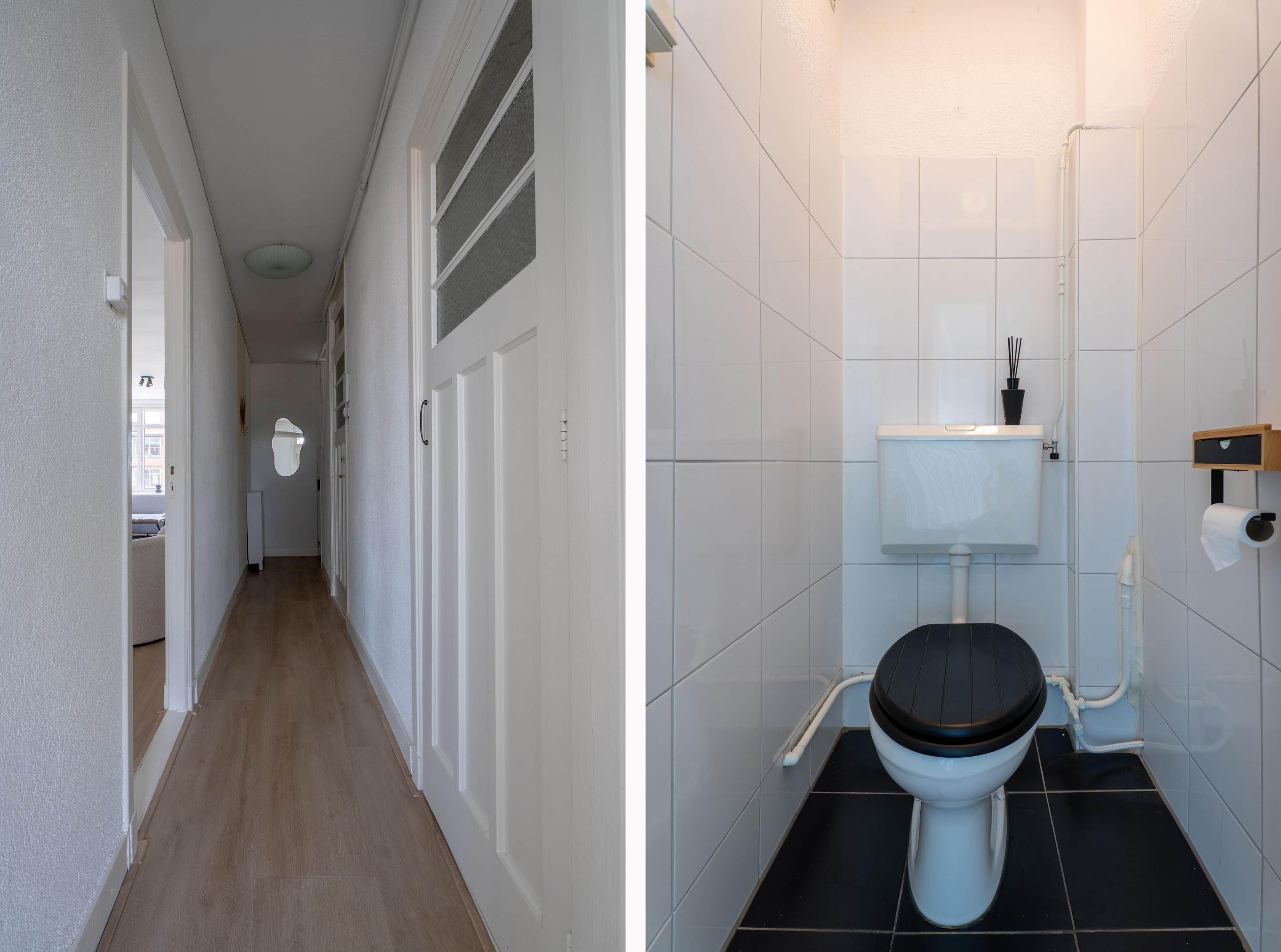 Woningentree met toegang tot de hal met de de trapopgang naar de woningentree. Entree met toegang tot de hal, het toilet, de keuken, de eetkamer (of slaapkamer) en de woonkamer.