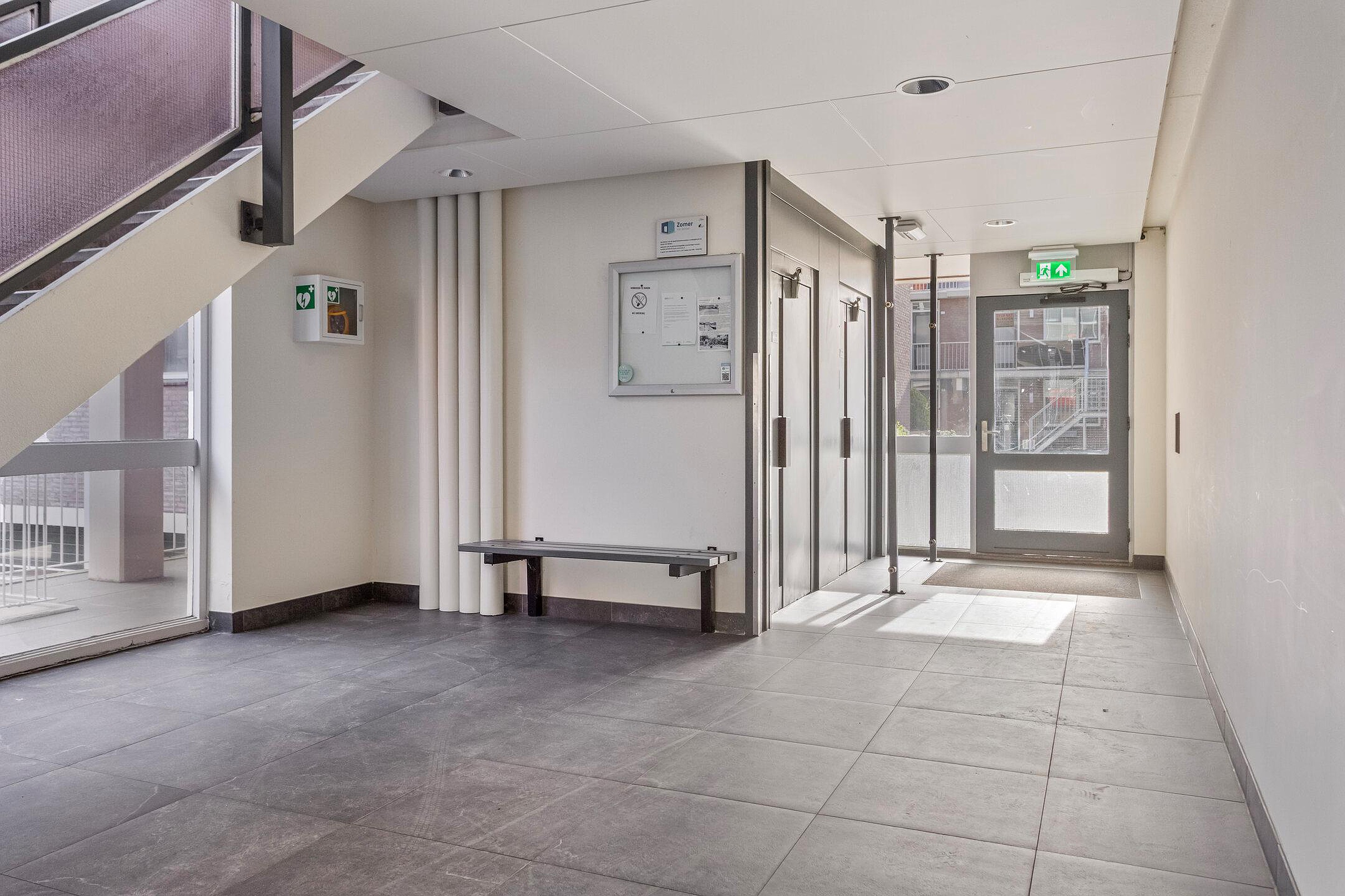 Gezamenlijke, afgesloten entree met bellentableau, brievenbussen, trappenhuis en lift. Vanuit de centrale entree loop je richting de gemeenschappelijke tuin met jachthaven in de Nieuwe Haven, een leuke plek om even van de omgeving te genieten.