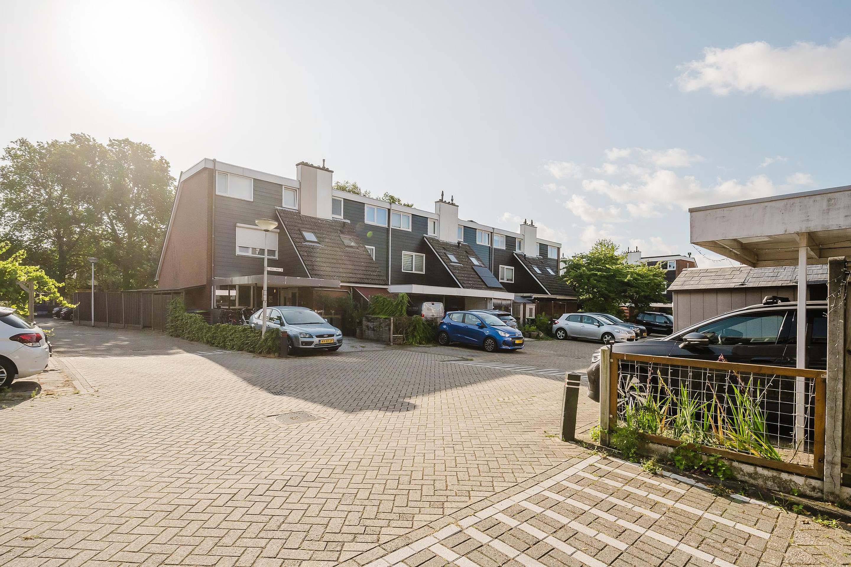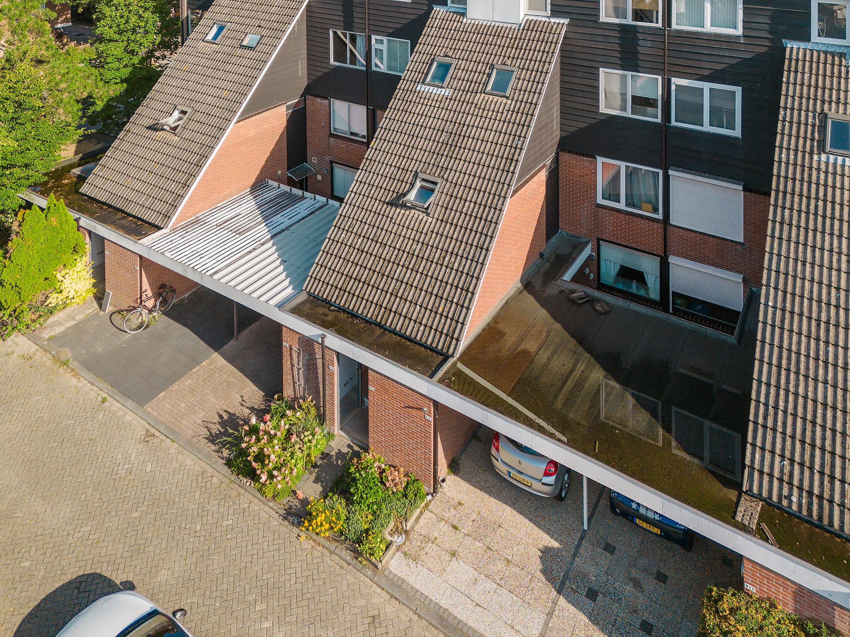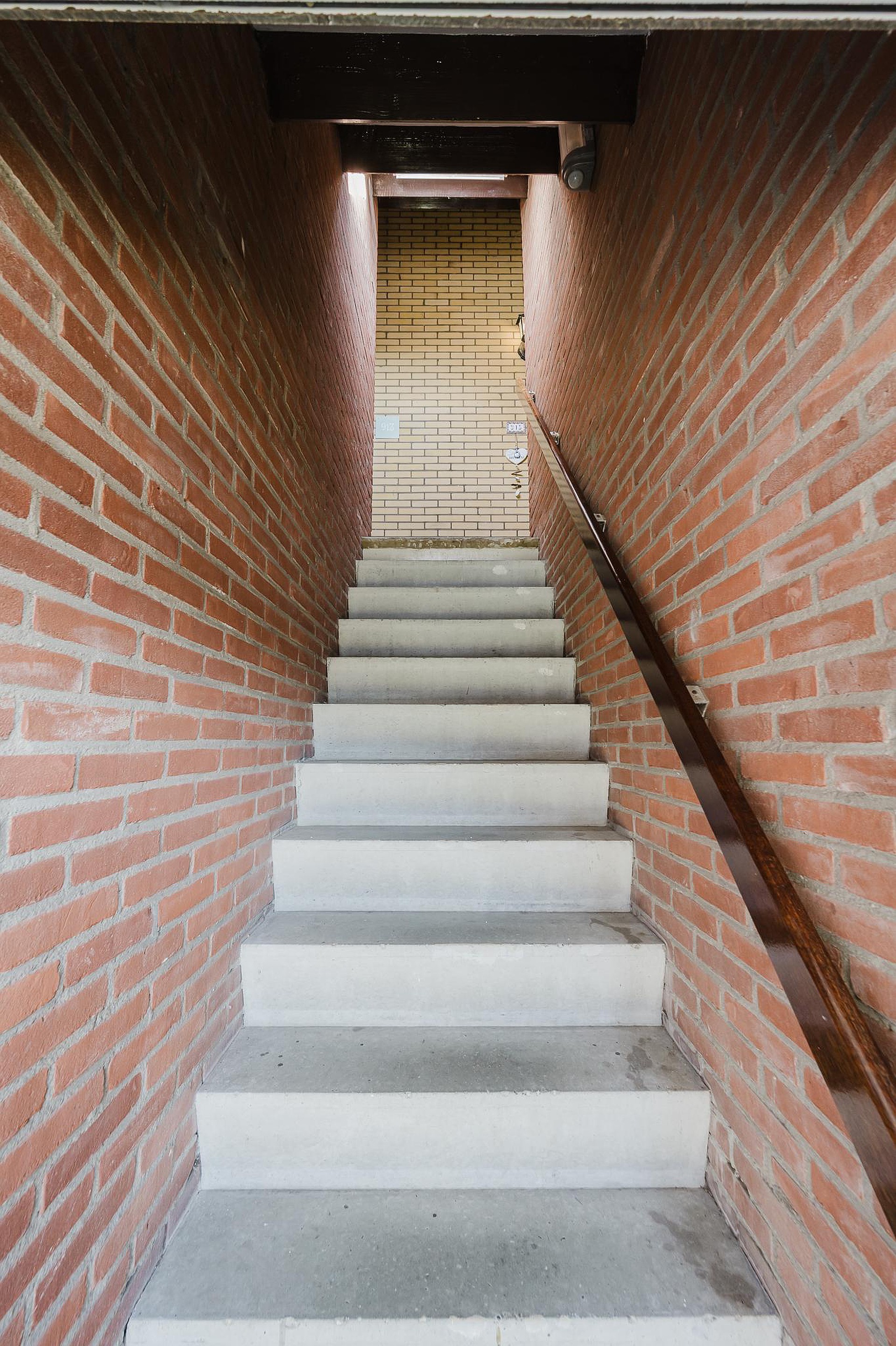 In een doodlopende straat bevindt zich de woningentree van dit appartement.