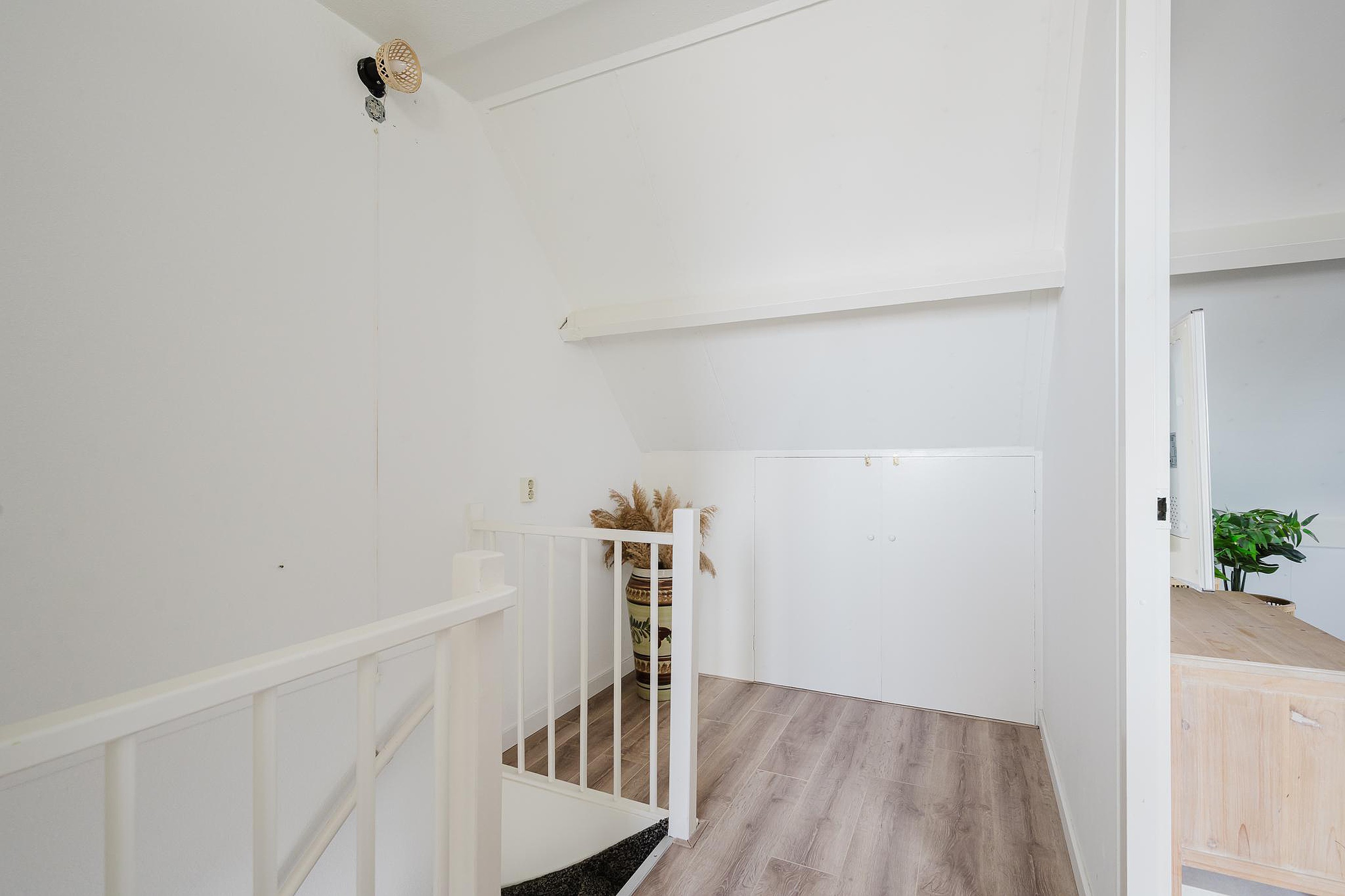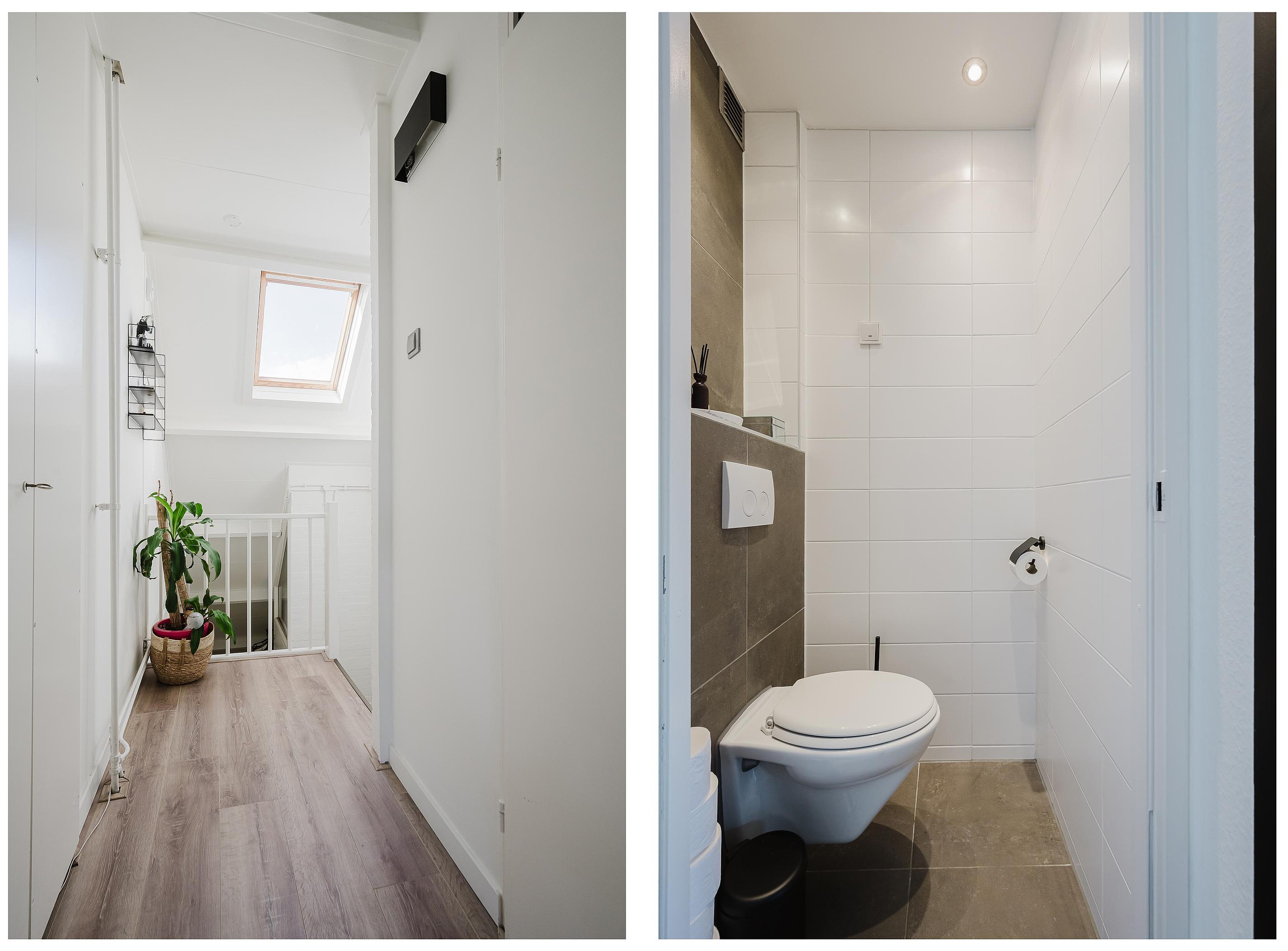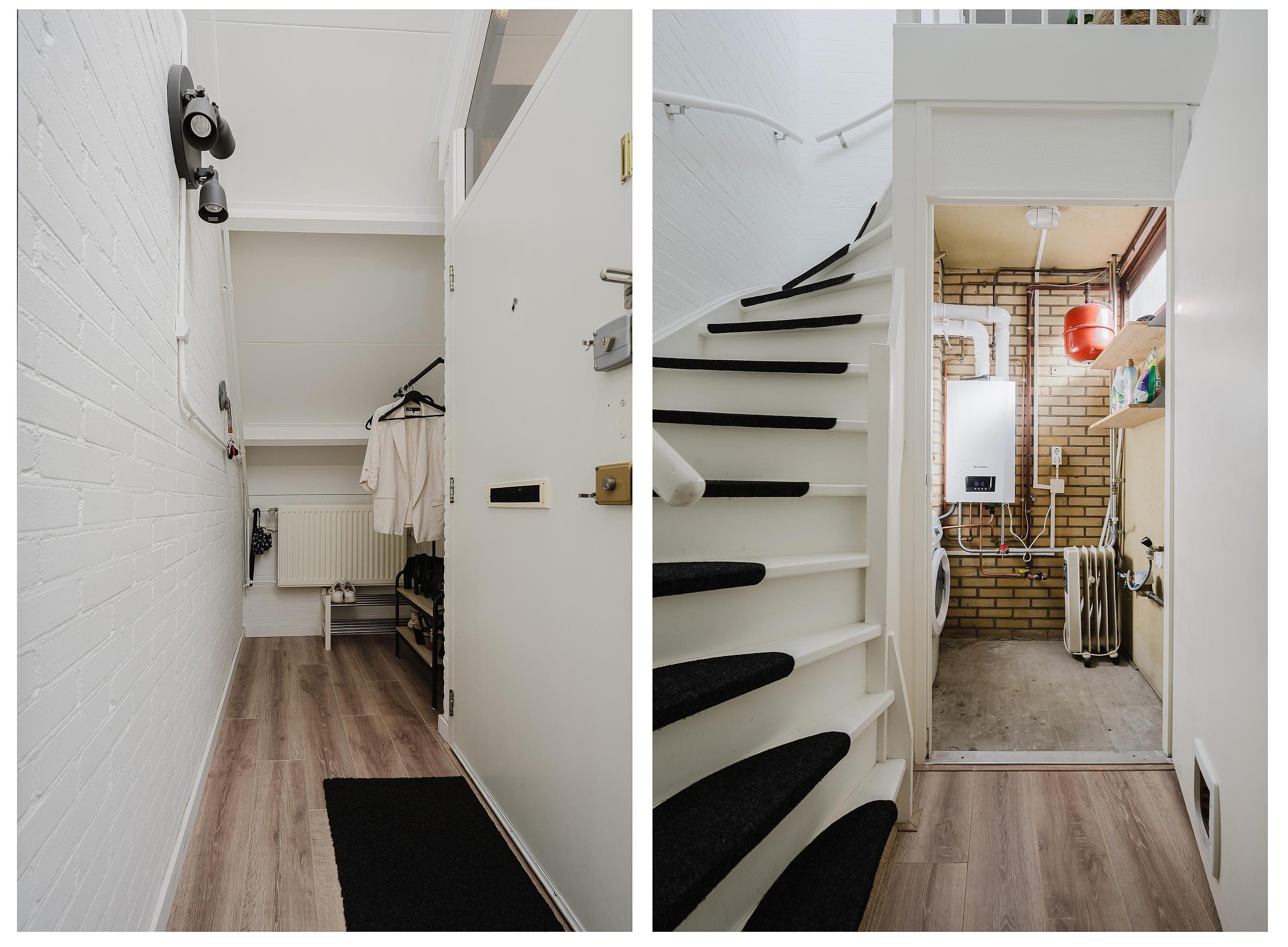 De vaste trap geeft toegang tot de meterkast, de toiletruimte en de woonkamer.