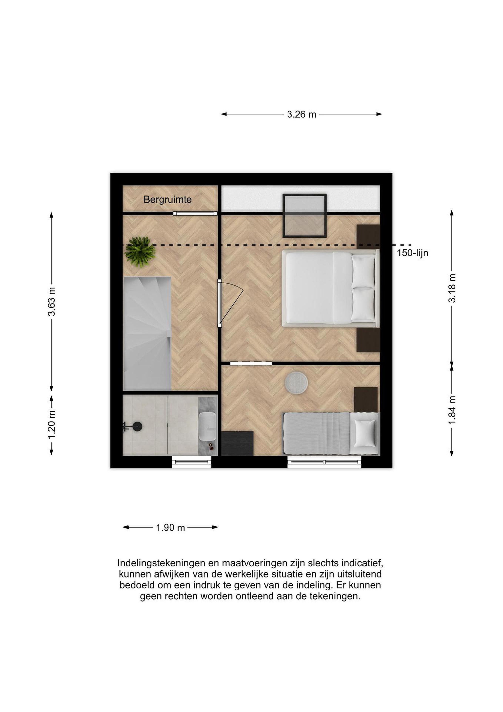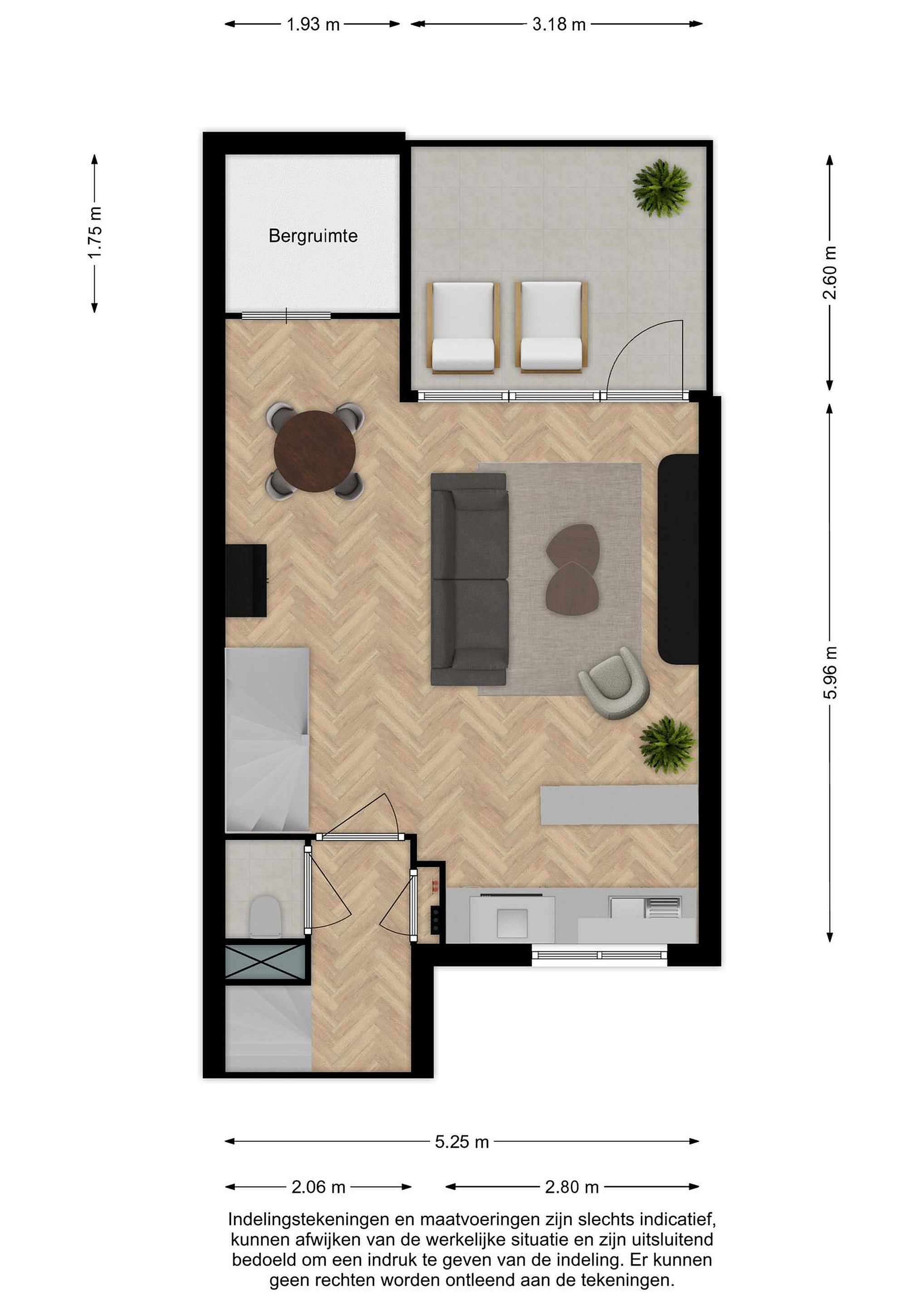 Vanaf de begane grond heb je toegang tot de berging en via de (privé) trapopgang heb je toegang naar de eerste verdieping.