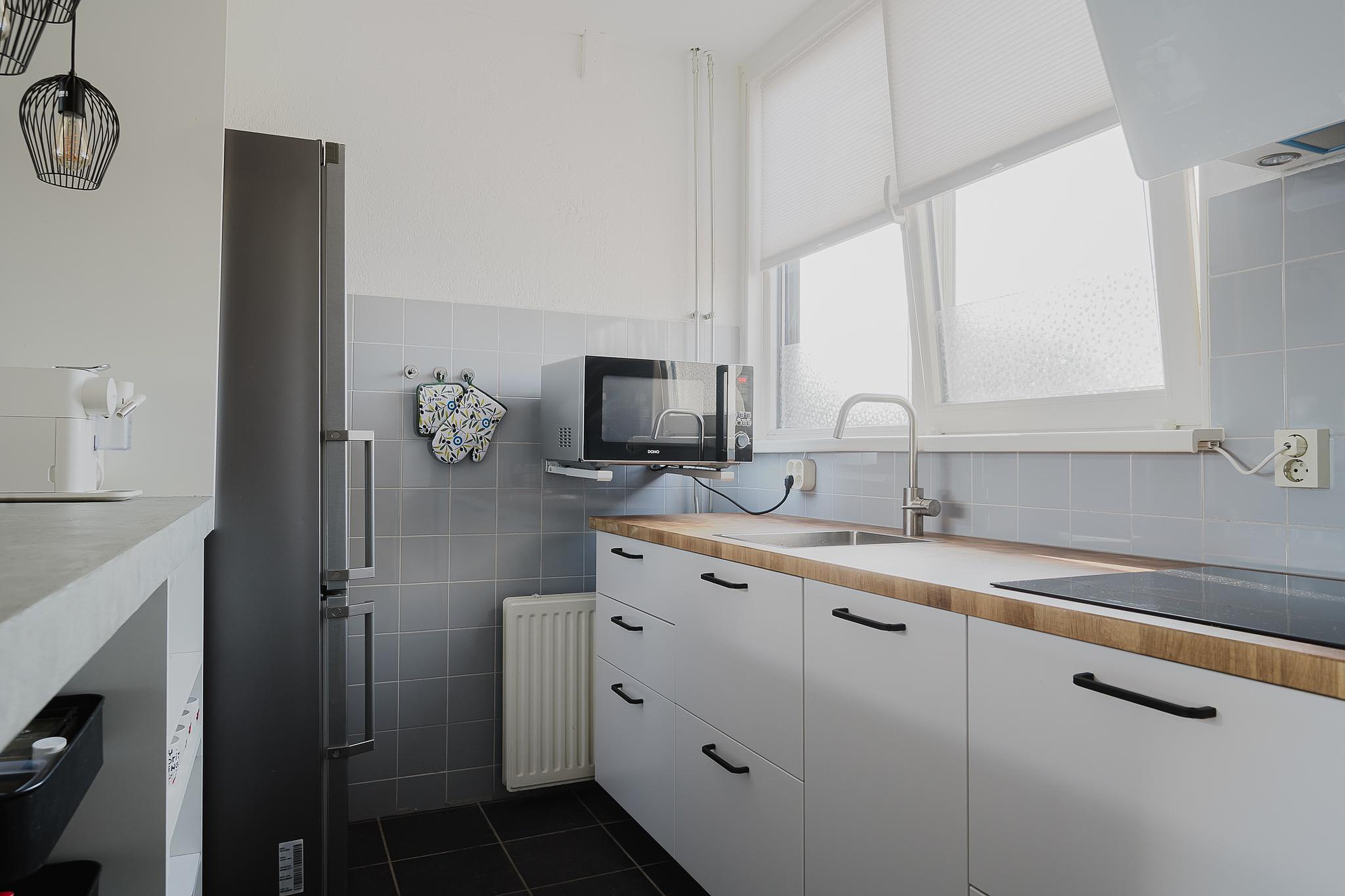 De moderne keuken (2024) is voorzien van een gloednieuwe 4-pits inductie kookplaat, een vaatwasser, een losse combi-oven, en een losse koel/vries-combinatie.