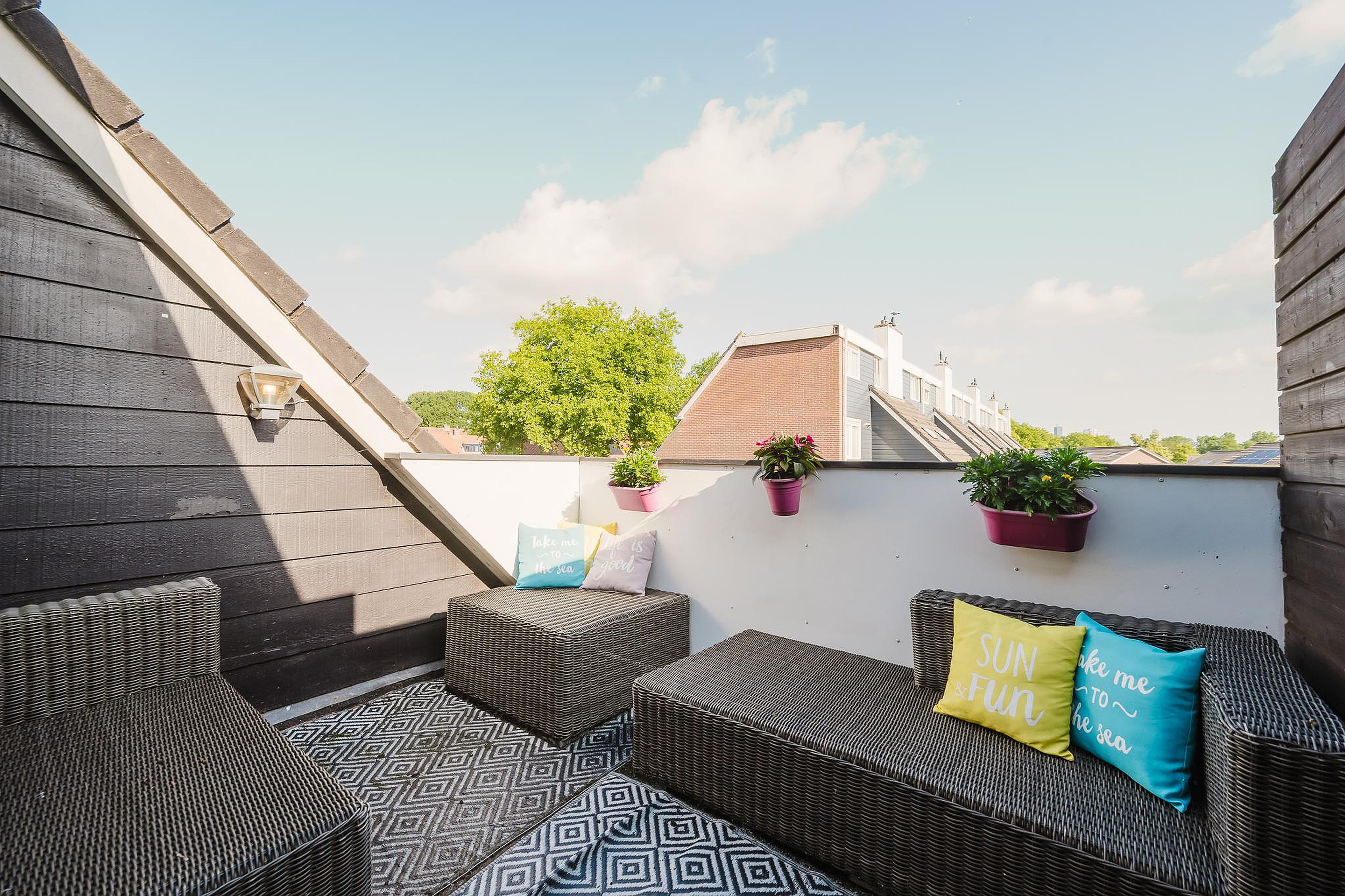 De pui in de woonkamer biedt toegang tot het dakterras dat uitermate geschikt is voor een gezellige zomeravond!