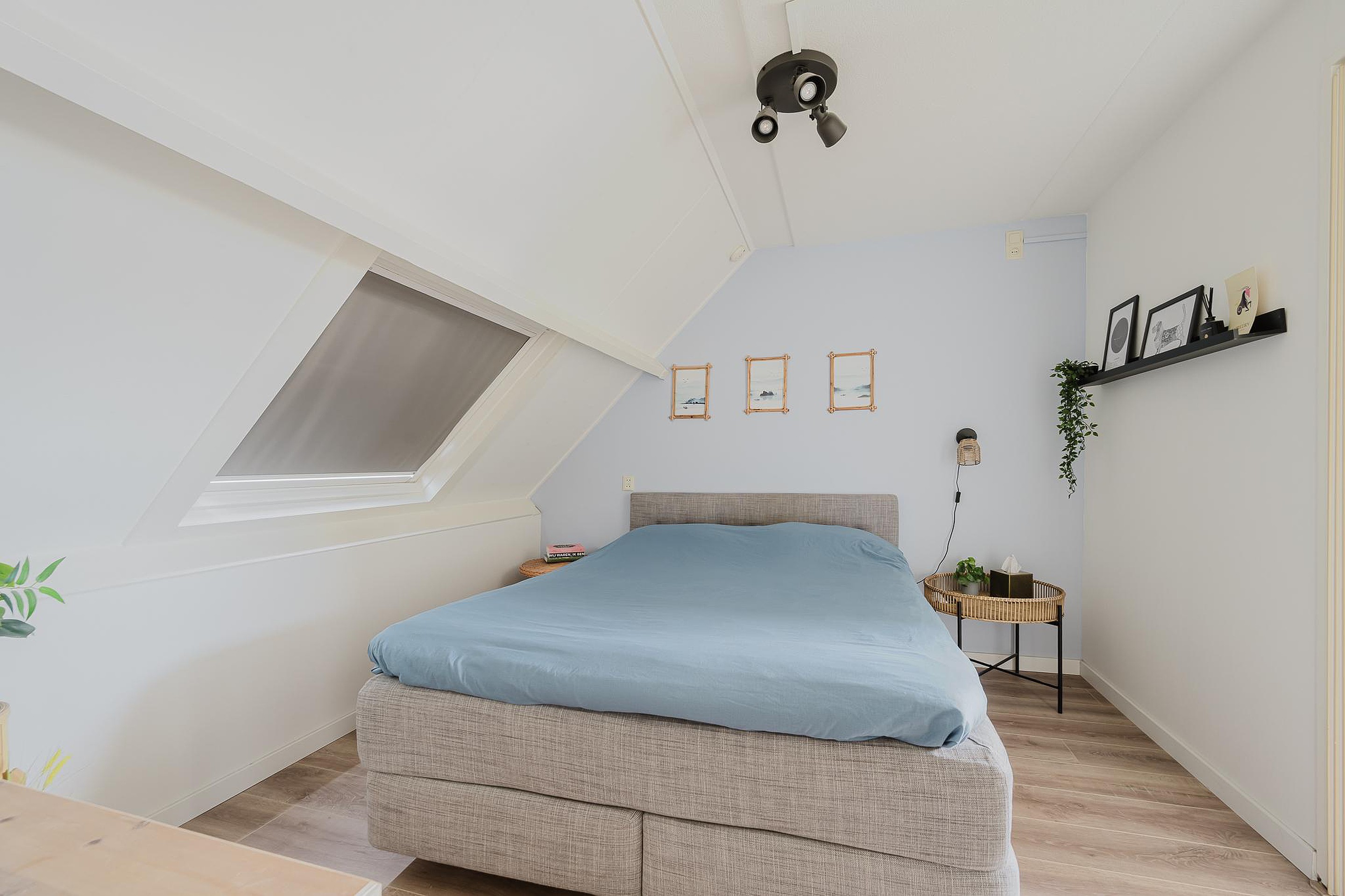 De grote slaapkamer is voorzien van een laminaatvloer en het dakraam zorgt voor een prettige lichtinval.