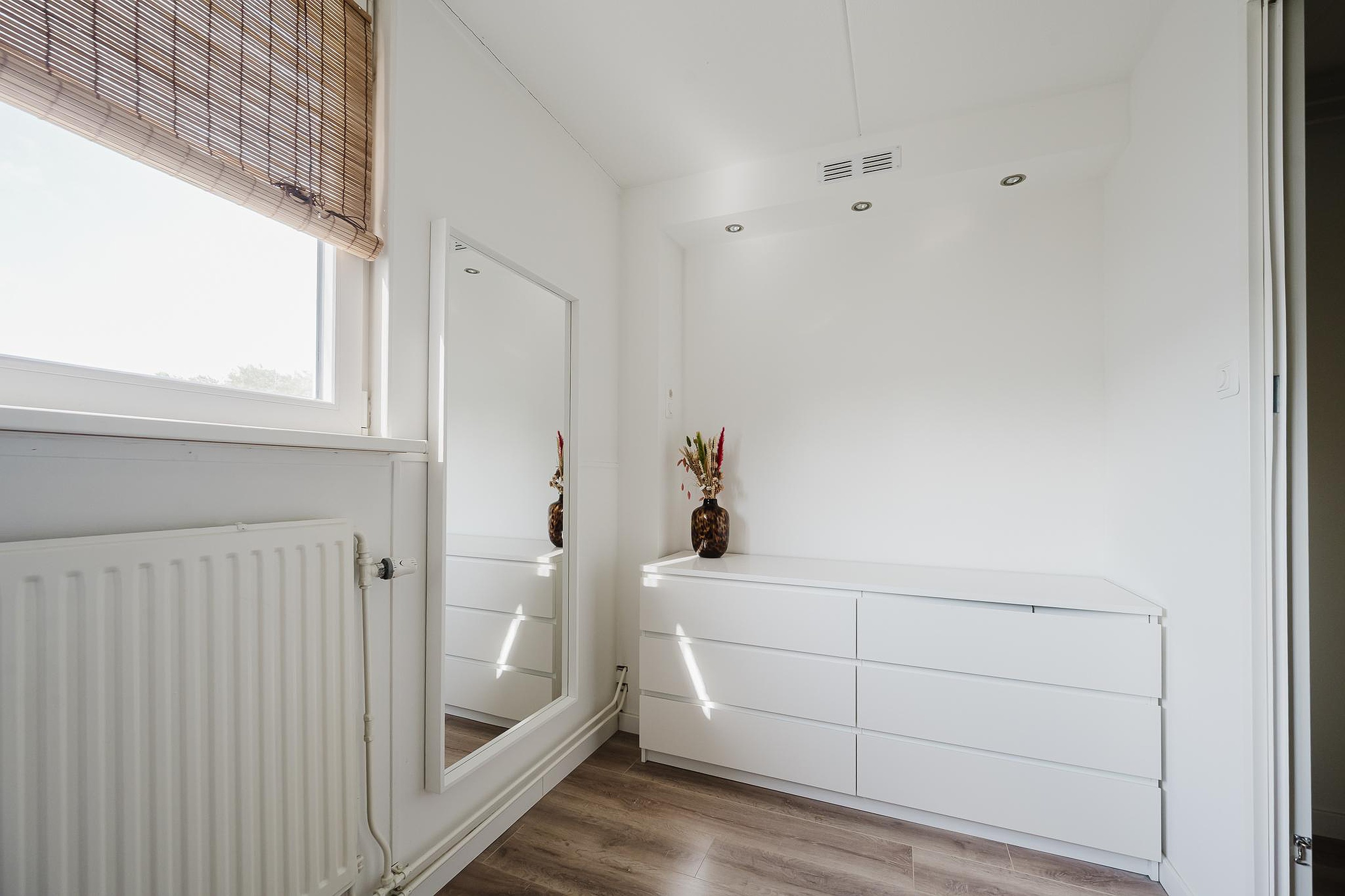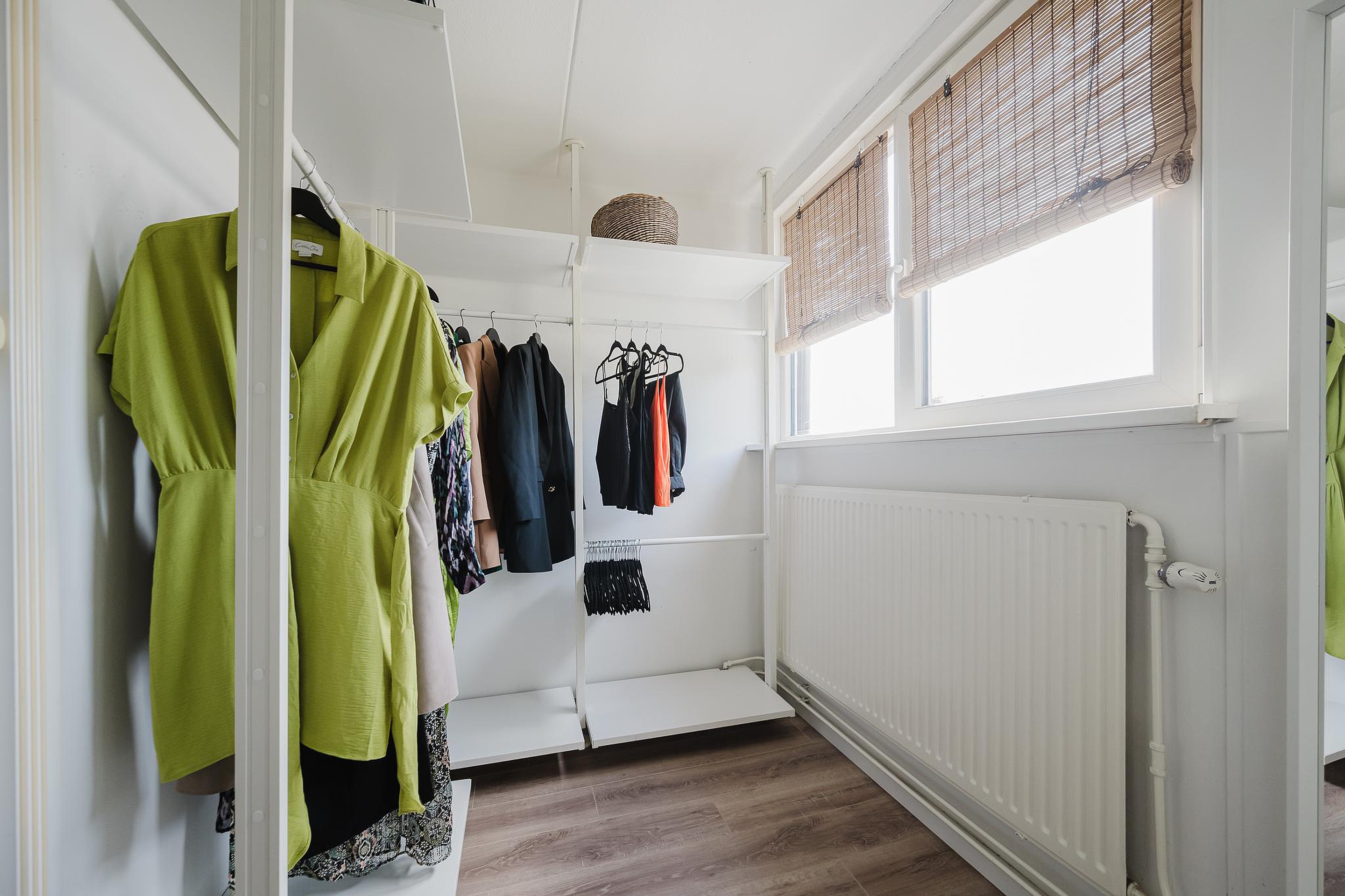 De grote slaapkamer geeft toegang tot een extra slaapkamer welke nu dient als walk-in-closet en is voorzien van een laminaatvloer en kunststof kozijnen.