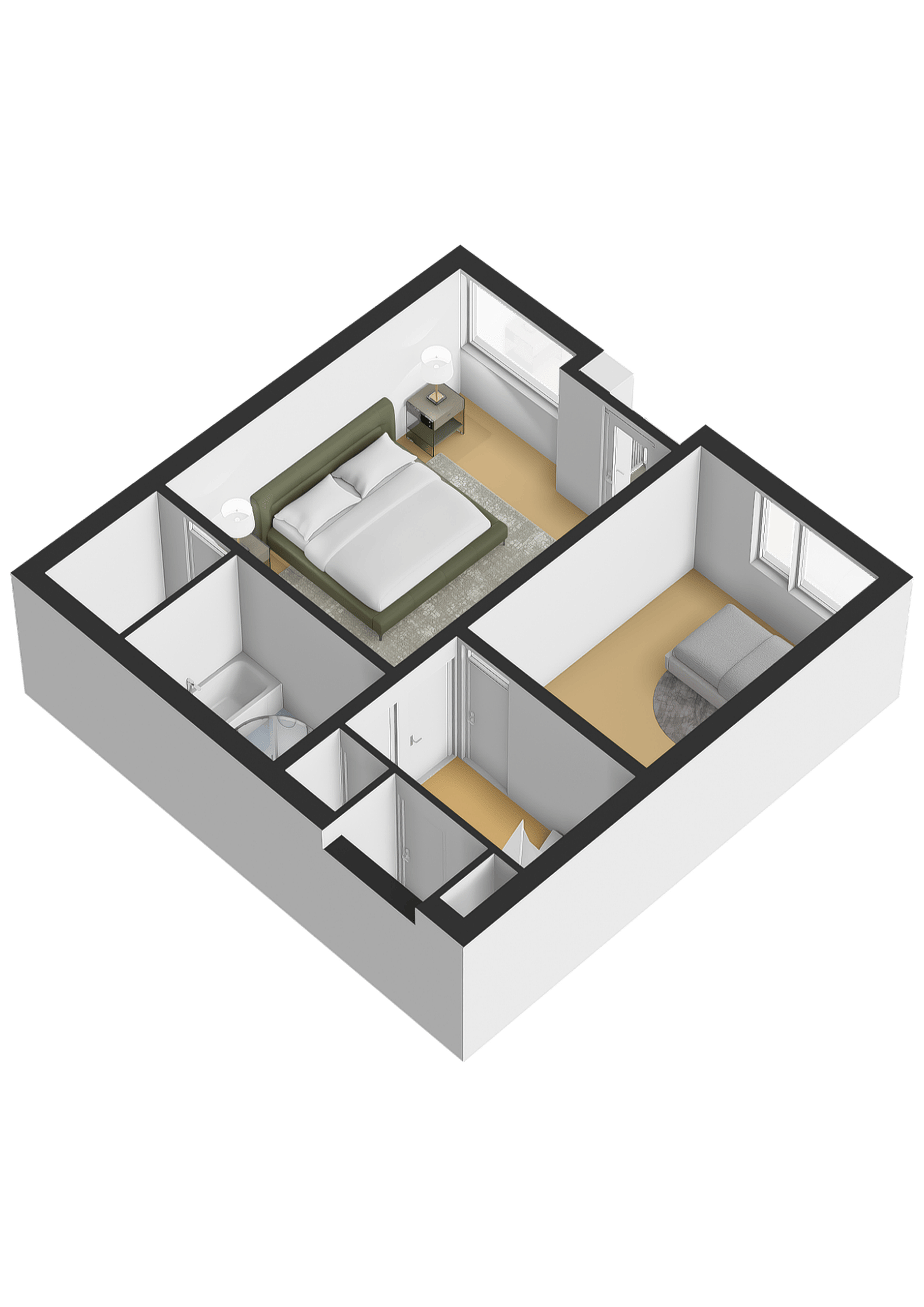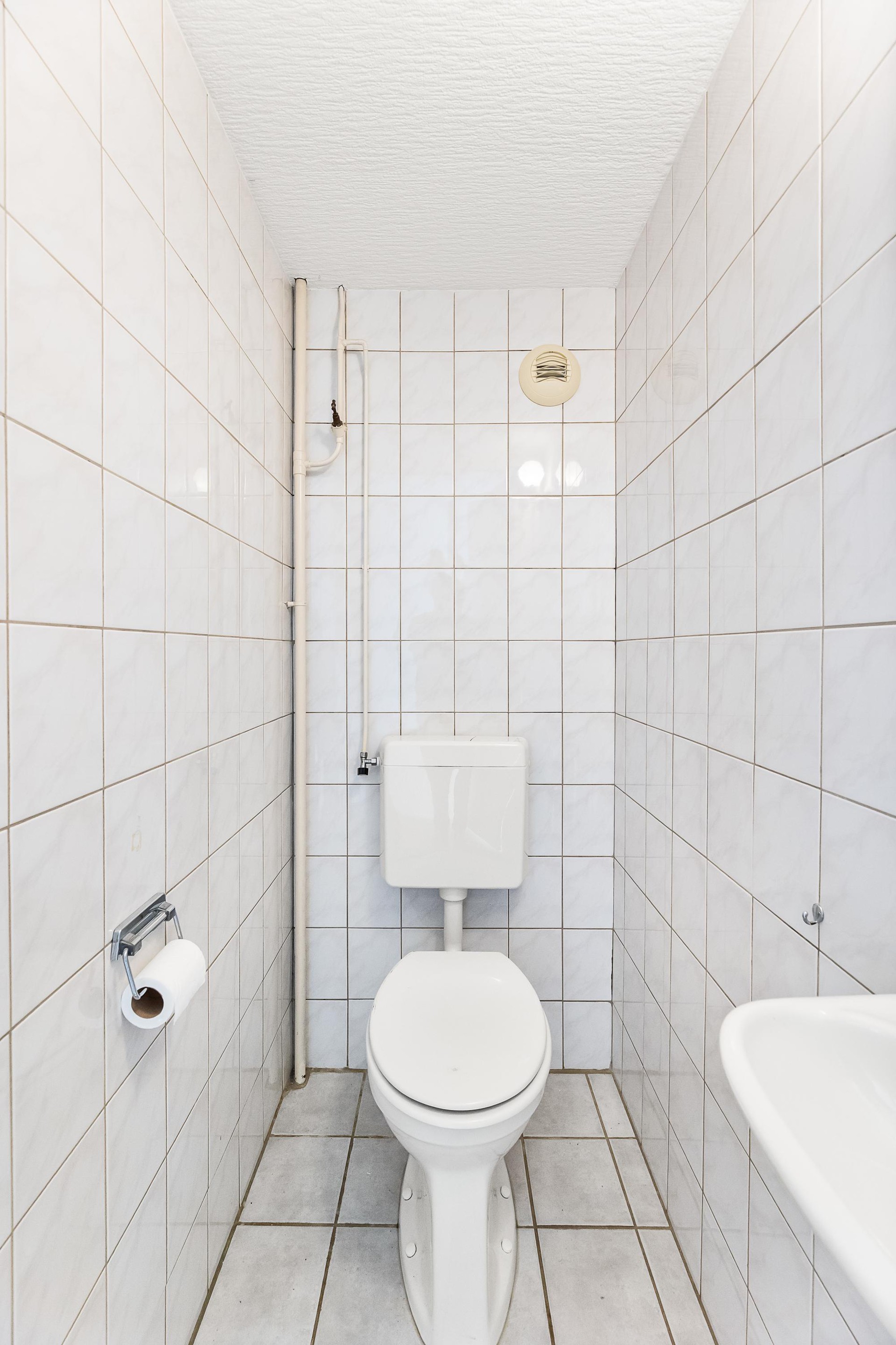 Via de trap bereikt u de onder gelegen slaapverdieping. Er is een zeer royale ouderslaapkamer met een eigen balkonnetje en een praktische inloopkast. Daarnaast nog één extra slaapkamer. De badkamer is gedateerd afgewerkt. Er is een separaat tweede toilet. Verder nog een praktische kast met aansluiting voor het witgoed.