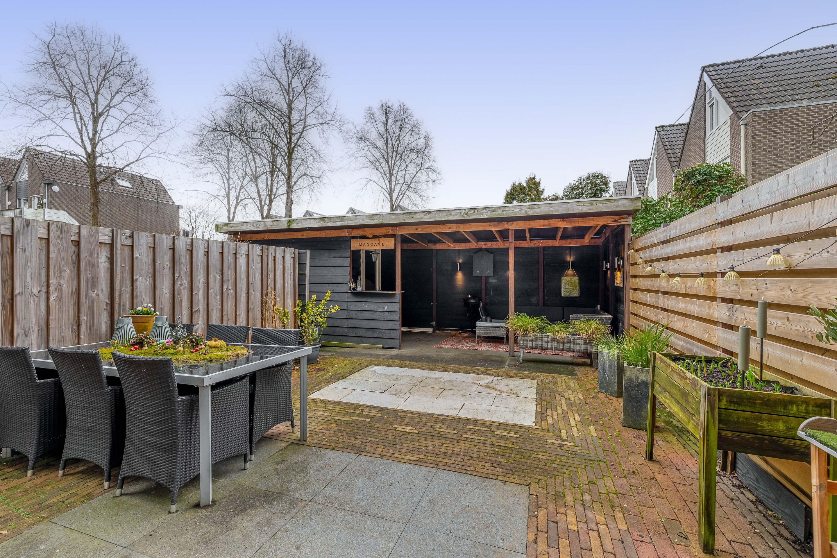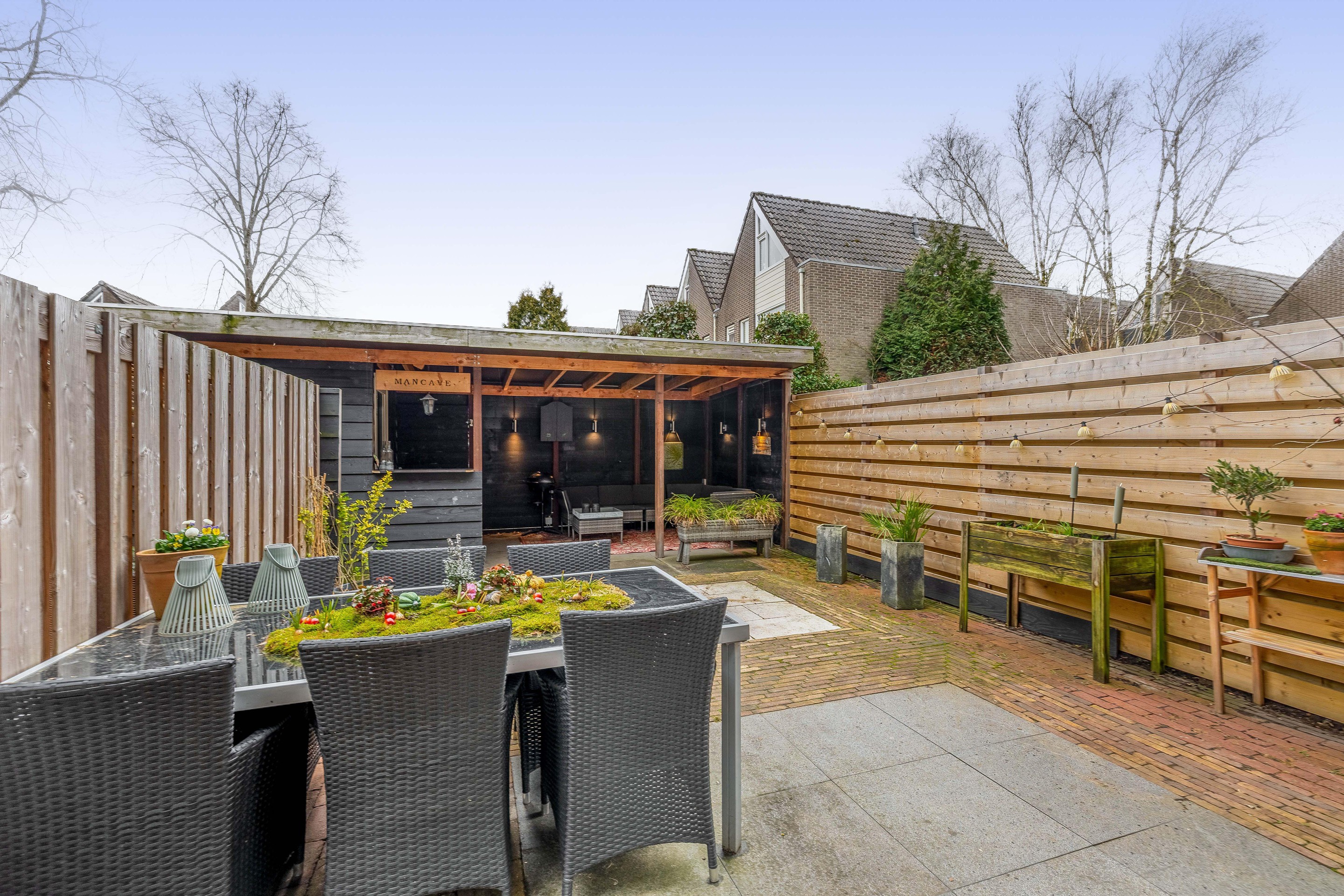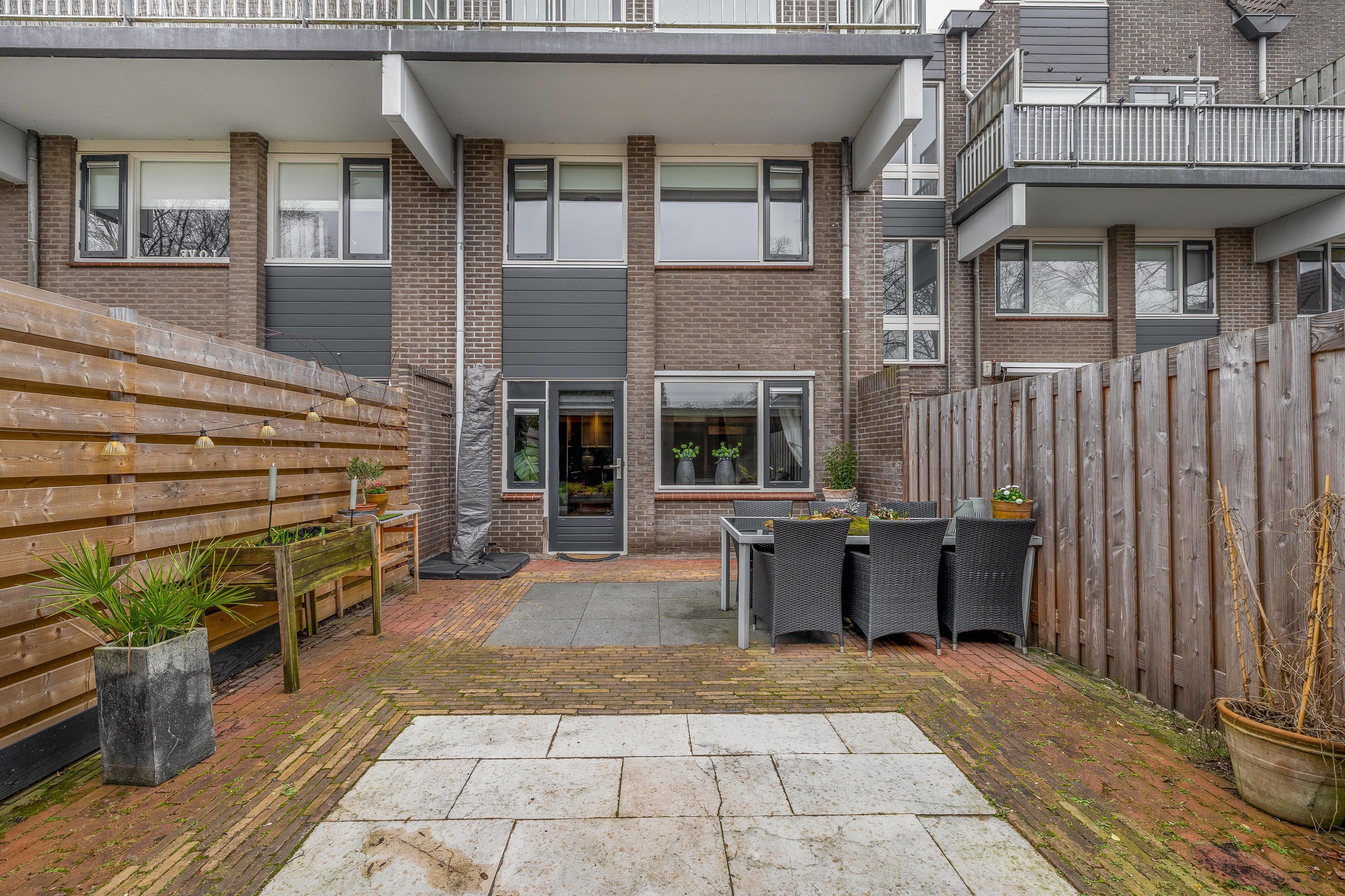 Bijzonderheden: De achtertuin ligt op het zonnige zuiden en is voorzien van klinkers, 60x60-tegels en planten in losse bakken. Achter in de tuin is een grote veranda gebouwd, waar het lang genieten is van de buitenlucht. Tevens is er een houten berging aanwezig. Vanuit de tuin kunt u middels een deur in de veranda ook het openbare gebied bereiken. De woning maakt deel uit van een Vereniging van Eigenaren en de bijdrage is € 249,- per maand. De woning heeft energielabel D.