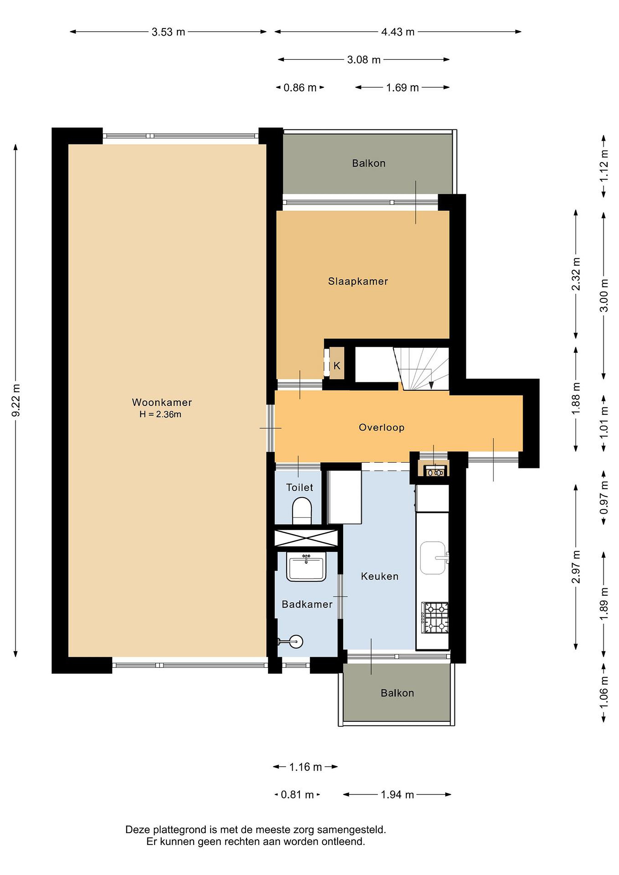 Deze vrijblijvende objectinformatie is met de meeste zorg samengesteld, maar voor de juistheid daarvan kunnen wij geen aansprakelijkheid aanvaarden. Ook kan aan de vermelde gegevens geen enkel recht worden ontleend. Alle informatie is enkel en alleen bedoeld voor de presentatie van het object en niet meer dan een uitnodiging tot het doen van een bod. Eventueel bijgevoegde plattegronden zijn slechts indicatief.