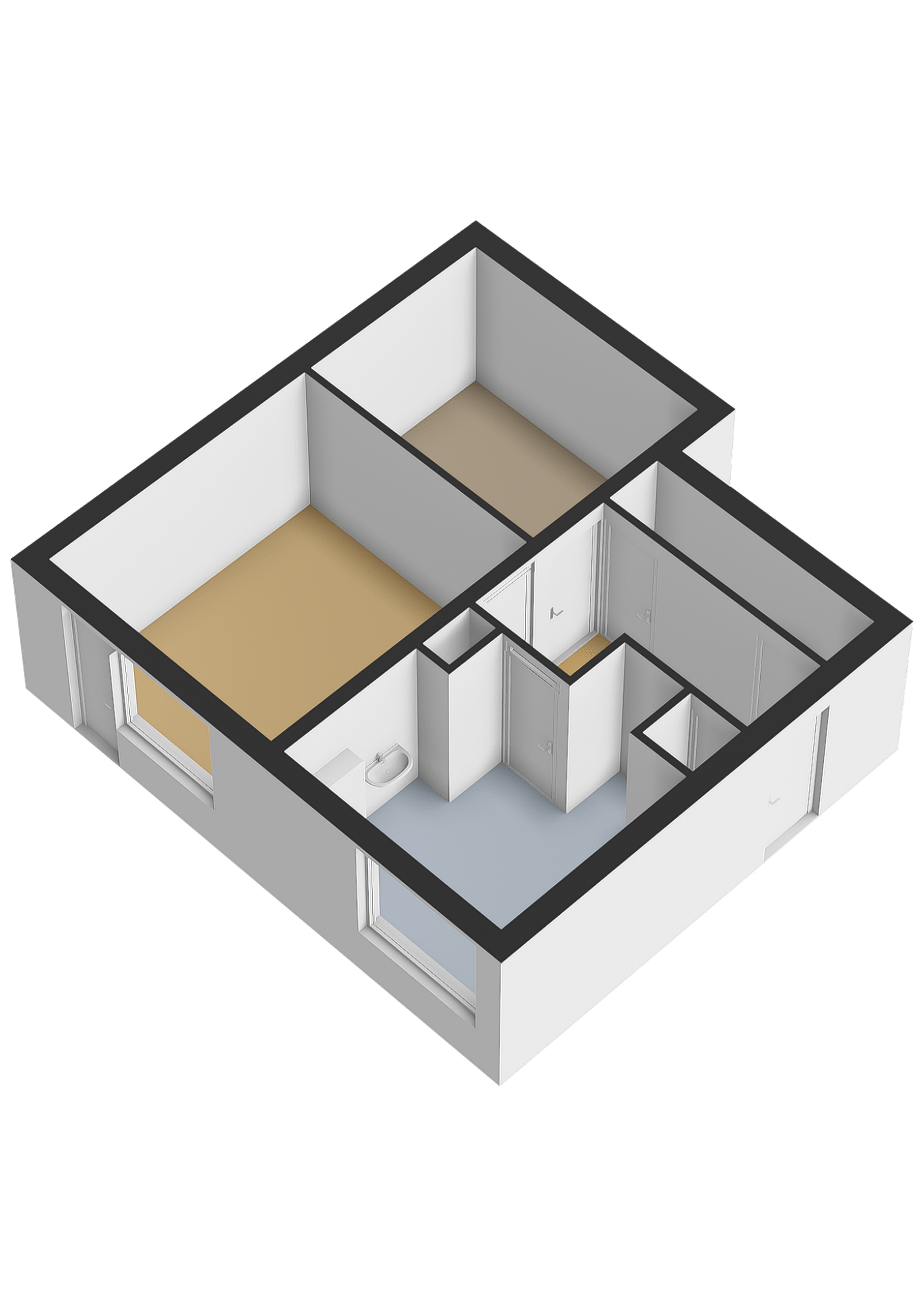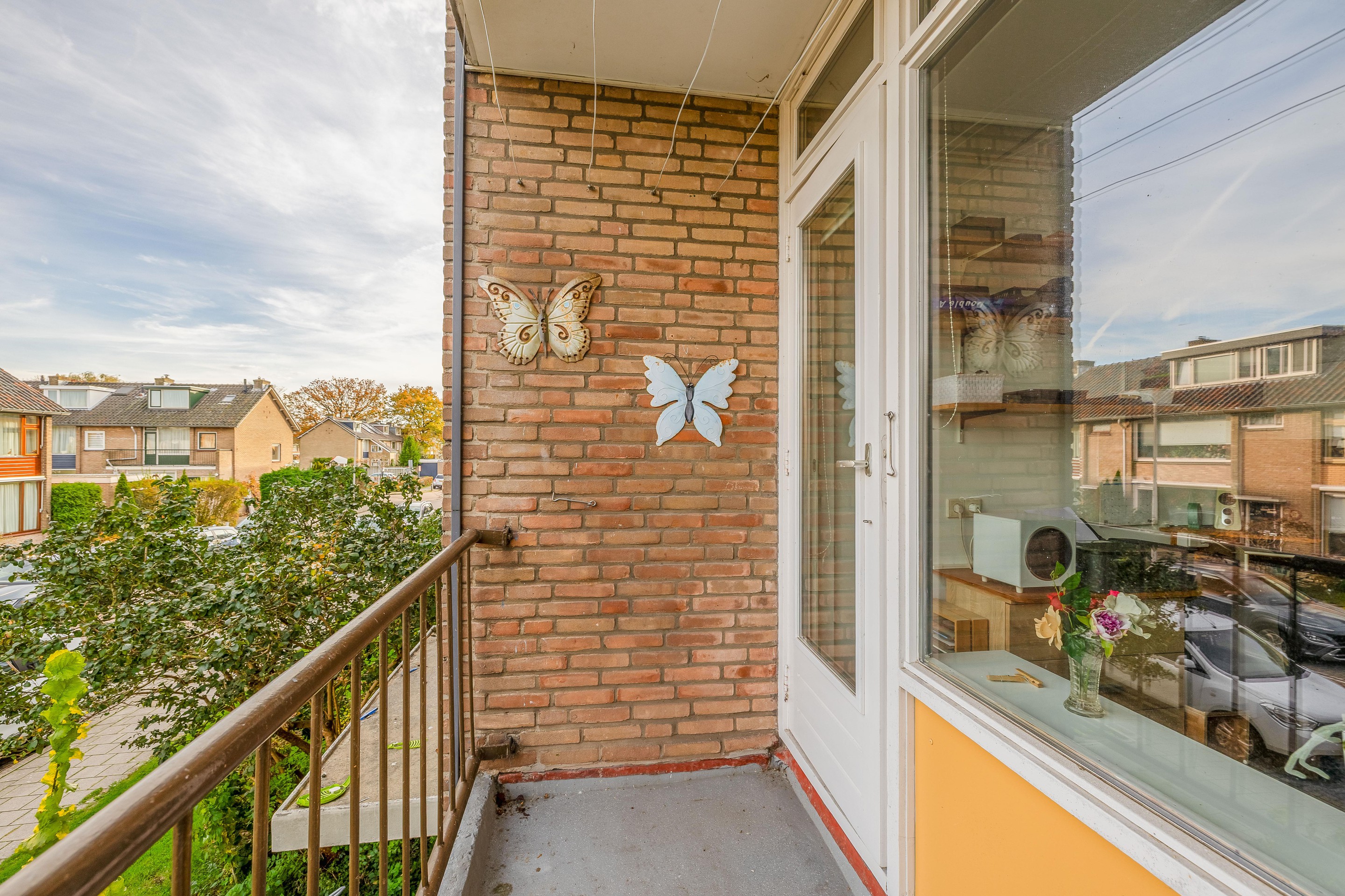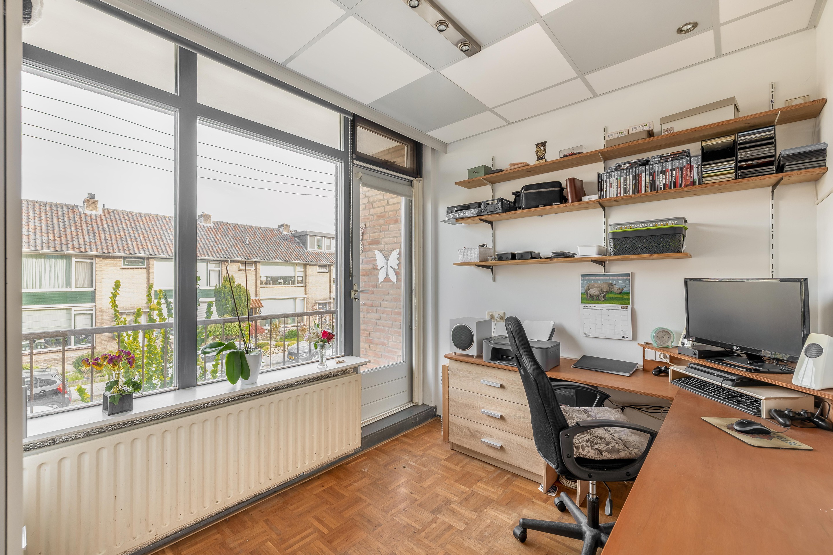 Aan de voorzijde van de woning bevindt zich een slaapkamer die beschikt over een praktische inbouwkast. Vanuit deze kamer stapt u zo het balkon op, dat op het oosten is gelegen; een heerlijke plek om van de eerste ochtendzon te genieten.