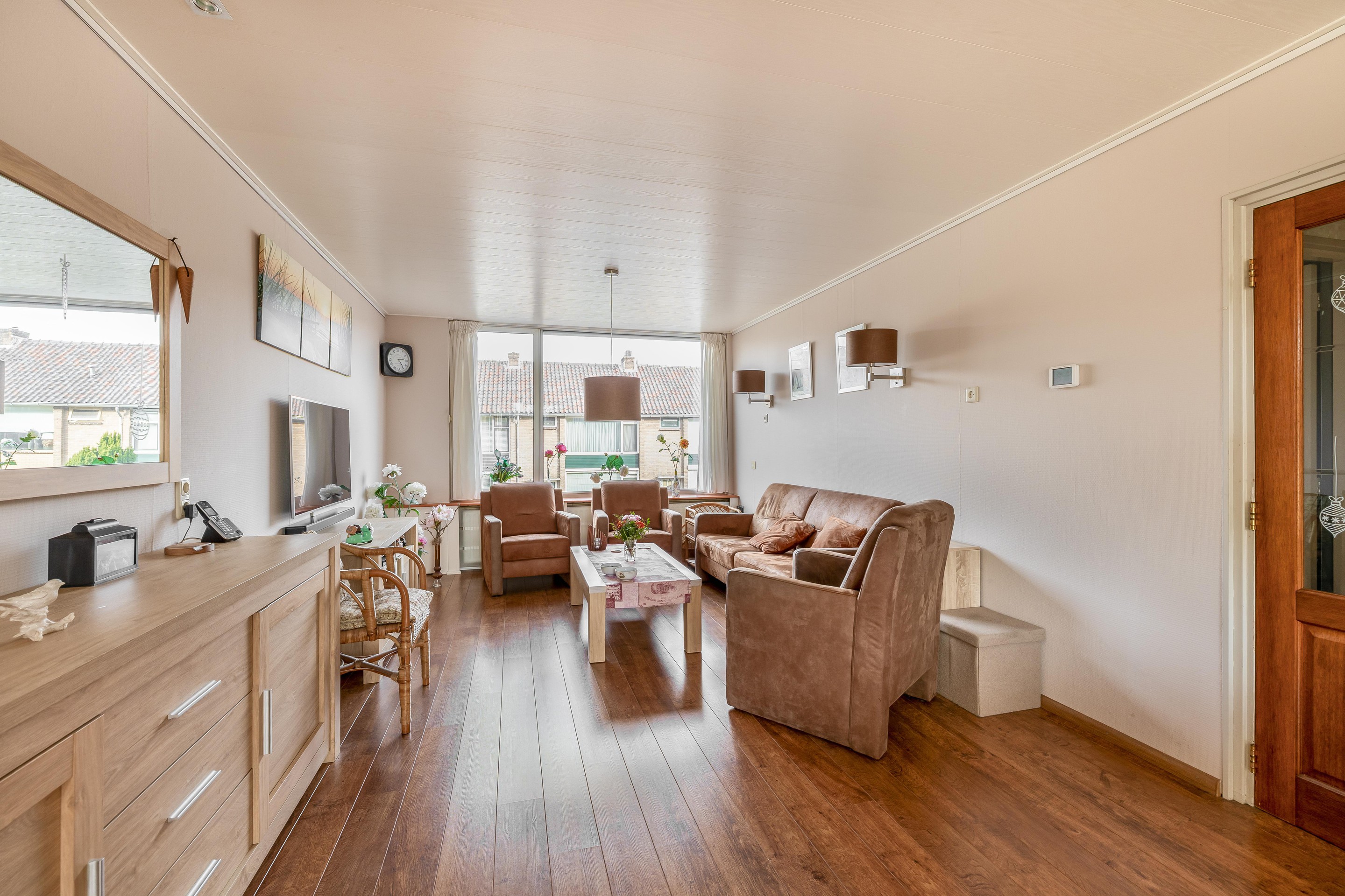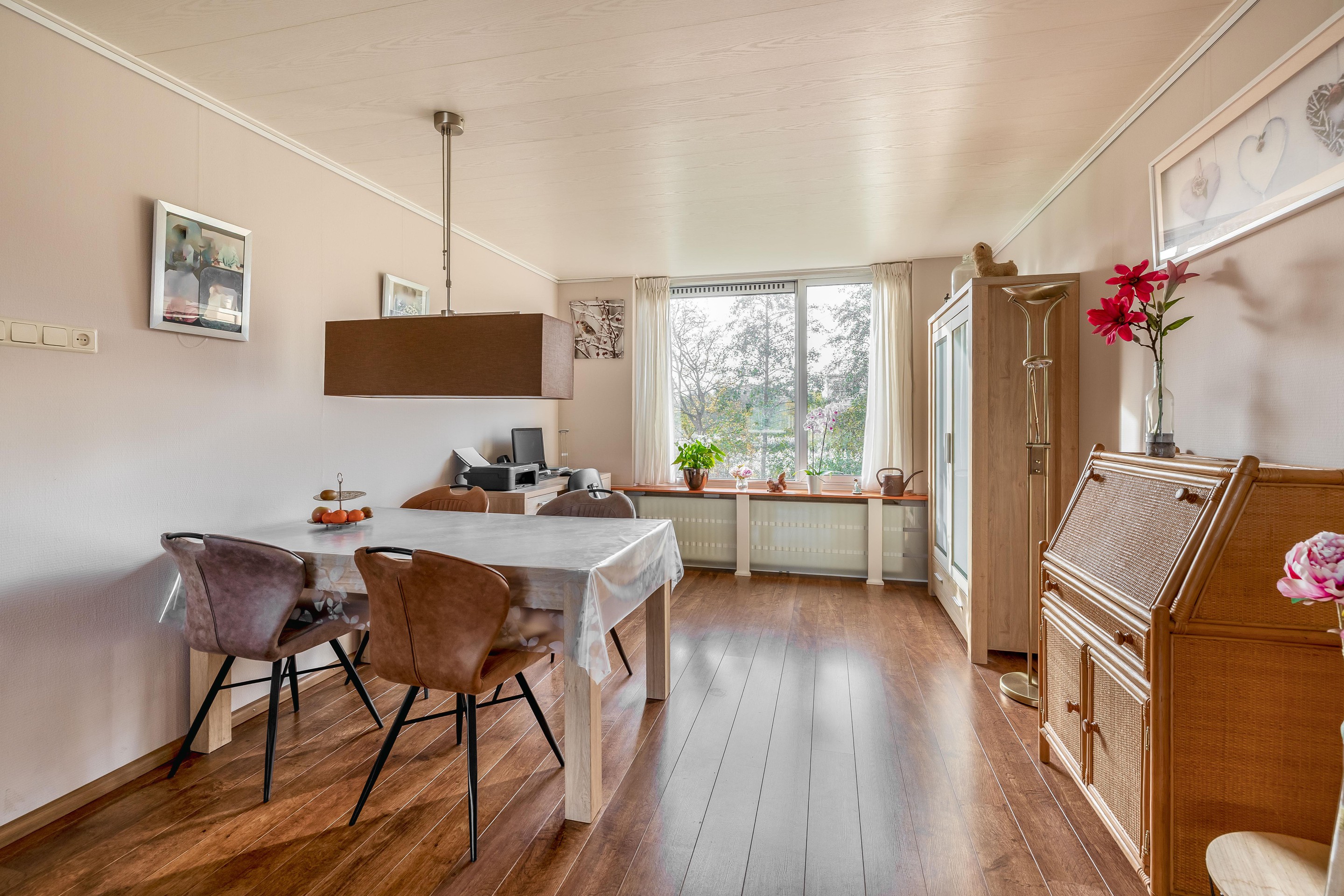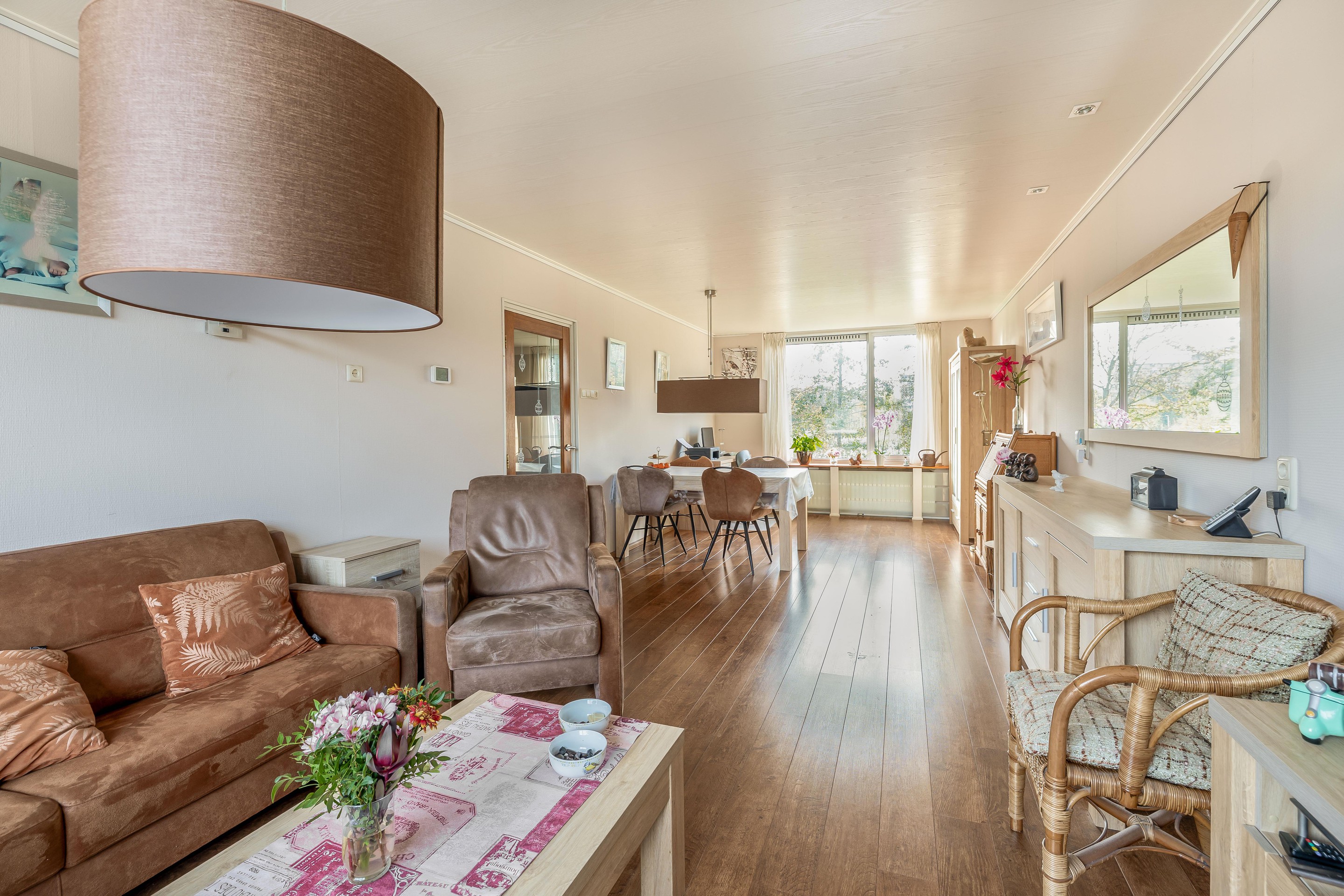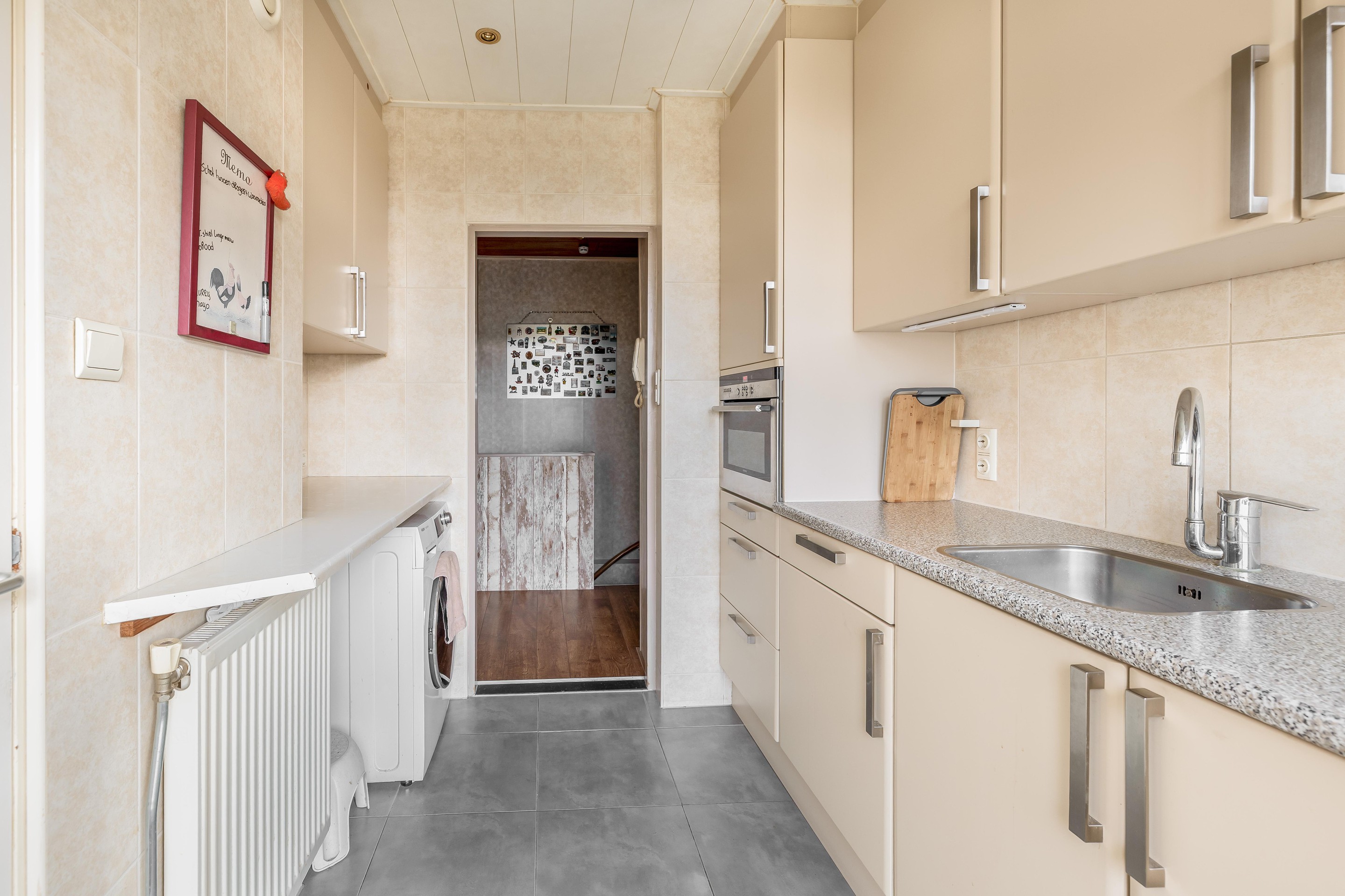 U komt binnen in de hal, waar zich de meterkast (voorzien van 6 groepen en 2 aardlekschakelaars) en de toiletruimte met een modern vrijhangend toilet bevinden. Vanuit deze centrale hal heeft u toegang tot alle vertrekken op deze woonlaag: de woonkamer, de dichte keuken, de badkamer en een slaapkamer. De lichte doorzonwoonkamer biedt voldoende ruimte voor zowel een gezellige zithoek als een eethoek. Dankzij de grote raampartijen aan weerszijden geniet u hier van een prettige lichtinval en een vrij uitzicht op het omliggende groen. Het plafond is strak afgewerkt, verlaagd en voorzien van inbouwspots.