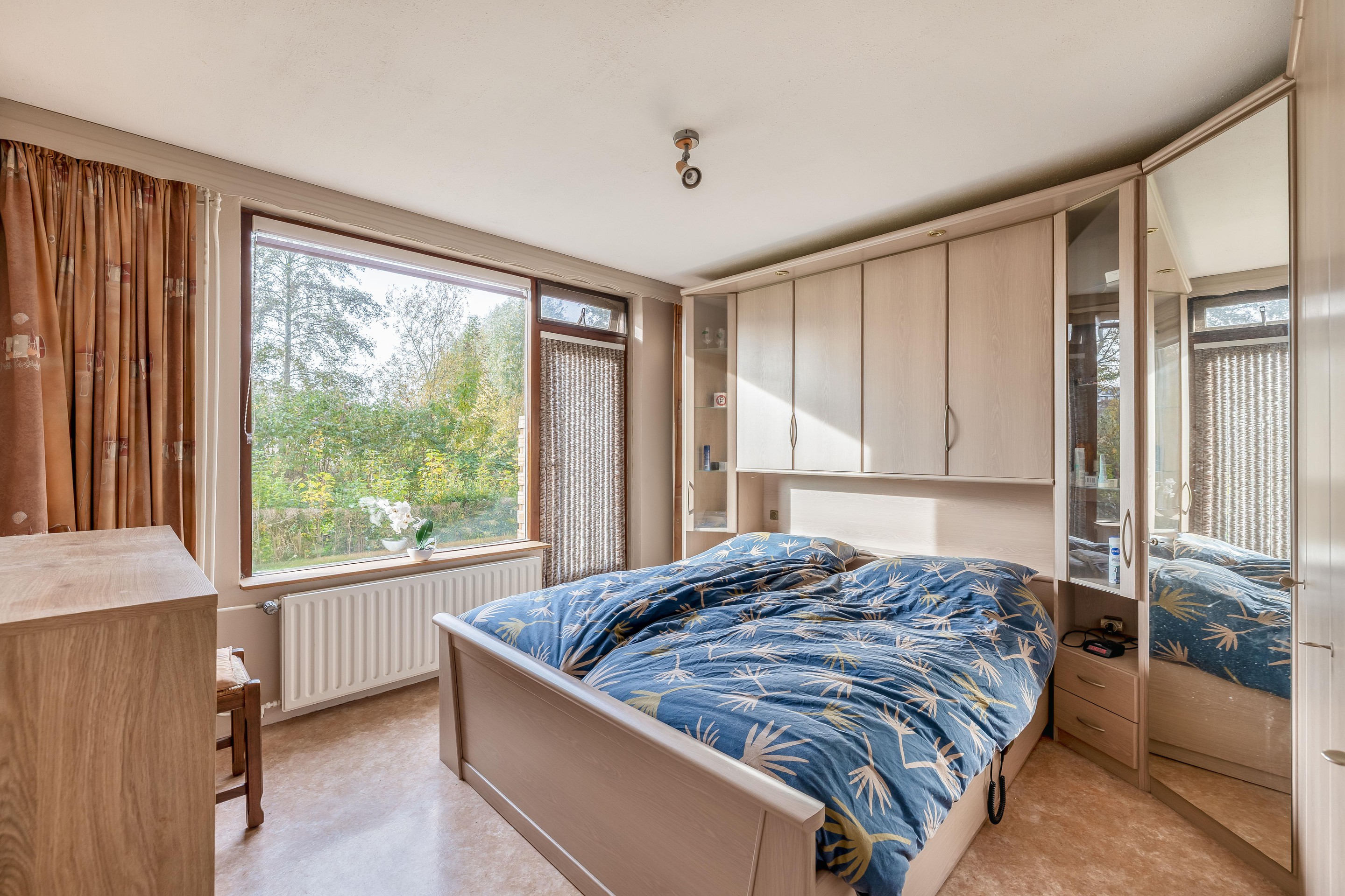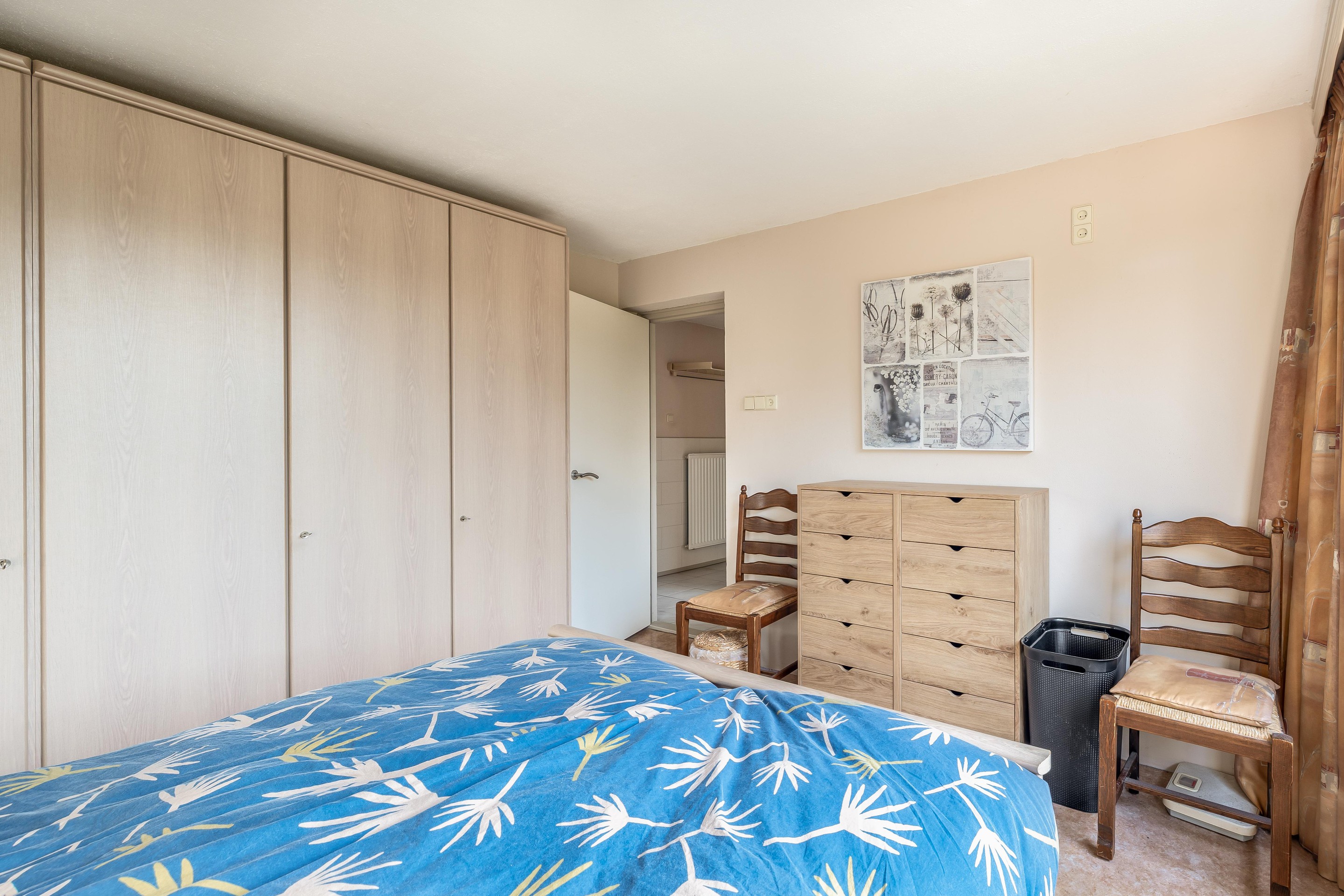 Op de begane grond bevinden zich tevens twee slaapkamers. De ruimste kamer biedt direct toegang tot de gemeenschappelijke tuin, waardoor u zo naar buiten stapt. De tweede, compactere kamer is multifunctioneel ingericht. Naast een praktische bergkast vindt u hier de opstelling van de cv-installatie (Intergas HR, 2014), alsmede een toilet en een wastafelmeubel.