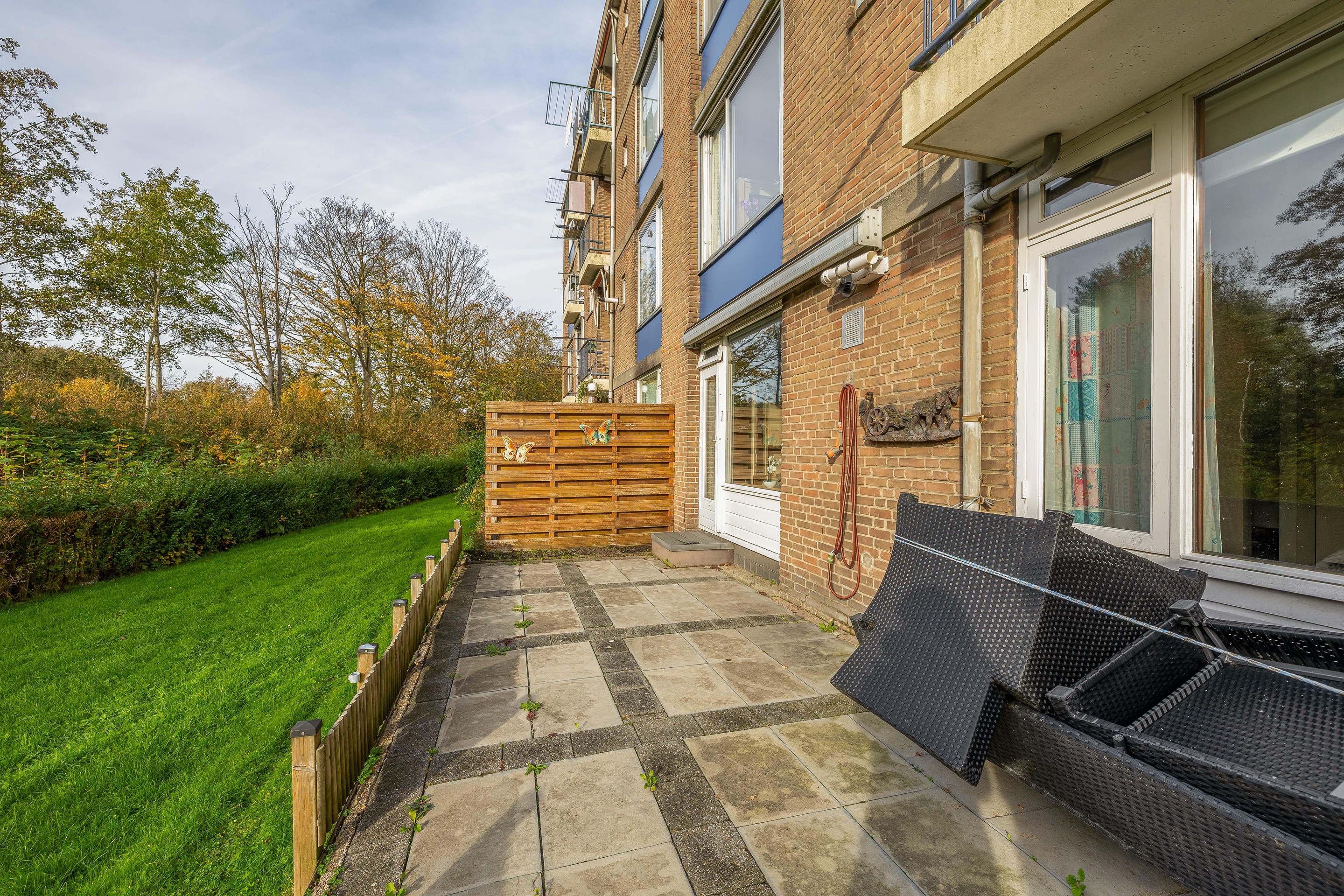 De indeling is speels en praktisch opgezet. Op de begane grond bevinden zich twee fijne slaapkamers, een inpandige berging en de toegang tot het buitenleven. De zonnige achtertuin is gelegen op het westen en grenst direct aan het gemeenschappelijke groen van de VvE, waardoor je een heerlijk vrij gevoel ervaart. Op het terras kun je tijdens zomerse dagen tot laat in de avond van de zon genieten.