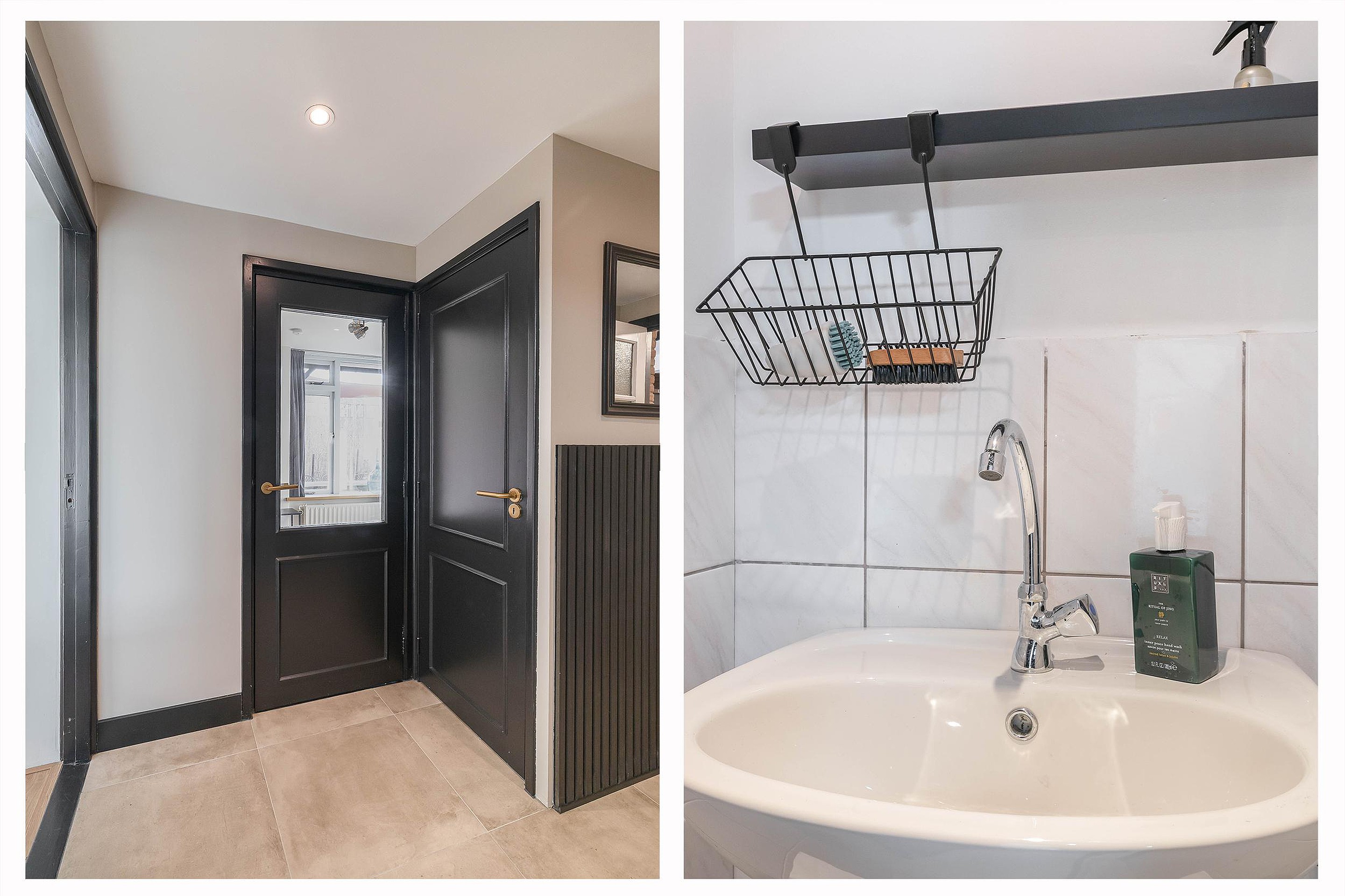 De hal geeft toegang tot het vernieuwde toilet modern, stijlvol en helemaal van nu.