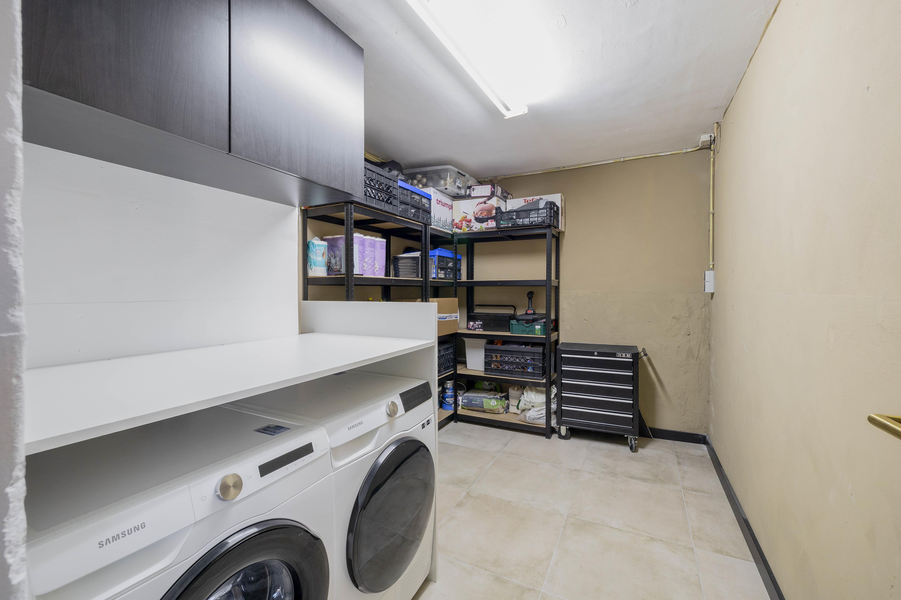 De entree op de begane grond geeft toegang tot een bergkast, de nieuwe garderobekast, een praktische wasruimte en de grote berging met aansluitingen voor wasmachine en droger. Ook bevinden zich hier beide slaapkamers.