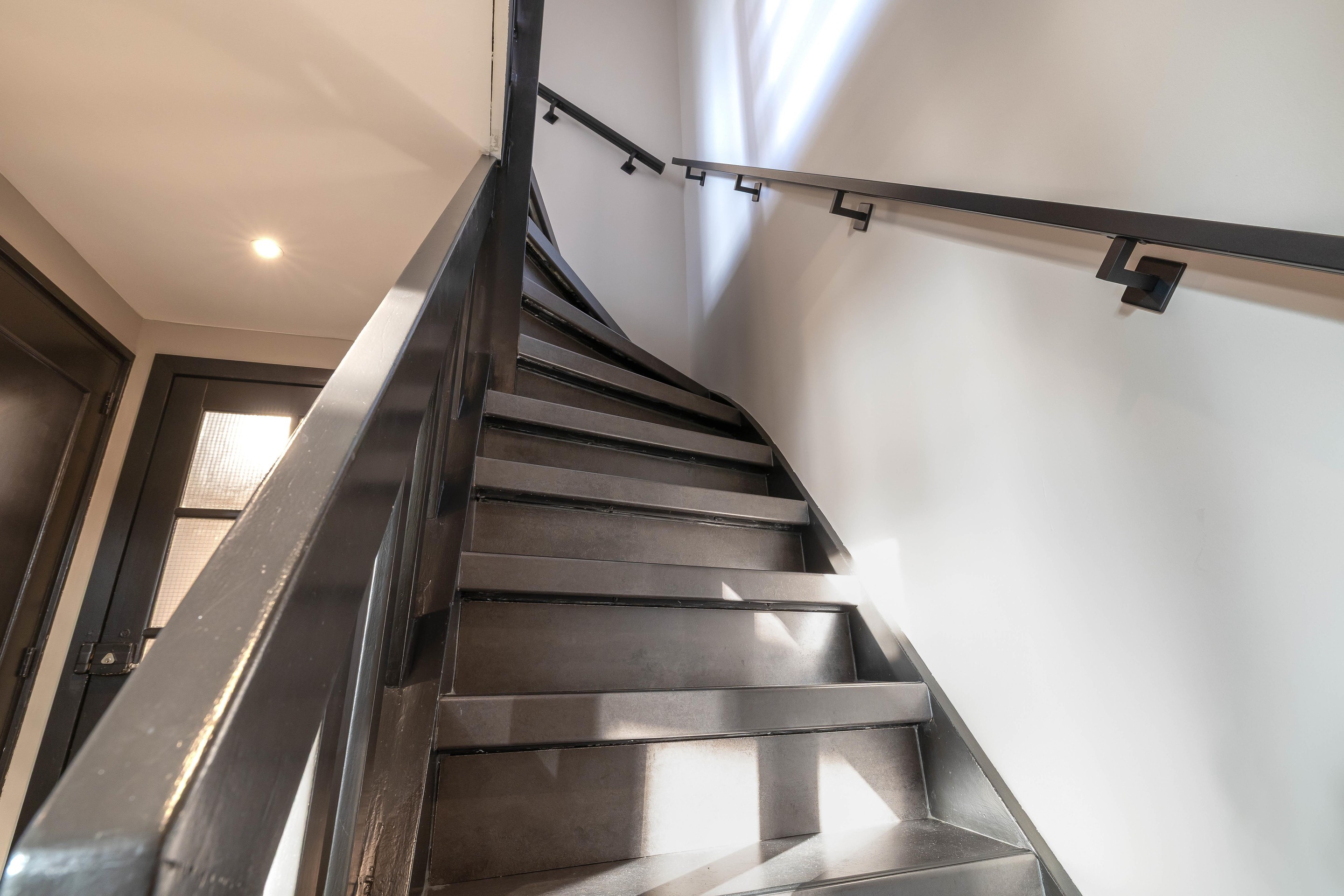 Via de vernieuwde trap bereik je de tweede woonlaag.