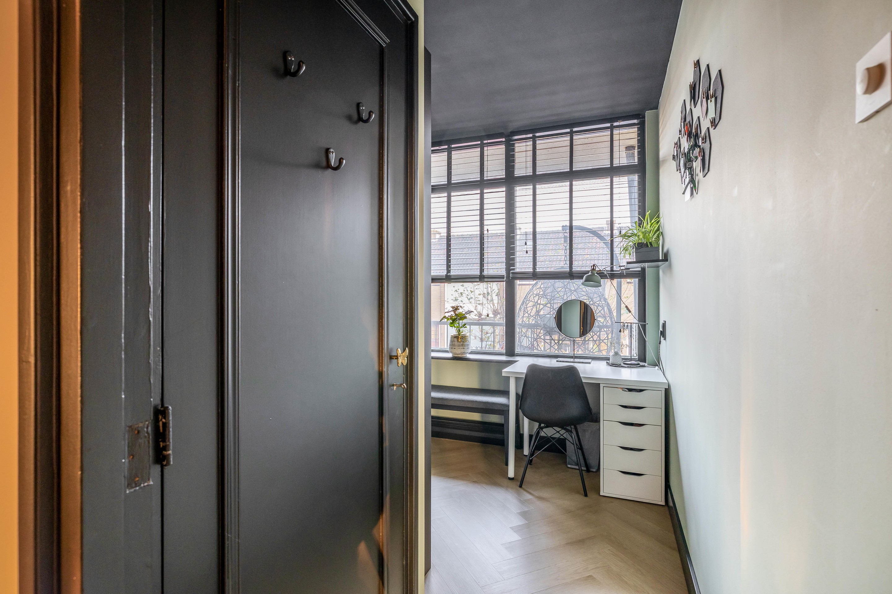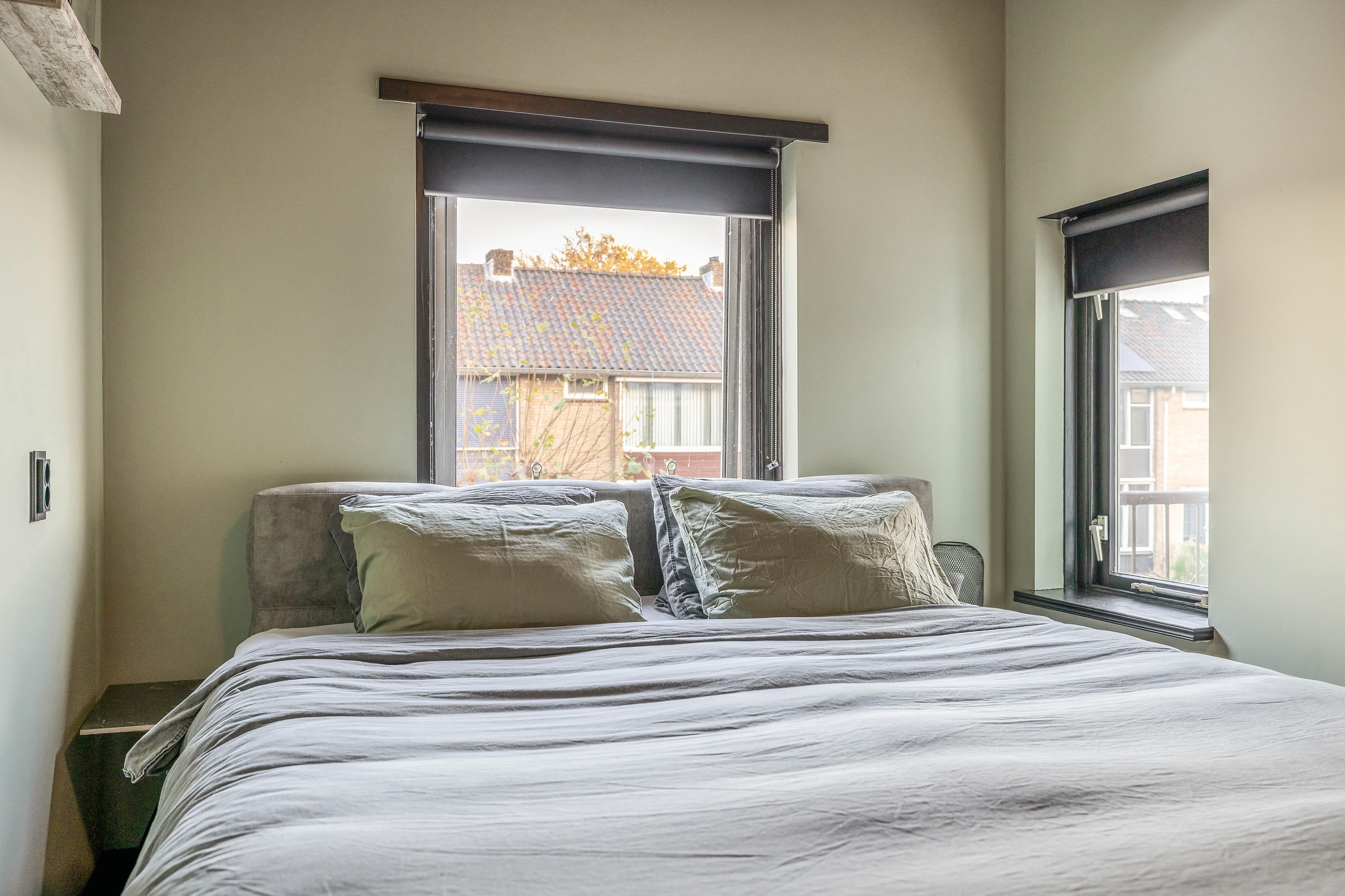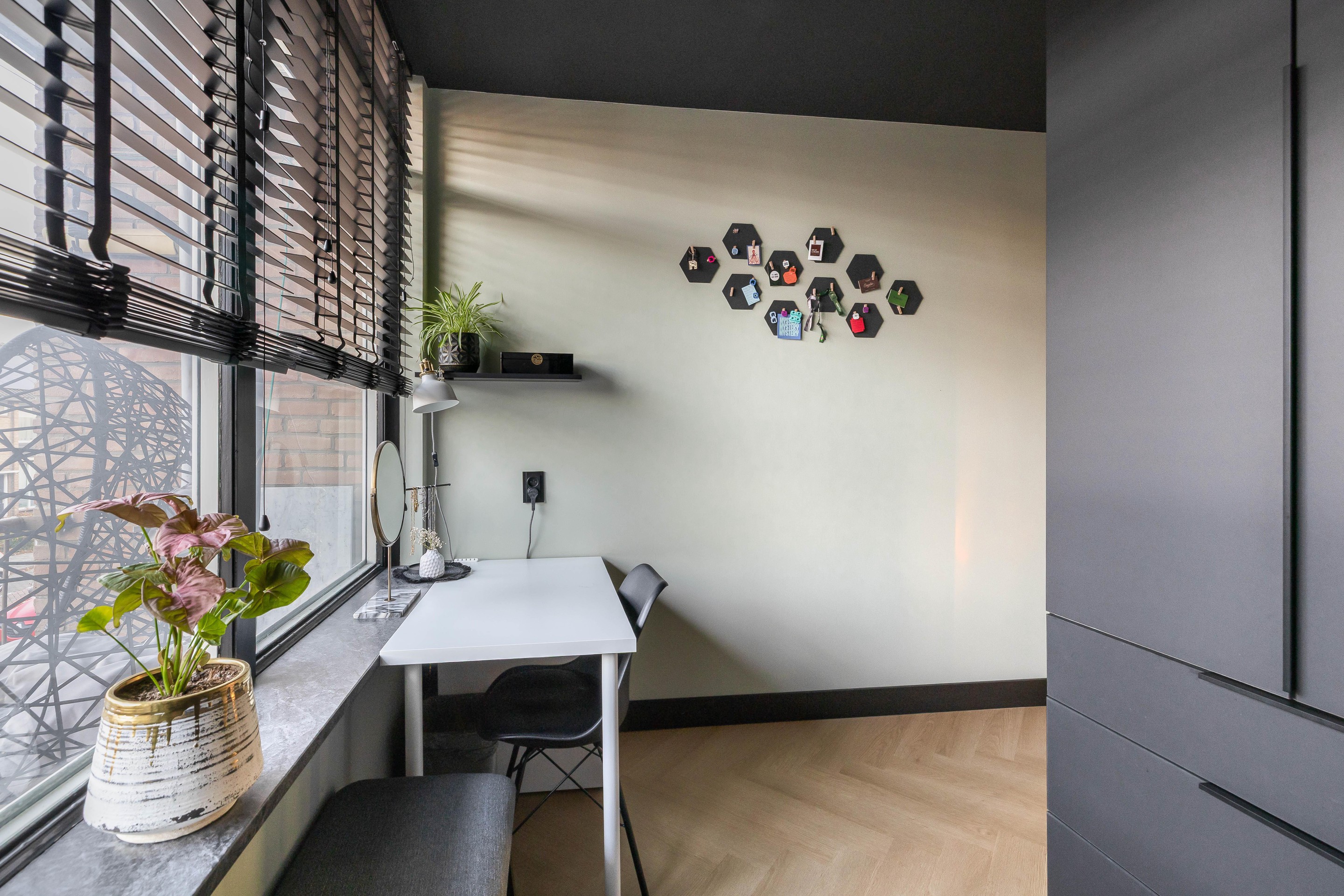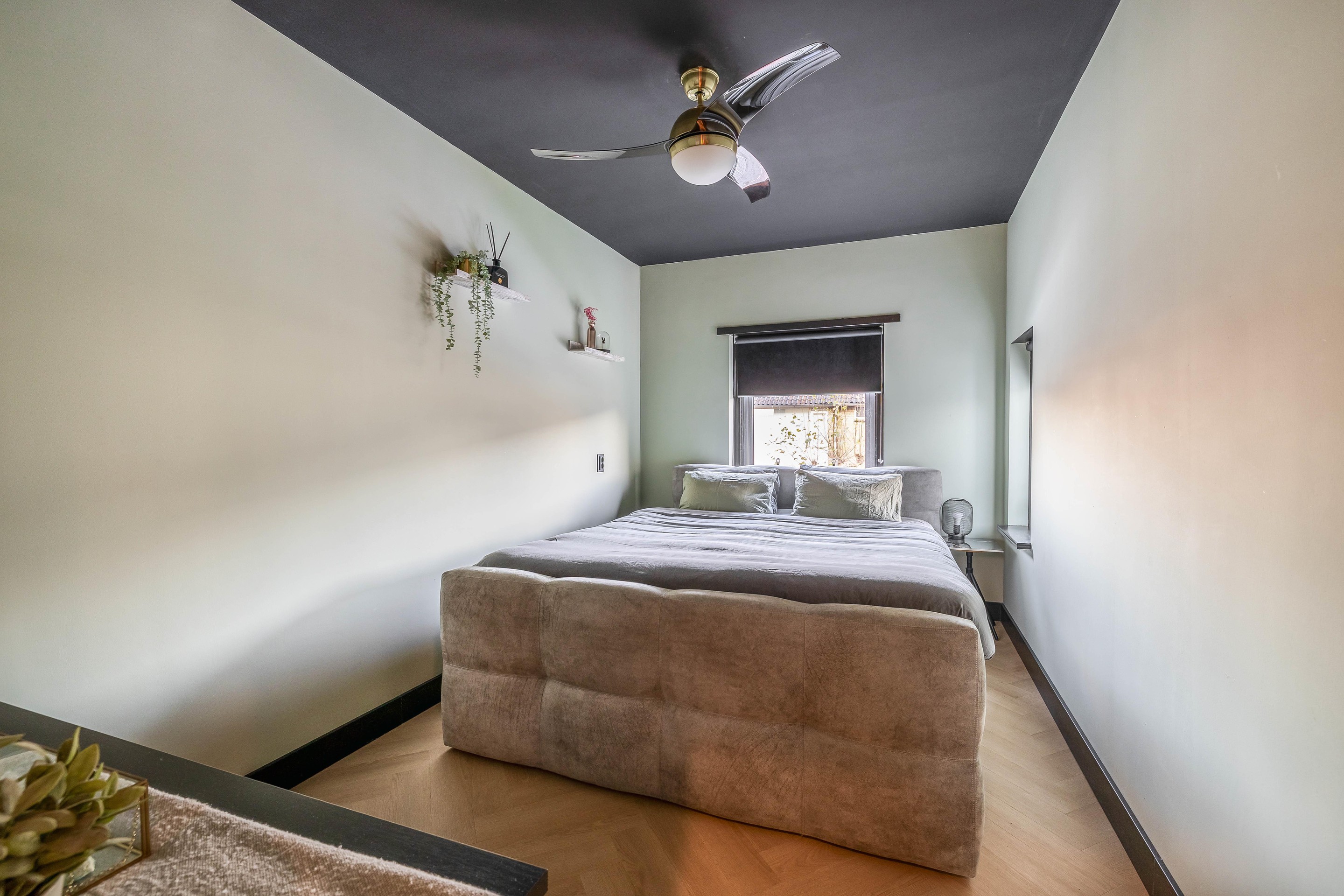 Via de overloop zijn twee slaapkamers bereikbaar, waarvan één met toegang tot het tweede balkon (oost), dé plek voor een ontbijtje in de ochtendzon. Beide kamers hebben een trendy zwart plafond en genieten van comfortabele vloerverwarming.