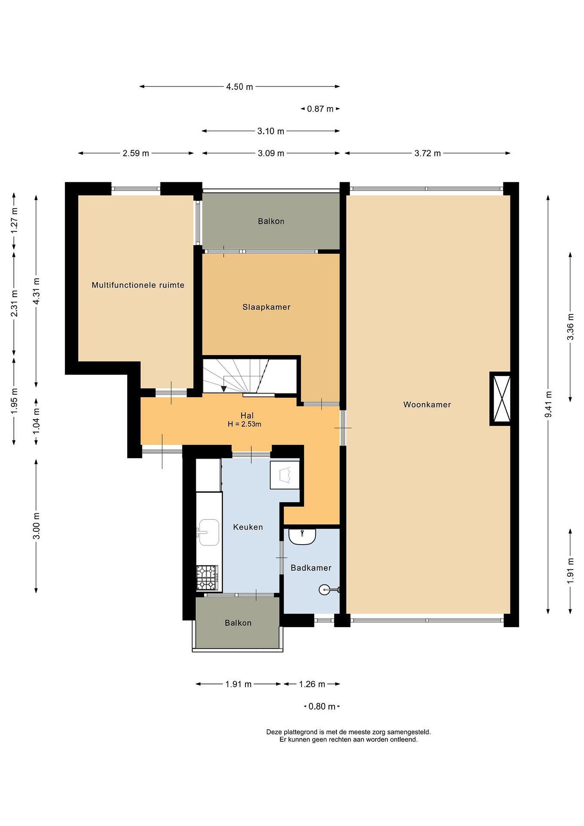 Deze vrijblijvende objectinformatie is met de meeste zorg samengesteld, maar voor de juistheid daarvan kunnen wij geen aansprakelijkheid aanvaarden. Ook kan aan de vermelde gegevens geen enkel recht worden ontleend. Alle informatie is enkel en alleen bedoeld voor de presentatie van het object en niet meer dan een uitnodiging tot het doen van een bod. Eventueel bijgevoegde plattegronden zijn slechts indicatief.