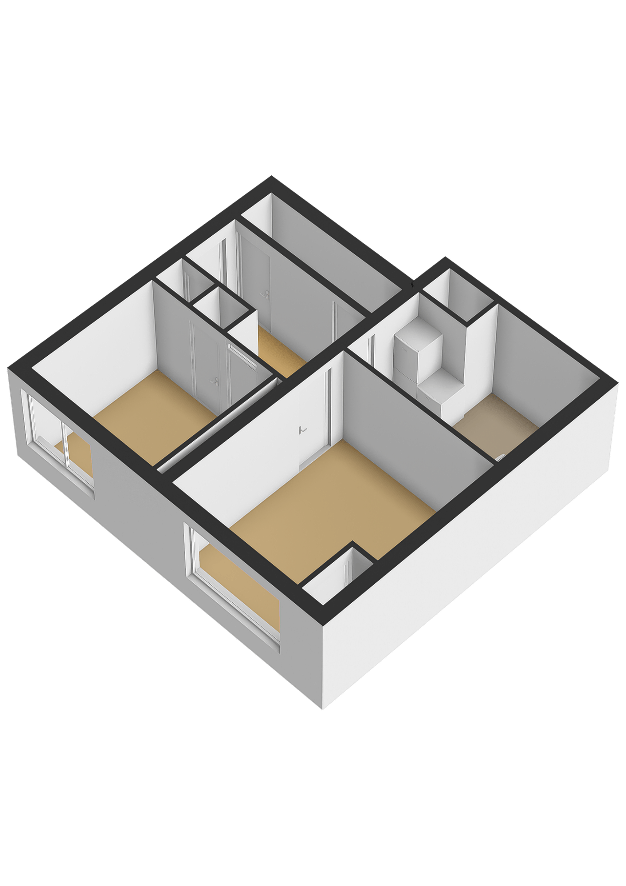 Aan de voorzijde van de woning zijn twee slaapkamers. Deze kamers zijn beide via de hal te bereiken. De grootste slaapkamer heeft toegang tot het balkon op het oosten, dat aan de voorzijde van het appartement ligt.