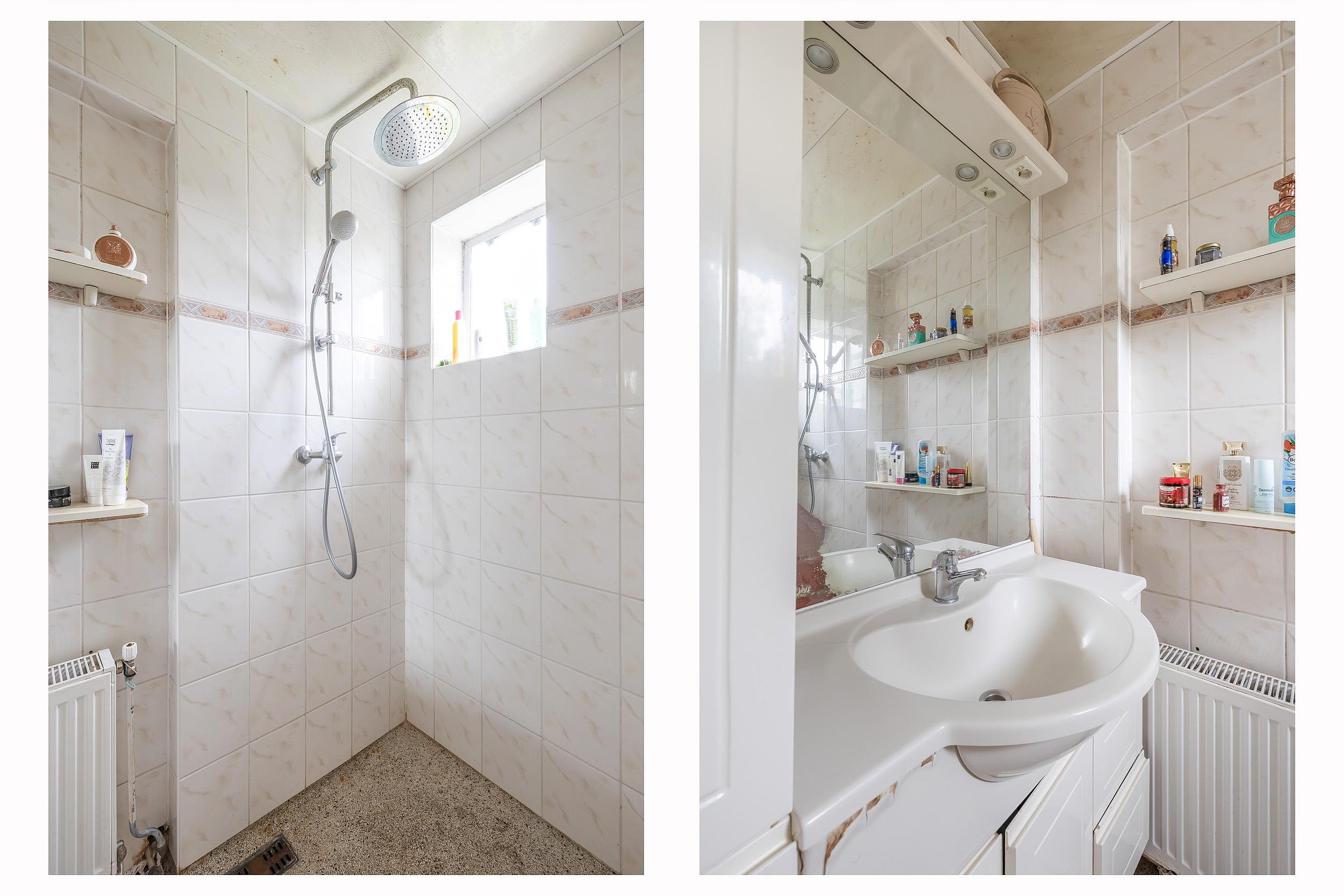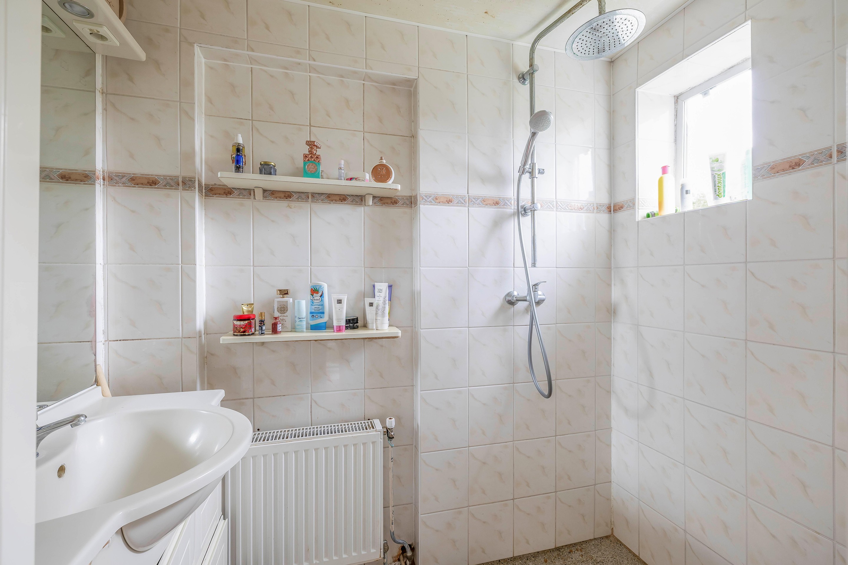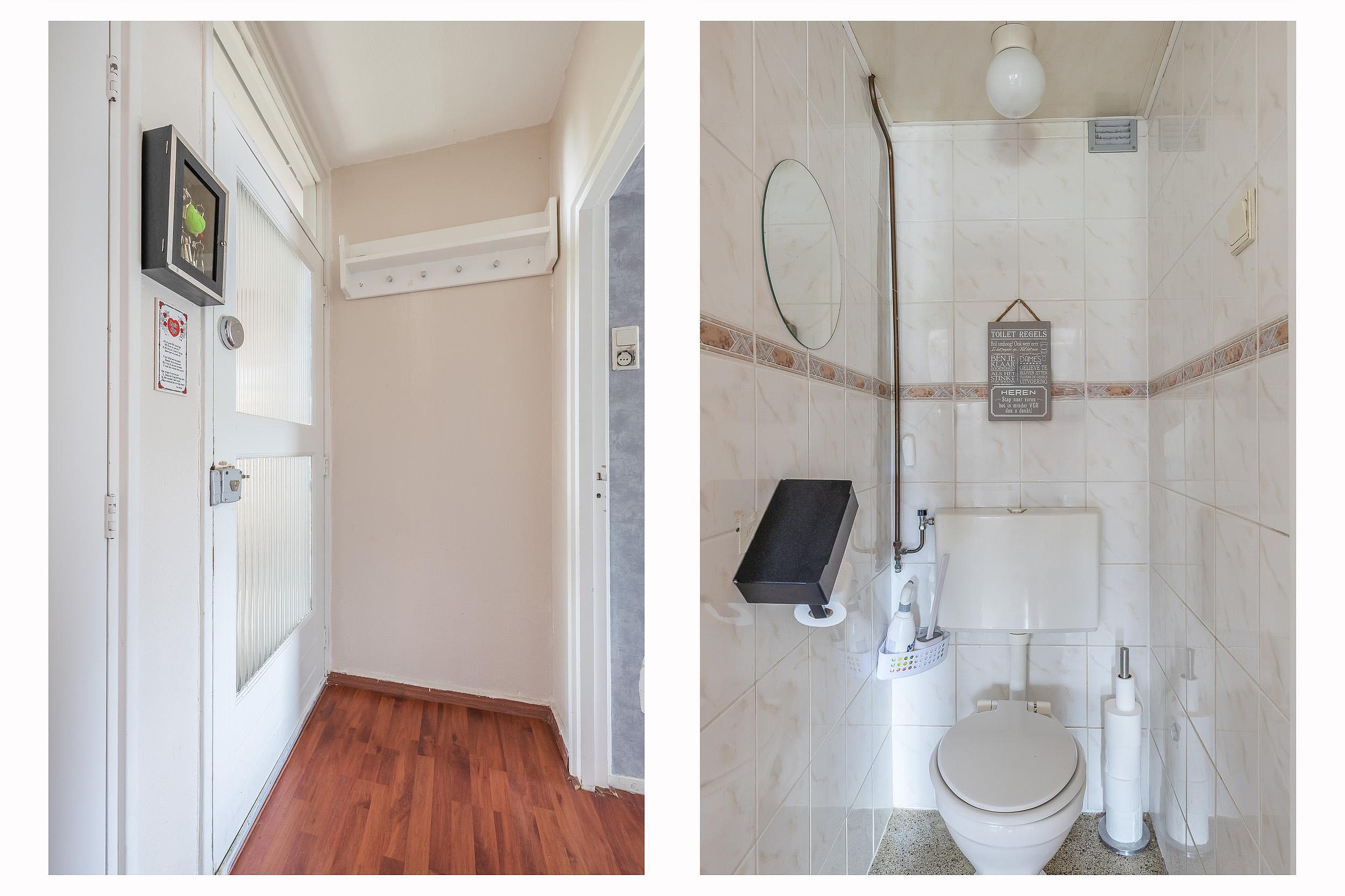 Begane grond De begane grond begint met een entree/hal, uitgerust met twee vaste kasten en de trap naar de eerste verdieping. Er zijn twee slaapkamers, die elk een directe verbinding met de tuin hebben. Beide slaapkamers hebben een eigen kast en de grootste slaapkamer beschikt daarnaast over een ruime extra bergkast. De inpandige berging is toegankelijk vanuit de hal en hier is ook de cv-ketel (Intergas HRE, 2020) geplaatst.