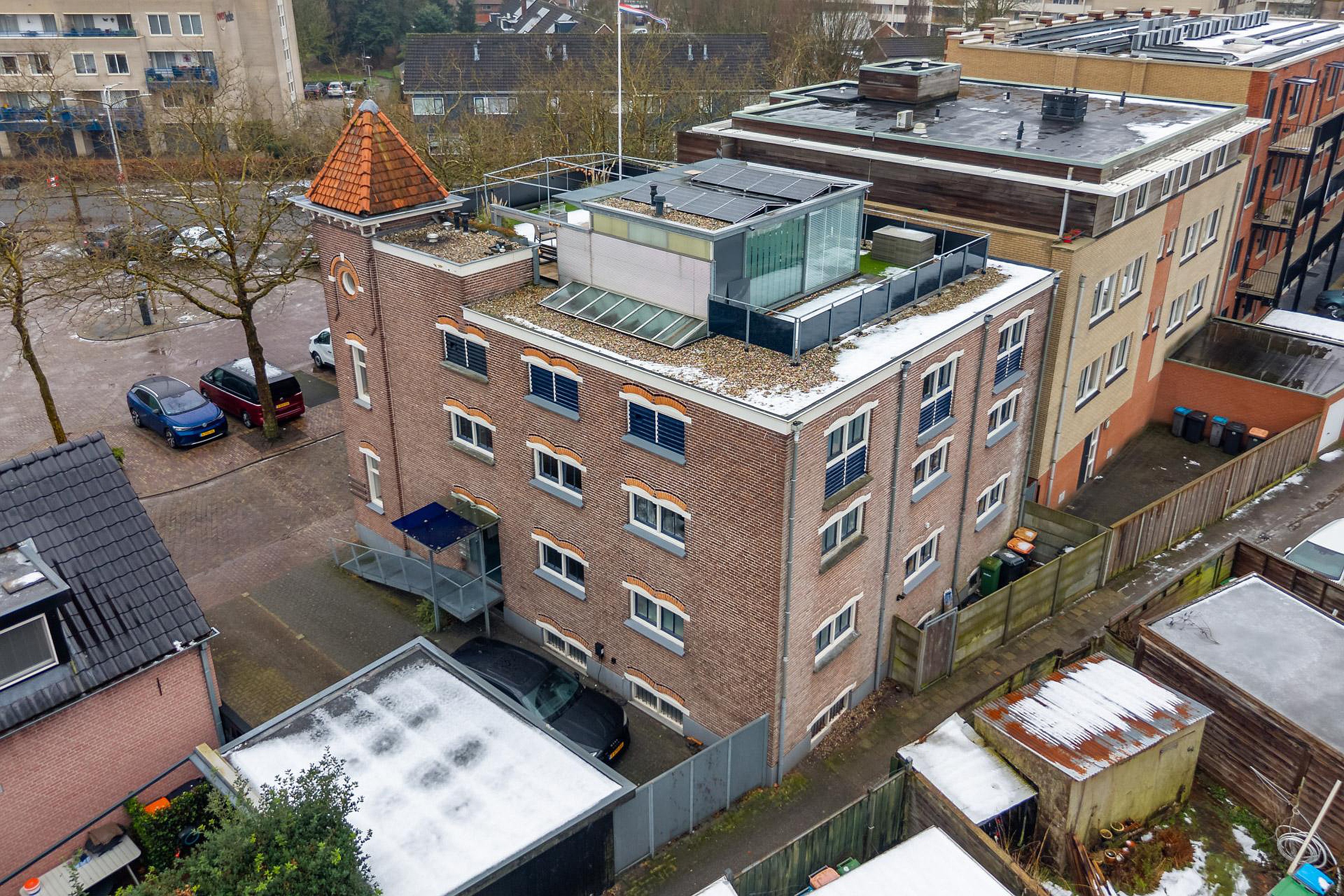 Het appartement bevindt zich op de tweede verdieping en is bereikbaar via een personenlift. De indeling is licht en ruimtelijk, waarbij authentieke elementen van het pand op smaakvolle wijze zijn behouden. U treft een royale woonkamer, een woonkeuken, een separate badkamer en twee volwaardige slaapkamers. Het ruime dakterras vormt een absolute eyecatcher. Dankzij de fraaie glazen opbouw is deze buitenruimte deels overdekt en tevens uitstekend geschikt als kantoor of werkplek aan huis. Hier geniet u van privacy en een prachtig uitzicht over de omgeving.
