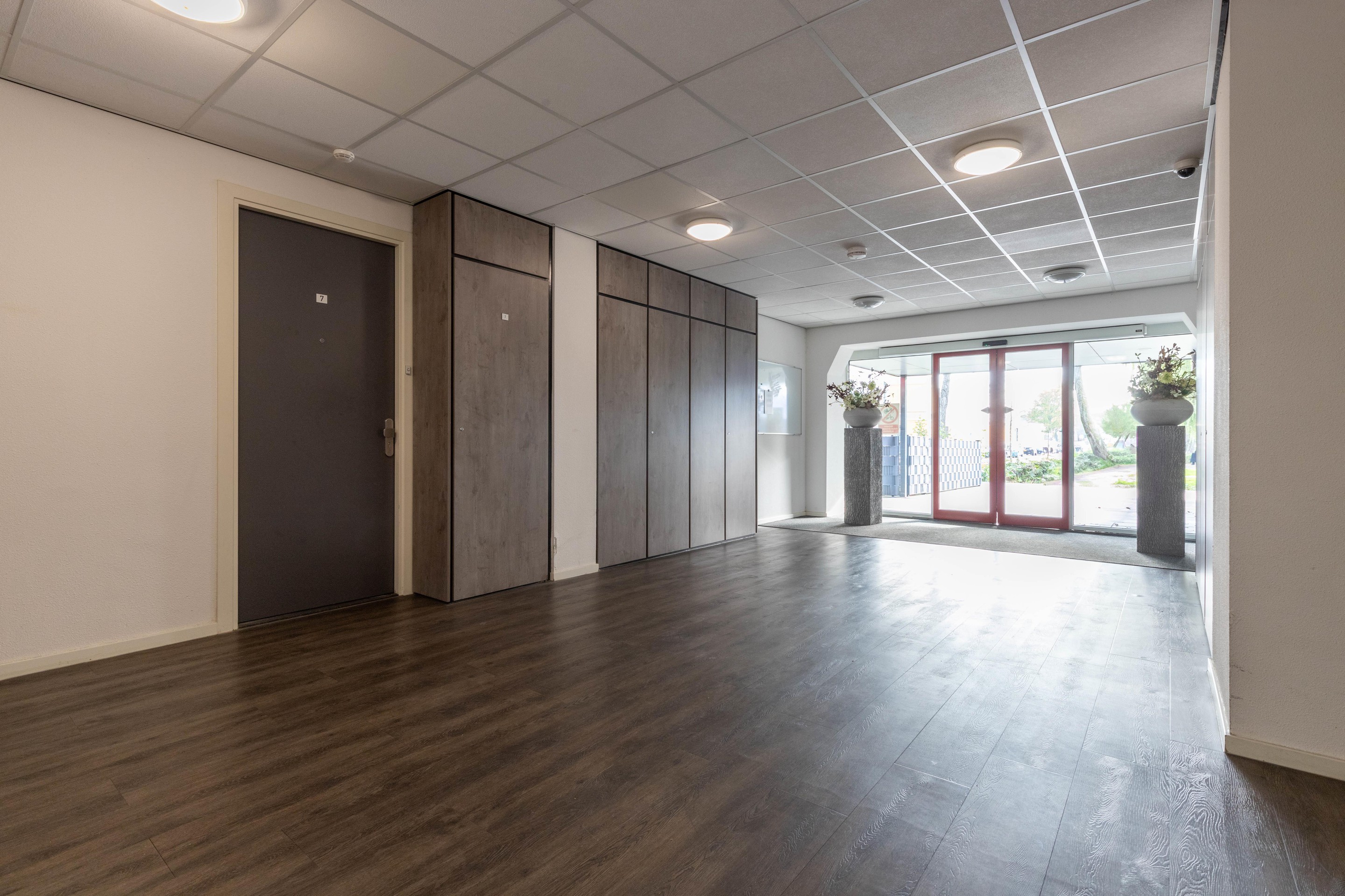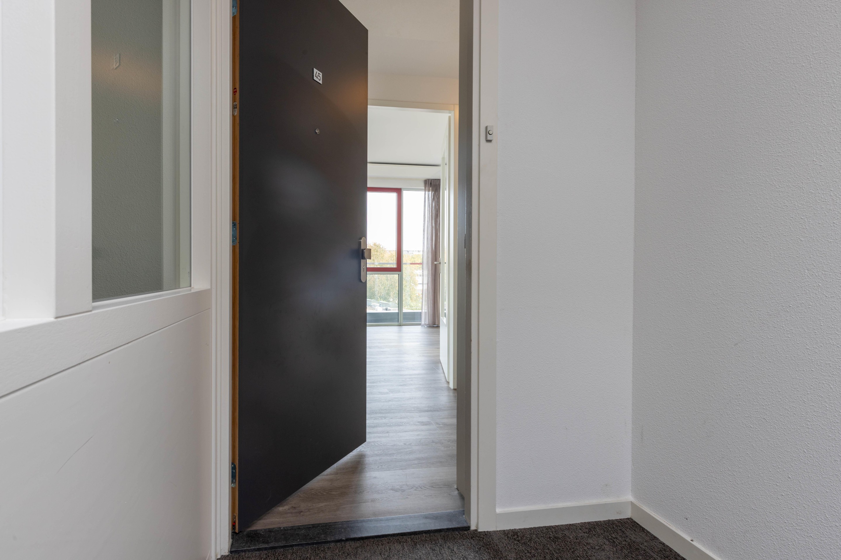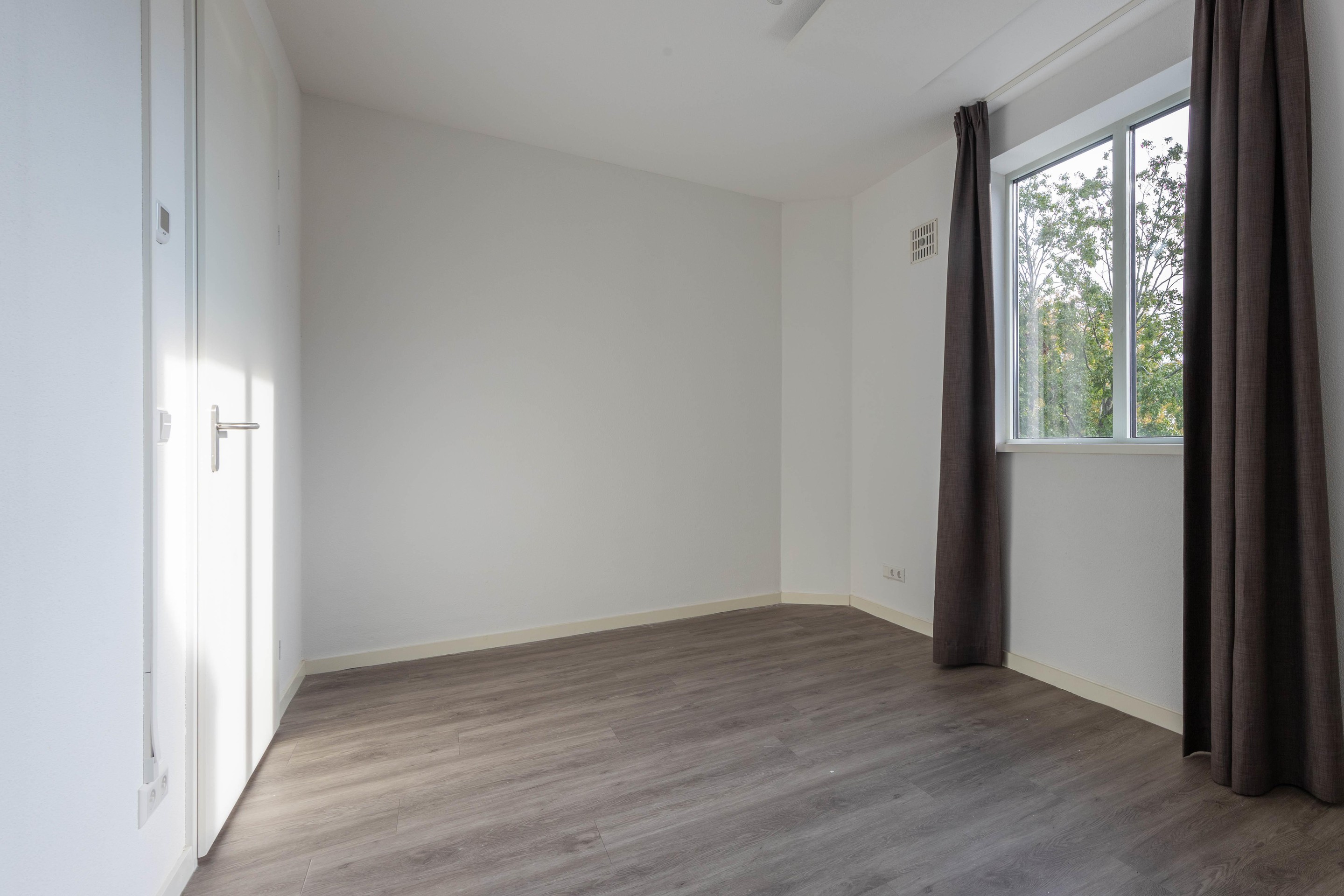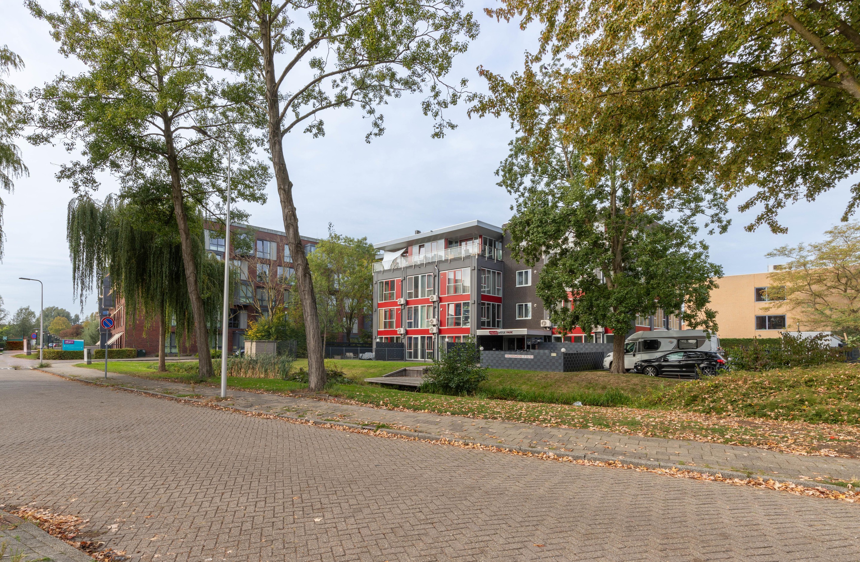 Eerste verdieping Meterkast. Entree: Hal. Modern vrijhangend toilet. Inpandige berging met aansluiting wasmachine en boiler. Moderne geheel betegelde badkamer voorzien van wastafel in meubel en inloopdouche. Eerste slaapkamer. Vanuit de hal is er toegang tot de royale woonkamer met een moderne open keuken voorzien van kookeiland en diverse inbouwapparatuur, door de grootte raampartijen heeft de woonkamer veel lichtinval. Vanuit de keuken zijn er openslaande deuren naar het grote dakterras. Aan de achterzijde van het appartement bevindt zich de tweede royale slaapkamer met tevens openslaande deuren naar het dakterras.
