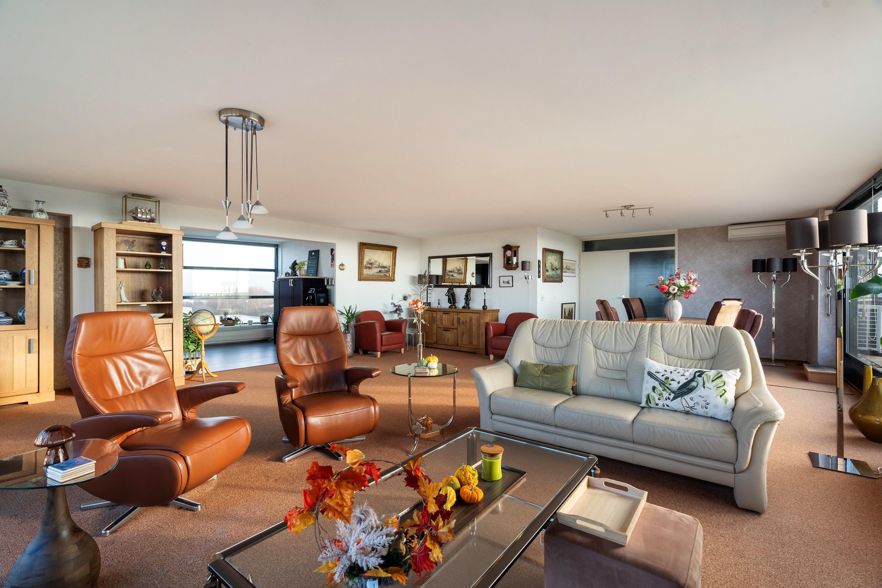 Via de tussendeur betreed je de riante woonkamer