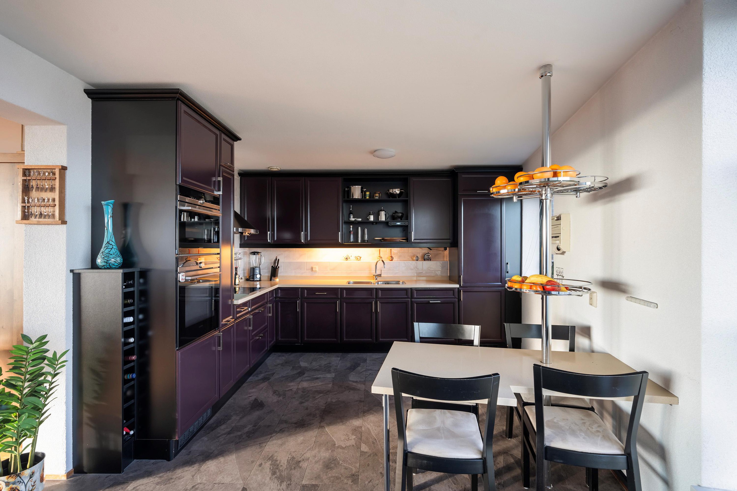 De halfopen keuken sluit perfect aan op de woonkamer en biedt voldoende werkruimte, terwijl je altijd in contact blijft met je gezelschap.