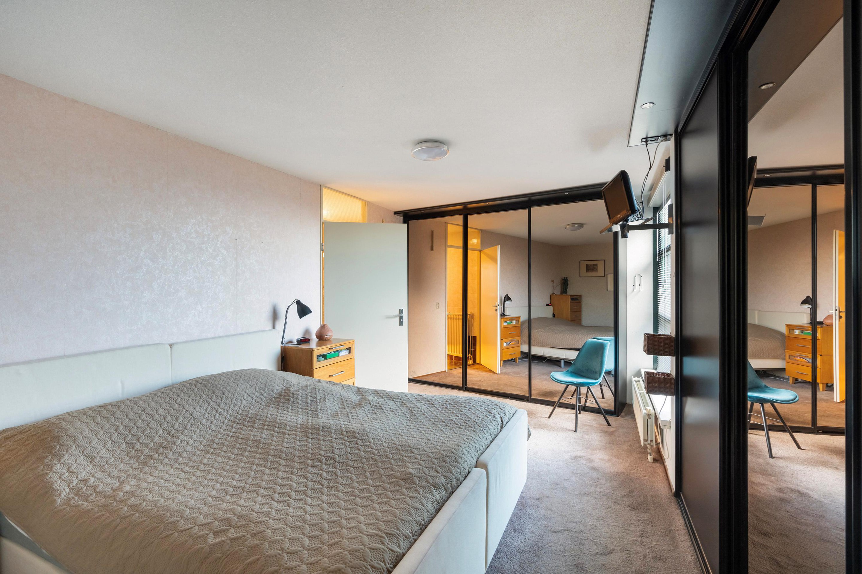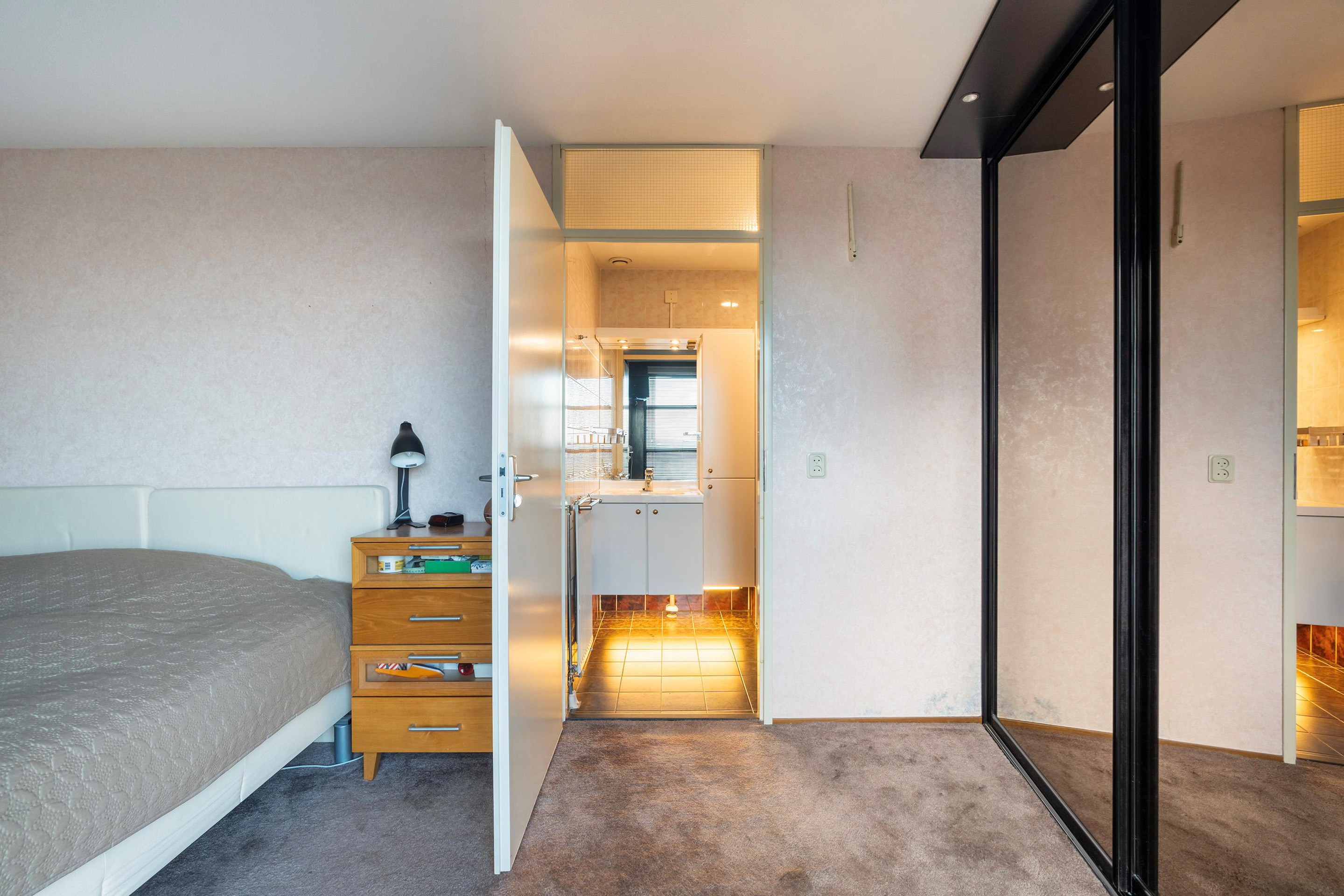 De derde slaapkamer fungeert als royale master bedroom en beschikt over een luxe en suite badkamer, voorzien van douche, wastafel en toilet, uitgevoerd in moderne en tijdloze kleuren. Een comfortabele en privé ruimte die voelt als een hotel suite.