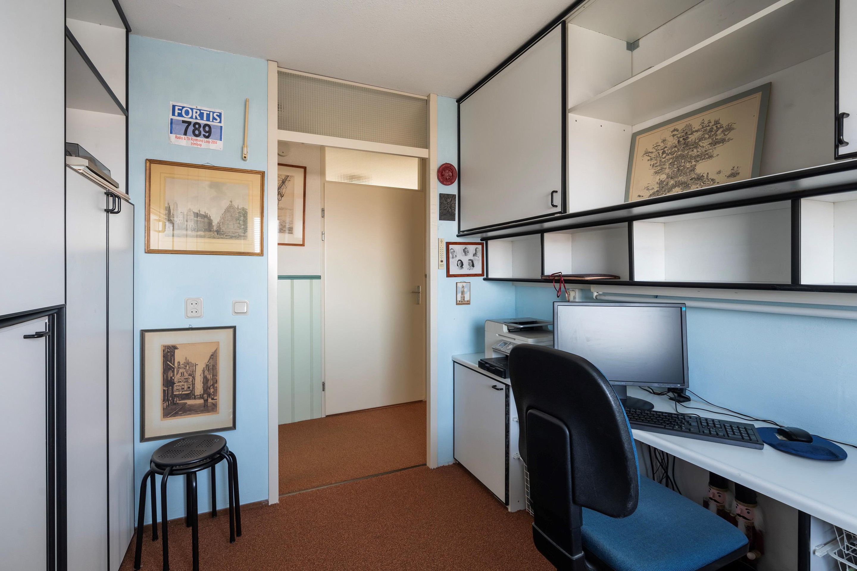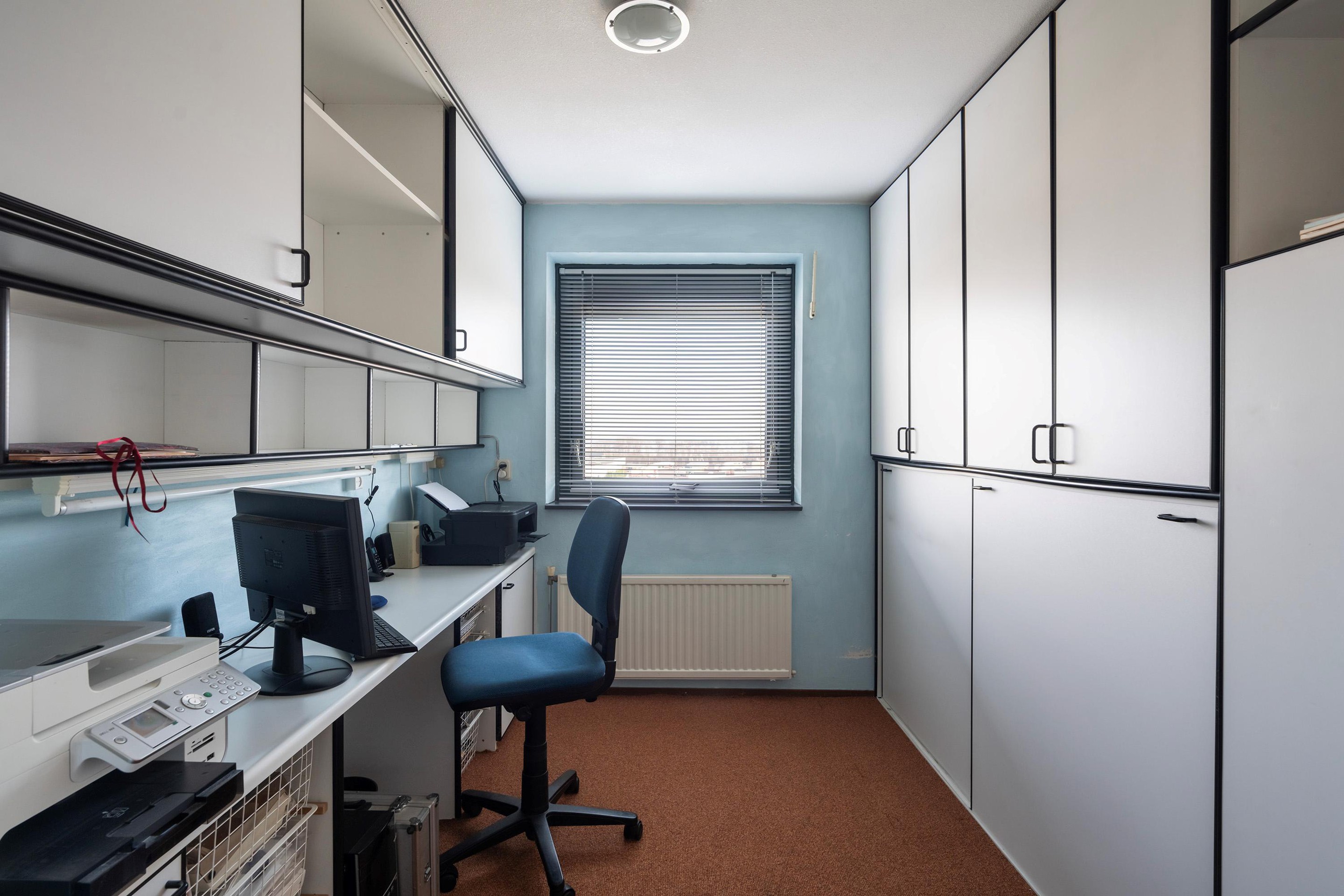 Aan de rechterzijde van de hal bevinden zich meerdere slaapkamers. De eerste slaapkamer is ideaal als comfortabele slaap- of logeerkamer, de tweede is momenteel ingericht als werkkamer maar eenvoudig anders in te delen.