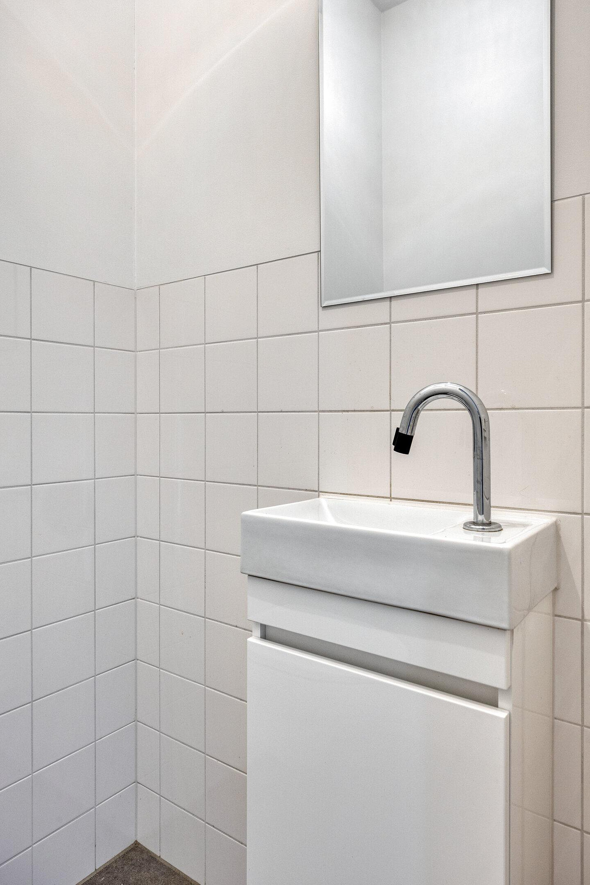 De badkamer is centraal in de woning gelegen en praktisch ingericht. Daarnaast beschikt het appartement over een separate toiletruimte, een inpandige berging en een aparte kast, wat zorgt voor extra opslagmogelijkheden.