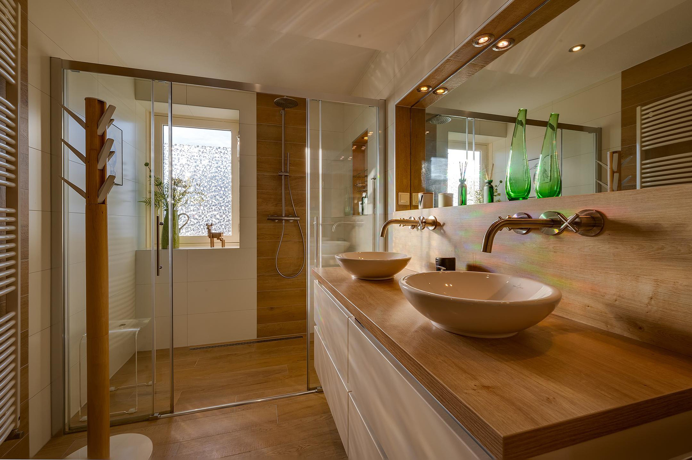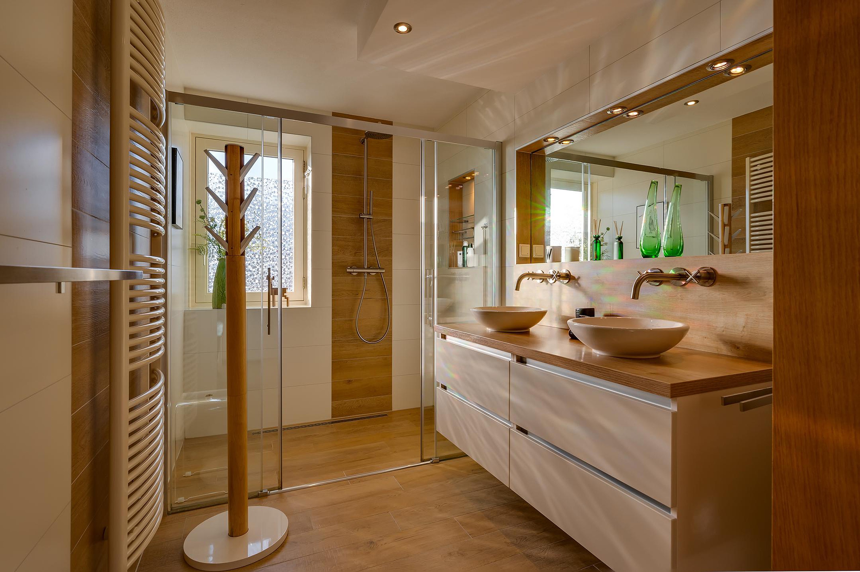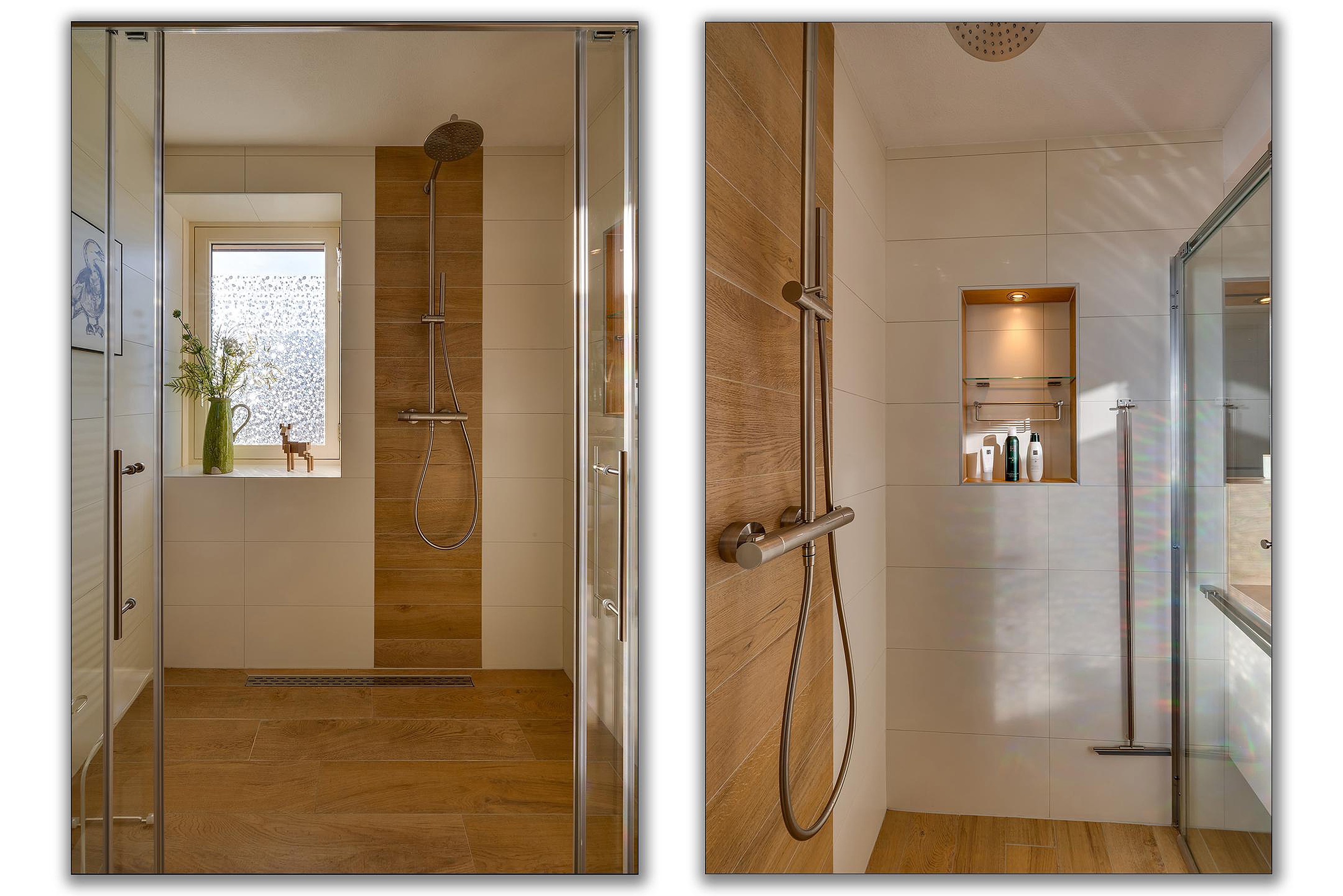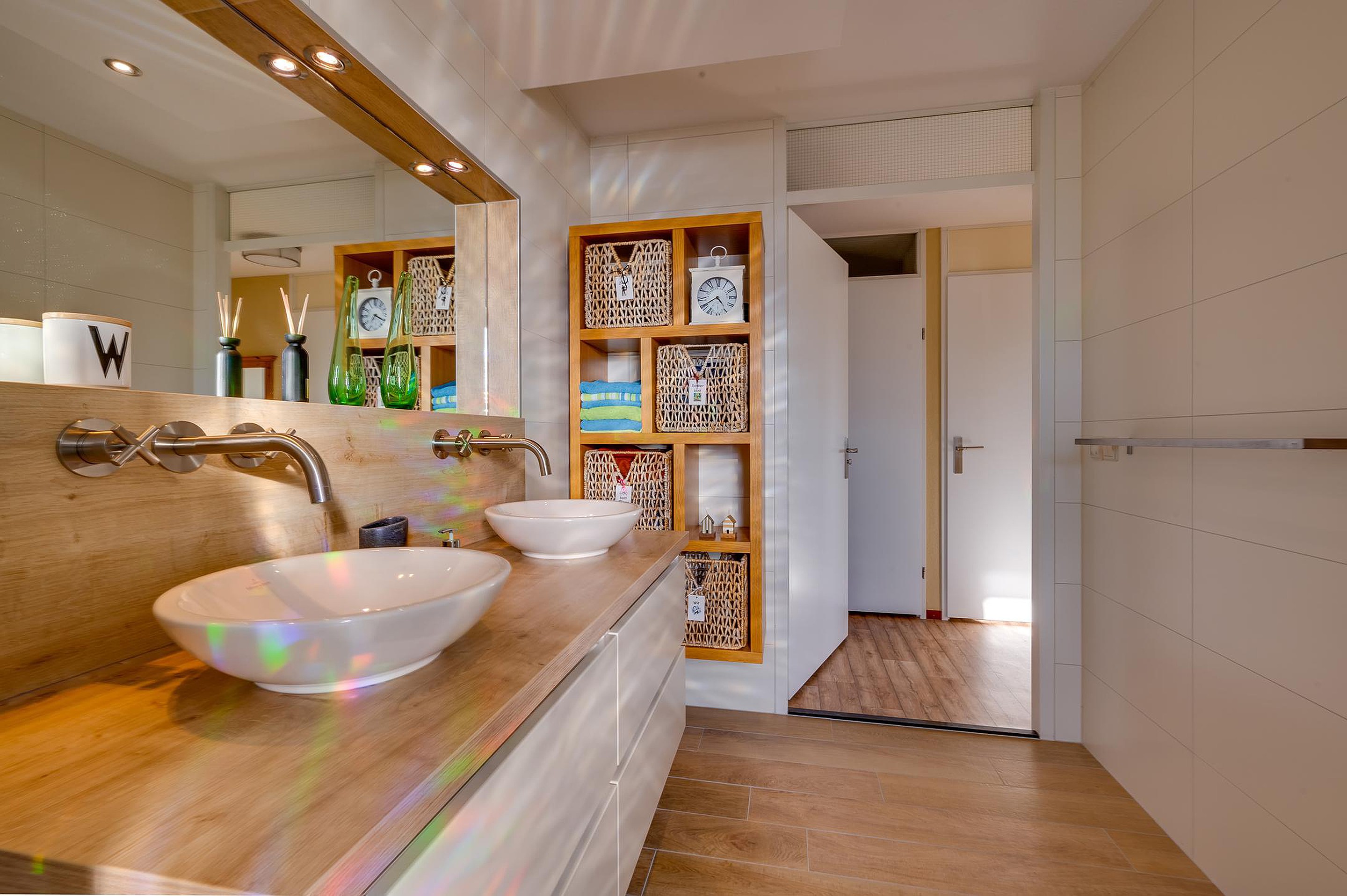 De badkamer voelt als een privé-spa met een grote inloopdouche, dubbele wastafel met waskommen en design handdoekradiator. Ook is er een separaat modern toilet aanwezig. Verder vind je hier een aparte wasruimte met aansluitingen voor wasmachine en droger en een uitstortgootsteen.