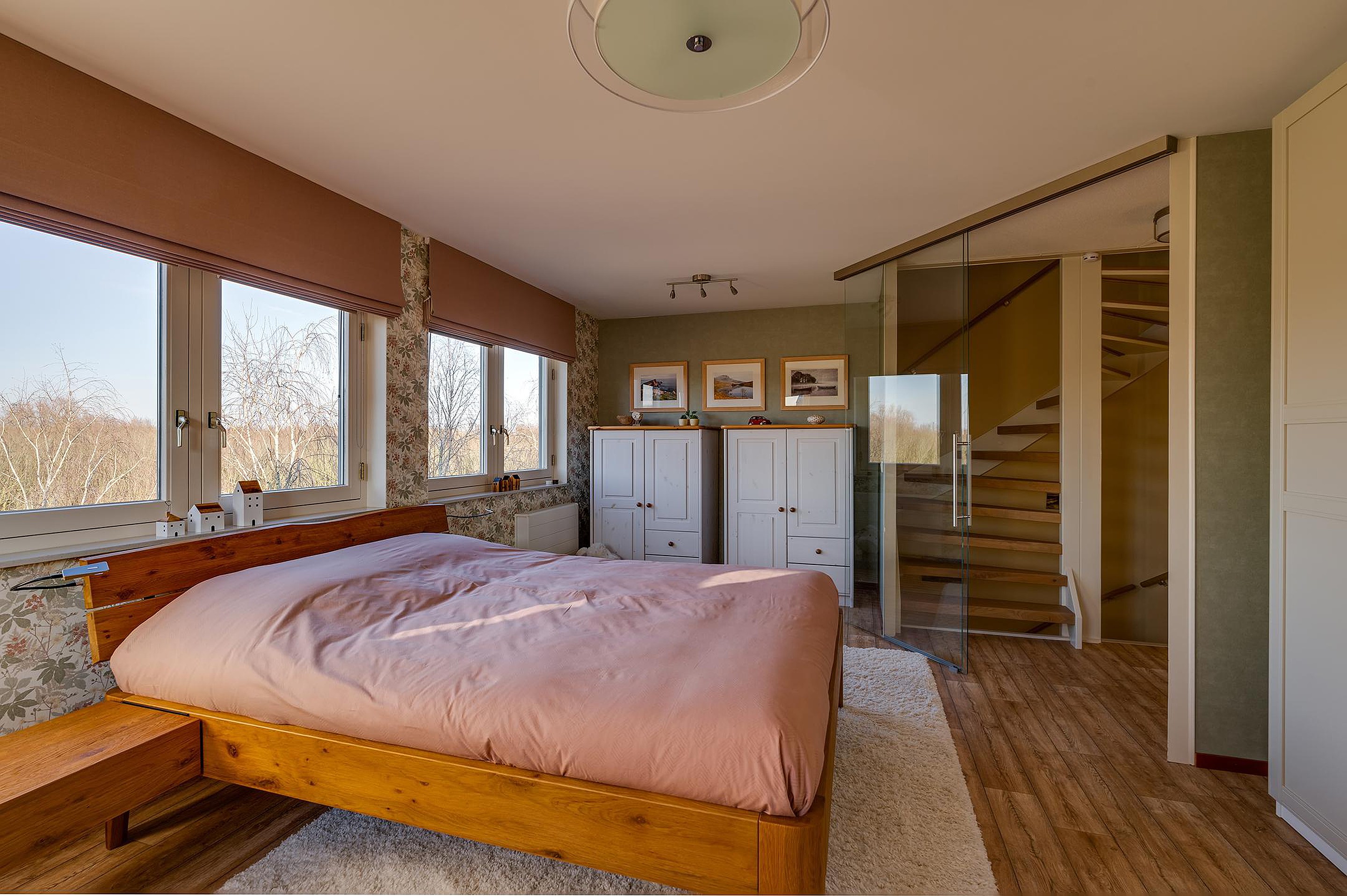 Op deze verdieping bevinden zich de slaapkamers en badkamer. De master bedroom is royaal doordat twee kamers zijn samengevoegd en biedt een prachtig uitzicht op het Valckesteynse bos. Daarnaast zijn er nog twee ruime slaapkamers aan de andere zijde van de verdieping – ideaal voor (oudere) kinderen die hun eigen ruimte willen.