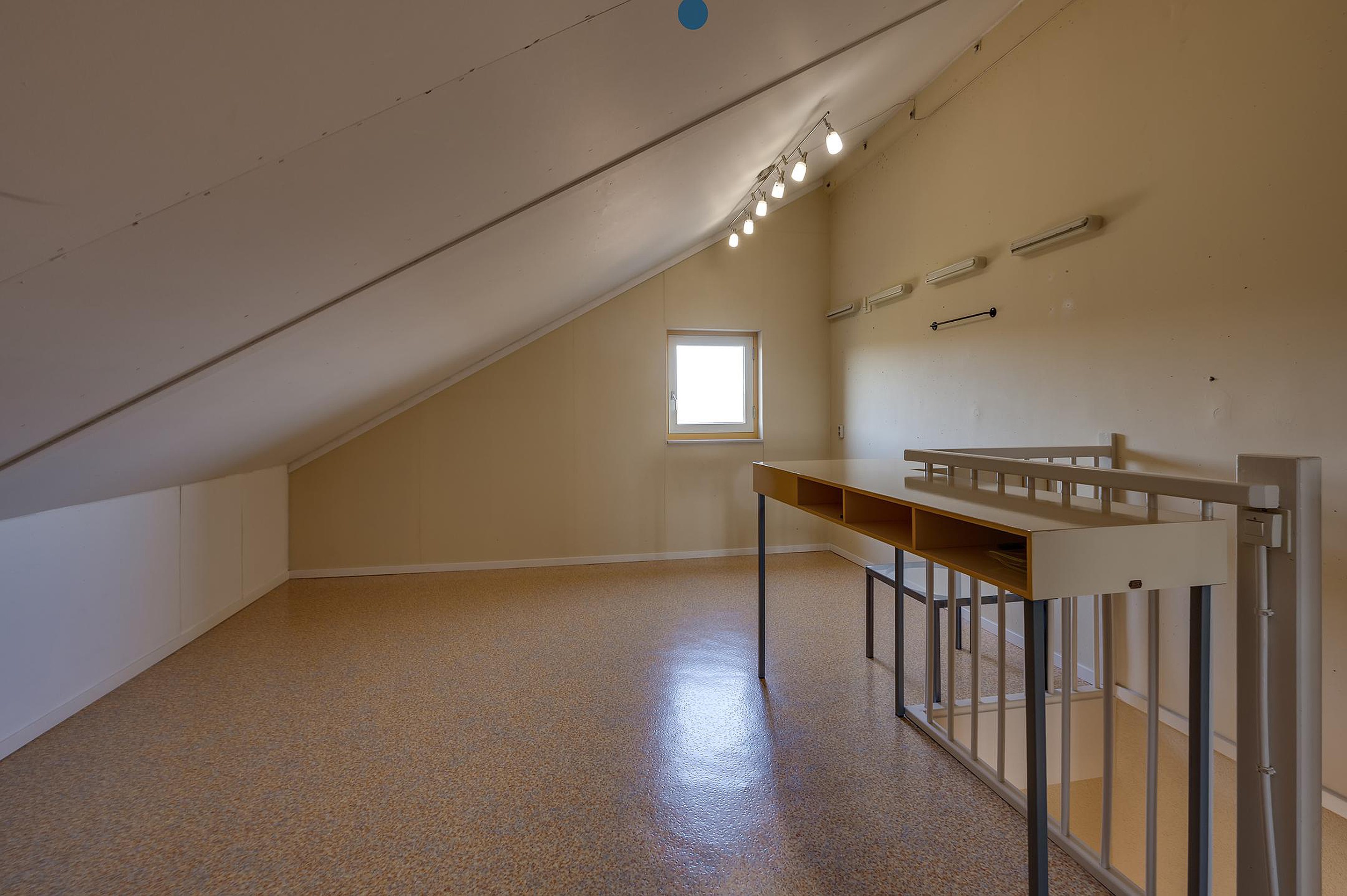 De bovenste verdieping maakt het woonhuisgevoel compleet. Hier vind je een indrukwekkend ruime zolderverdieping die je kunt gebruiken als kantoor, fitnessruimte, chillruimte voor tieners of extra slaapkamer. Daarnaast is er nog een vierde slaap-/werkkamer met vaste kastenwand. Ook bevinden zich hier de CV-installatie en mechanische ventilatie.