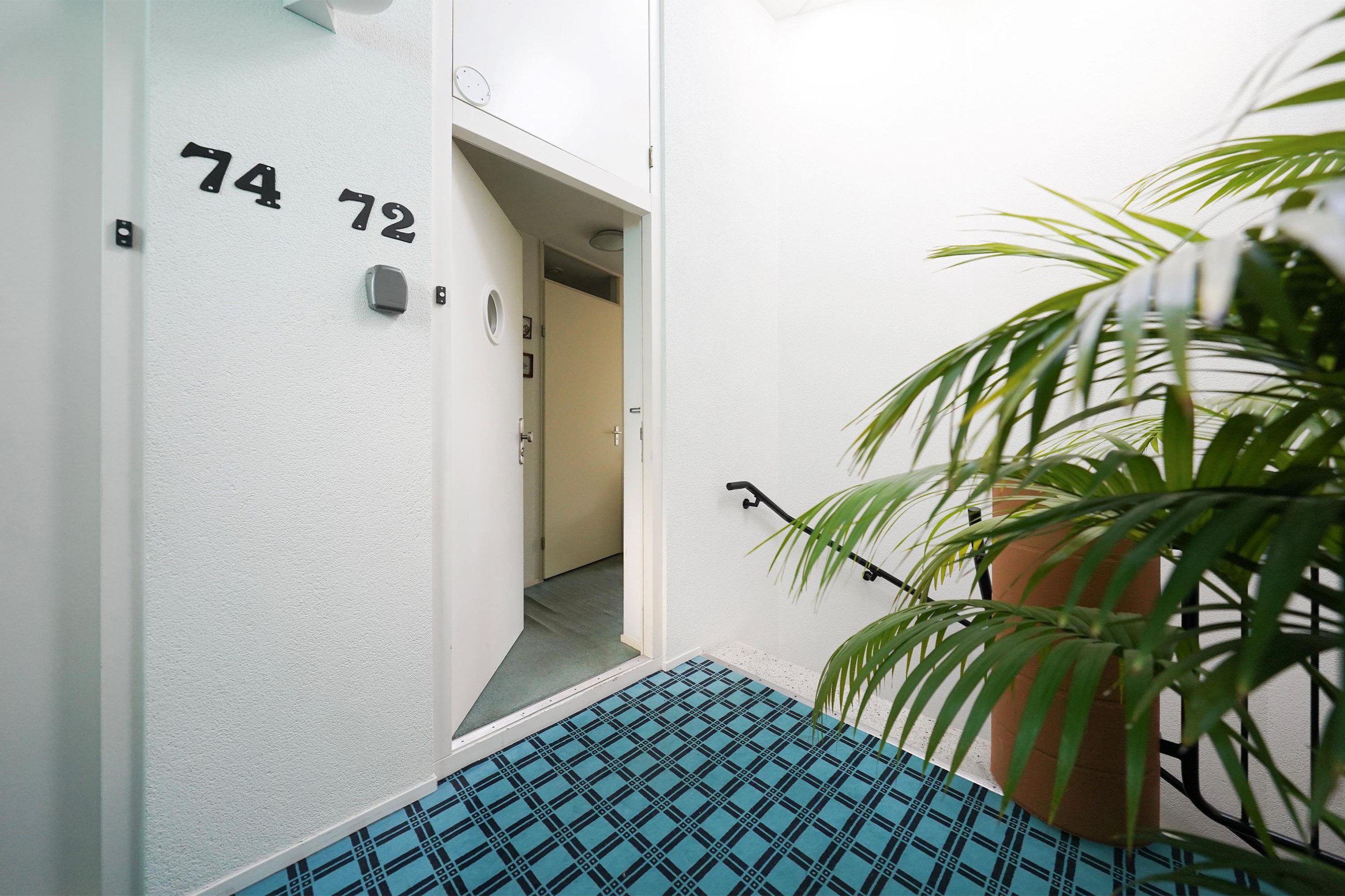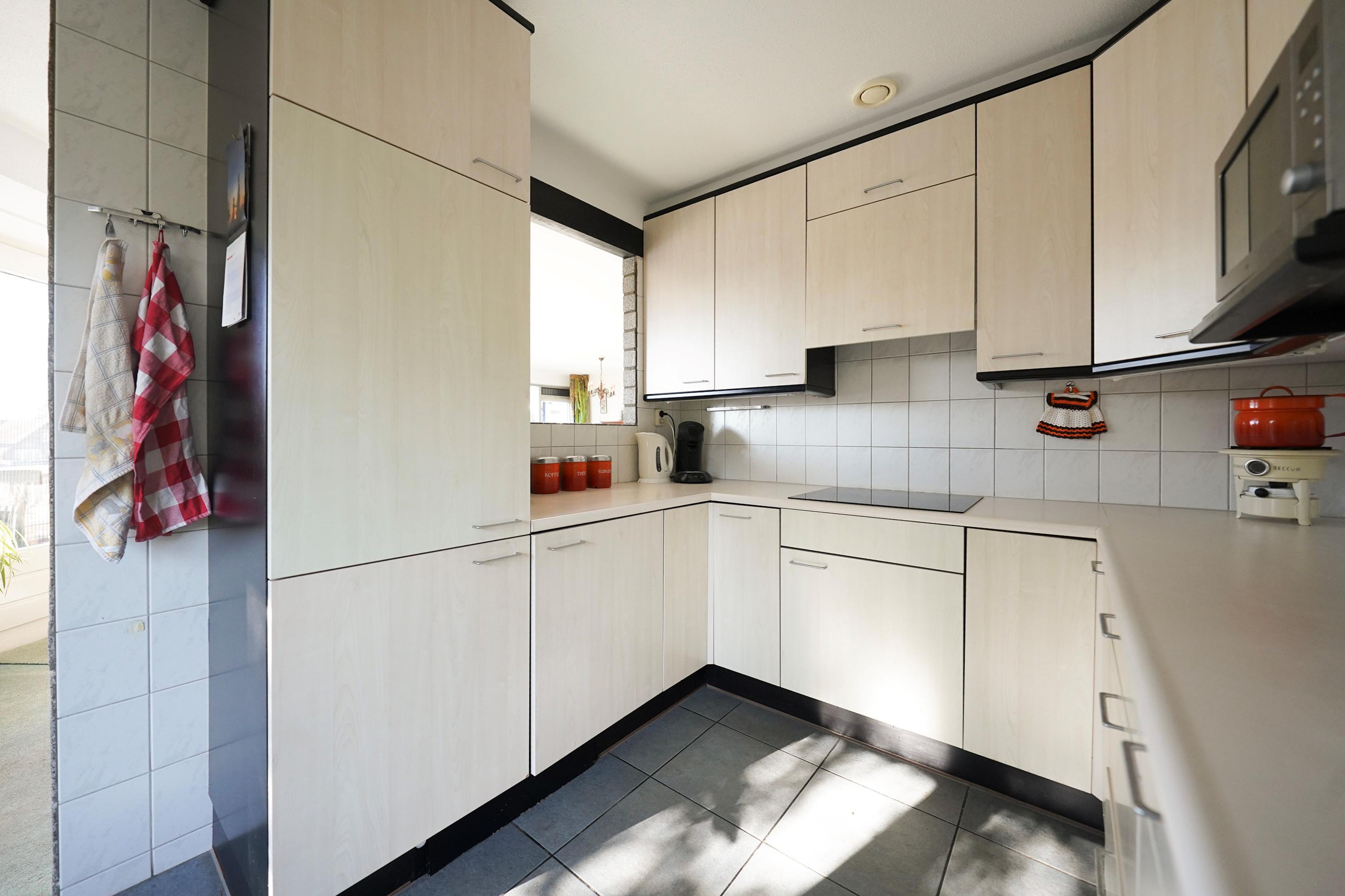 Parkeren kan gemakkelijk rondom het gebouw. Aan de Pancratiushof zijn 4 dezelfde gebouwen gelegen, ruim gesitueerd voor optimale privacy maar ook gezelligheid. Het terrein is mooi aangelegd met daarbij ook mooie beplanting. De entree van het gebouw in kwestie is ruim opgezet. U loopt zo naar binnen en eenmaal binnen kan een bezoeker aanbellen bij het juiste appartement. De deur gaat automatisch open en dan is het kiezen tussen de trap of de lift. We gaan naar de 2e verdieping en hier zijn 2 appartement gesitueerd. Heel fijn en rustig! Bij binnenkomst valt mij meteen de bijzonder indeling op. Dit is geen “standaard” appartement maar elke kamer is speels ingedeeld en heeft zijn eigen meters. De woonkamer en de keuken zijn samen een fijne, grote ruimte. U ziet op de foto’s al wel hoe leuk u dus ook hier naar buiten kijkt. De keuken is nu deels afgesloten maar dit zou u eventueel meer open kunnen maken. Vanuit de woonkamer en de keuken zijn er 3 deuren naar het terras. Dit terras is op het zuiden gelegen en is ook voorzien van buitenzonwering.
