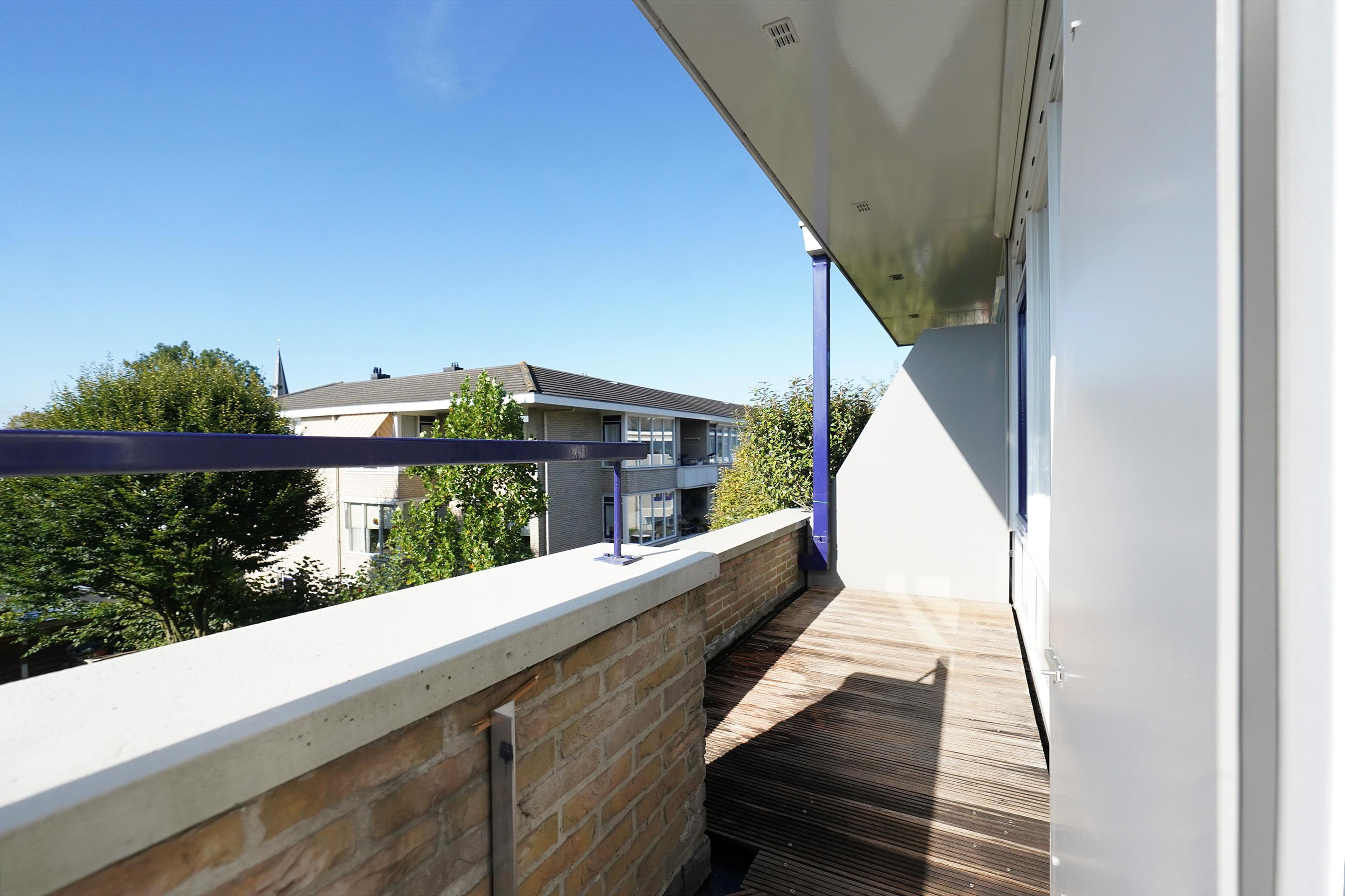 Weer terug naar de hal waar we nu aan de andere zijde de ouderslaapkamer betreden. Dit is ook weer een verrassende fijne, grote ruimte, juist meer op het noordoosten gelegen. Ook hier bevindt zich een deur naar het terras en vanaf deze zijde heeft u uitzicht op de Katholieke kerk aan de Brinkstraat. De straat is wat verder weg gelegen, dus het is rustig vertoeven op het terras. Prachtig zijn de bomen op de oostkant waardoor u ook wat schaduw heeft, maar vooral lekker groen uitzicht. Ook al woont u op de bovenste verdieping, hier kunt u ook genieten van de natuur!