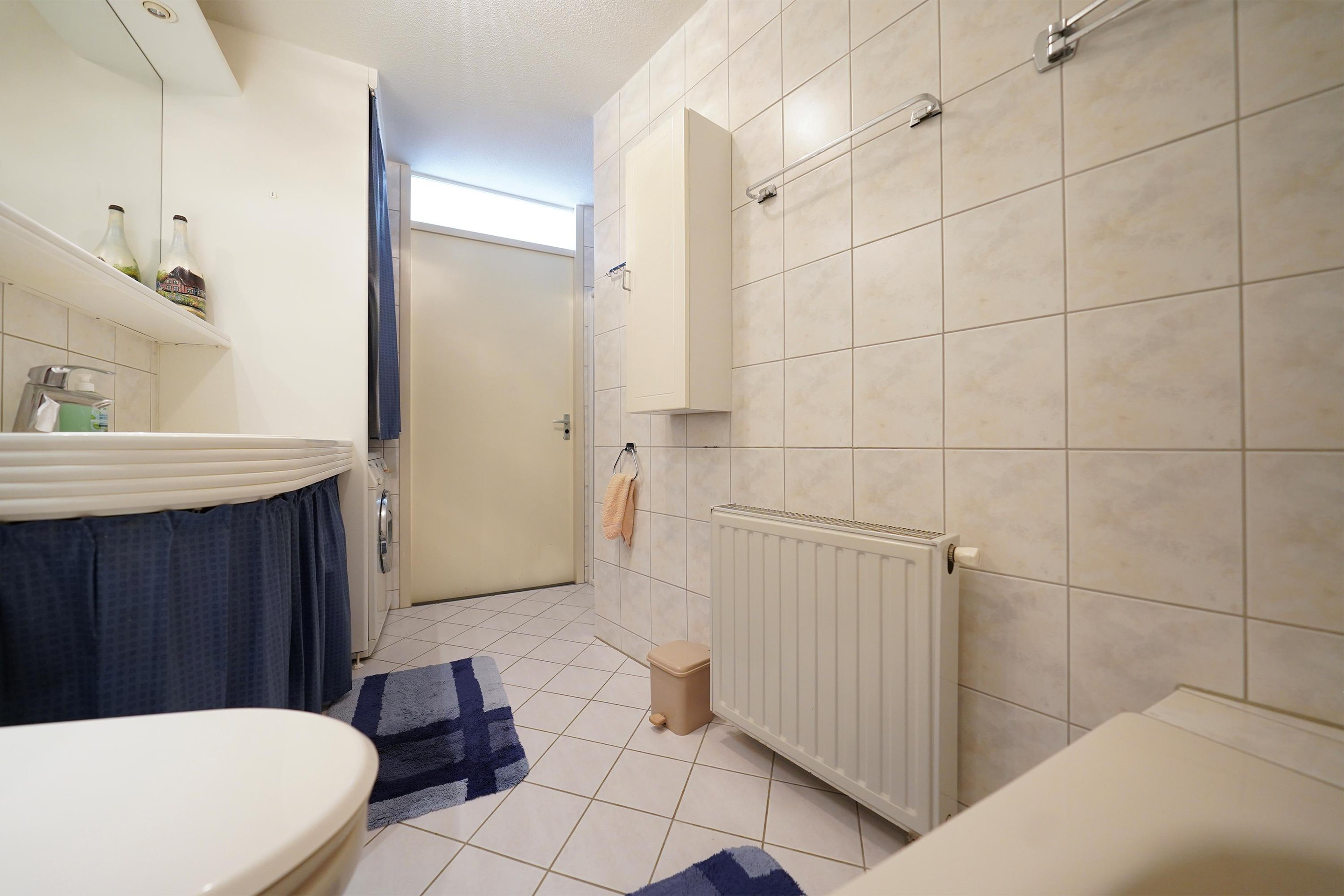 De 2e slaapkamer heeft ook een fors formaat en biedt toegang tot het terras op het oosten. De 3e kamer is ingericht als werkkamer op dit moment. Wat een sfeer en wat een heerlijke lichte kamer weer. Dan is er nog een ruime badkamer aanwezig met een douchecabine, een groot wastafelmeubel, een ligbad en een toilet. In de badkamer is ook ruimte voor een wasmachine en een droger. Er is daarnaast nog een separate toiletruimte met hangend toilet en fonteintje aanwezig.