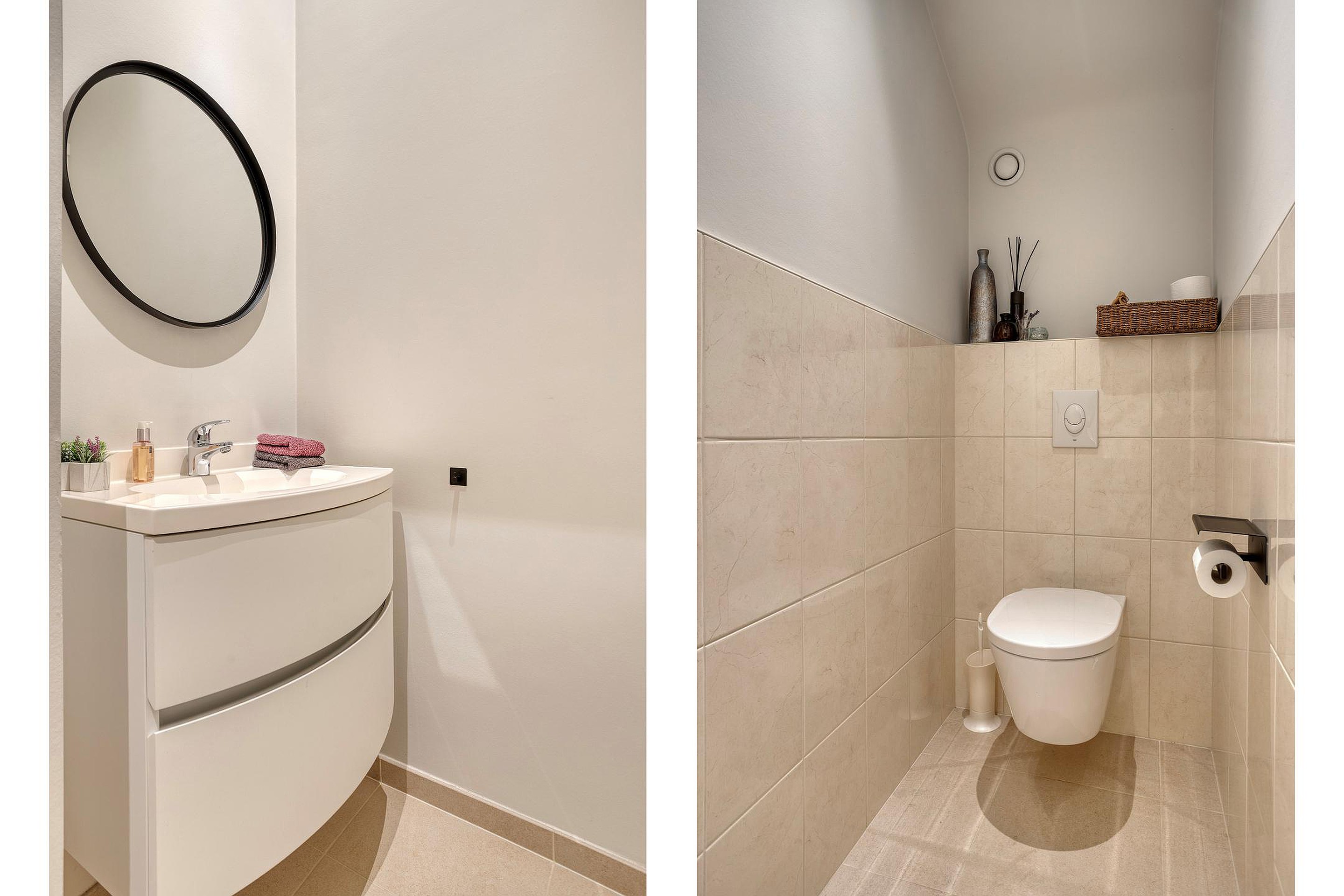 - Badkamers: Twee luxe badkamers; één met dubbele wastafel en inloopdouche, de andere met douche, wastafel, toilet en radiator. Daarnaast is er een separaat gastentoilet.