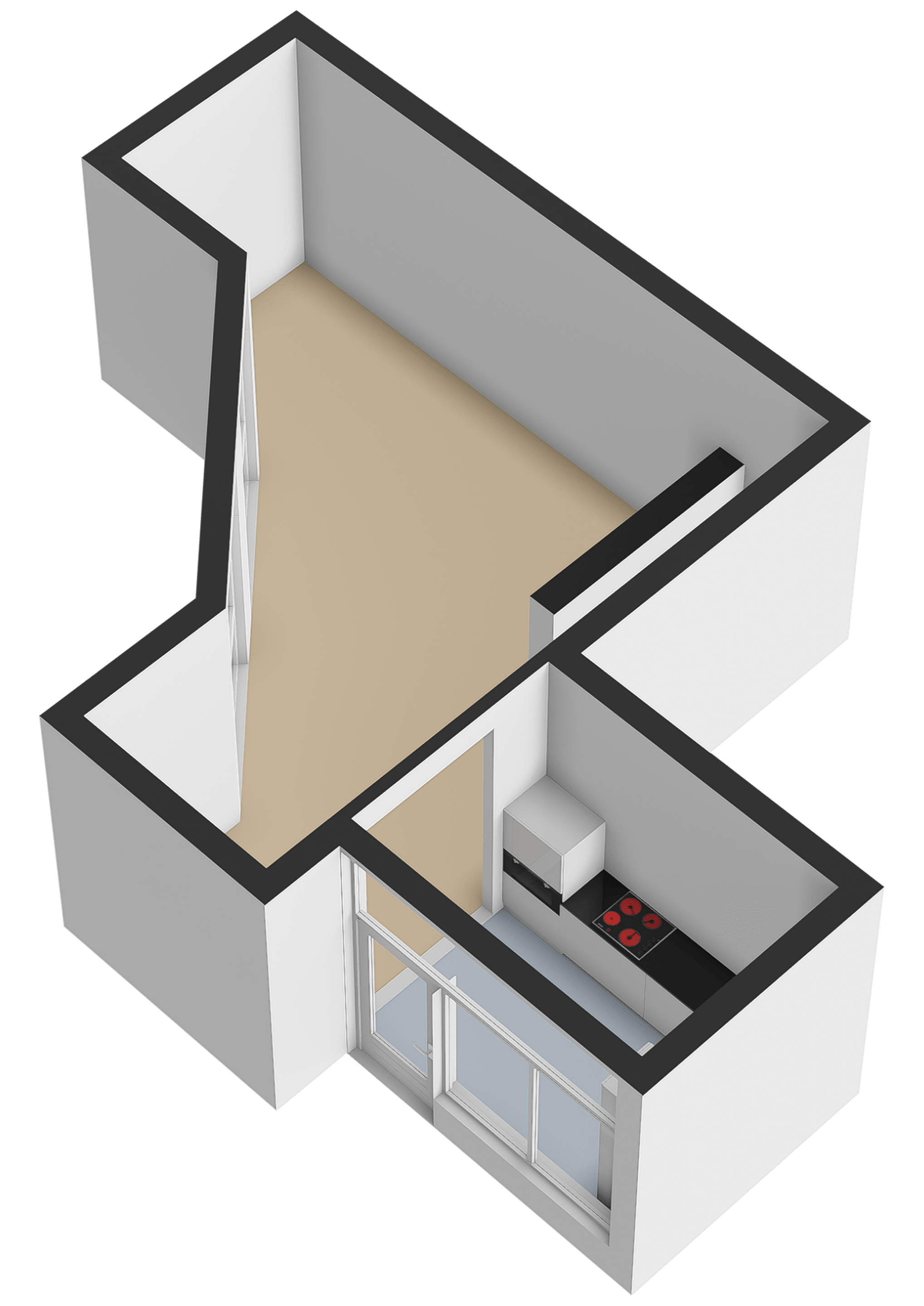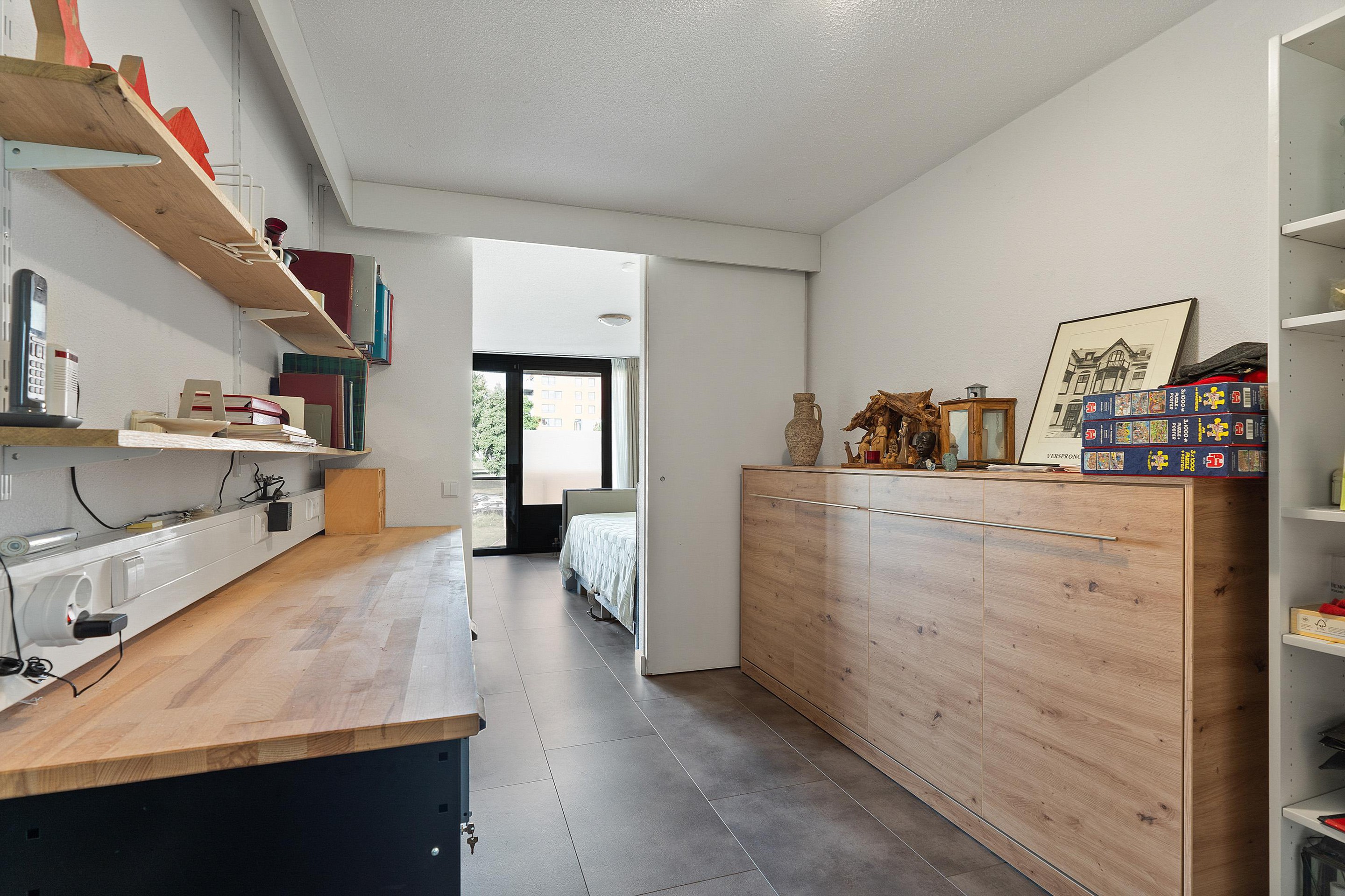 - Mogelijkheid tot kantoorruimte of een tweede slaapkamer te creëren door een wand met deur te plaatsen.