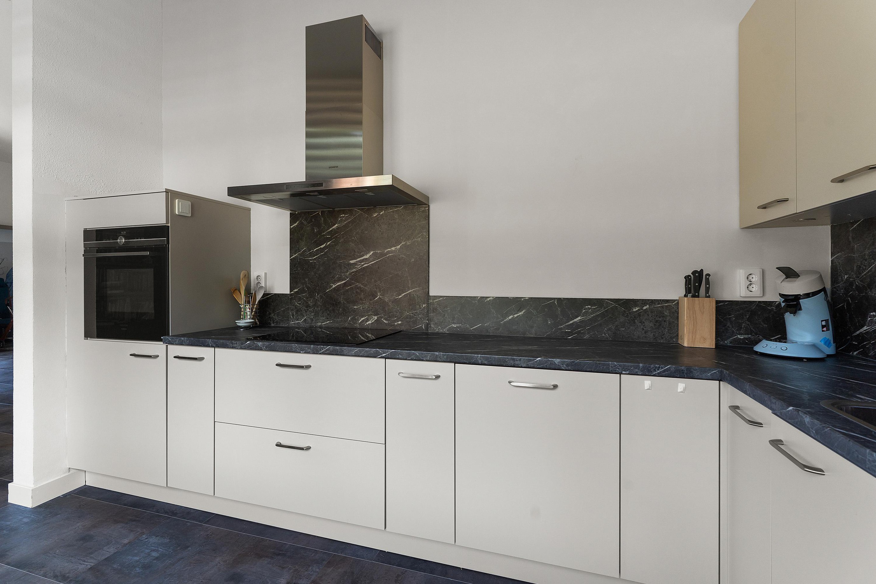 - Nette pvc-vloer in de woonkamer en keuken met vloerverwarming