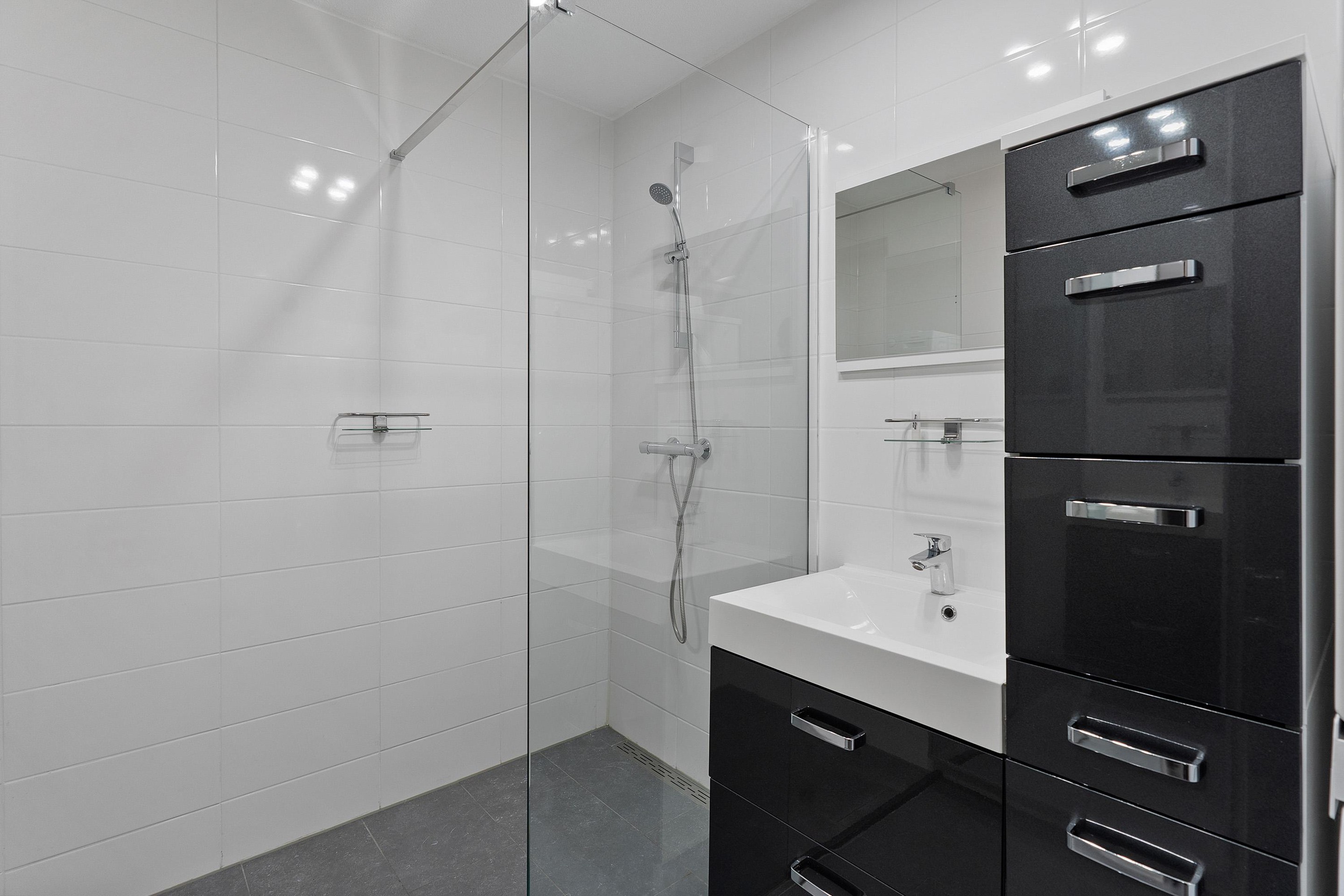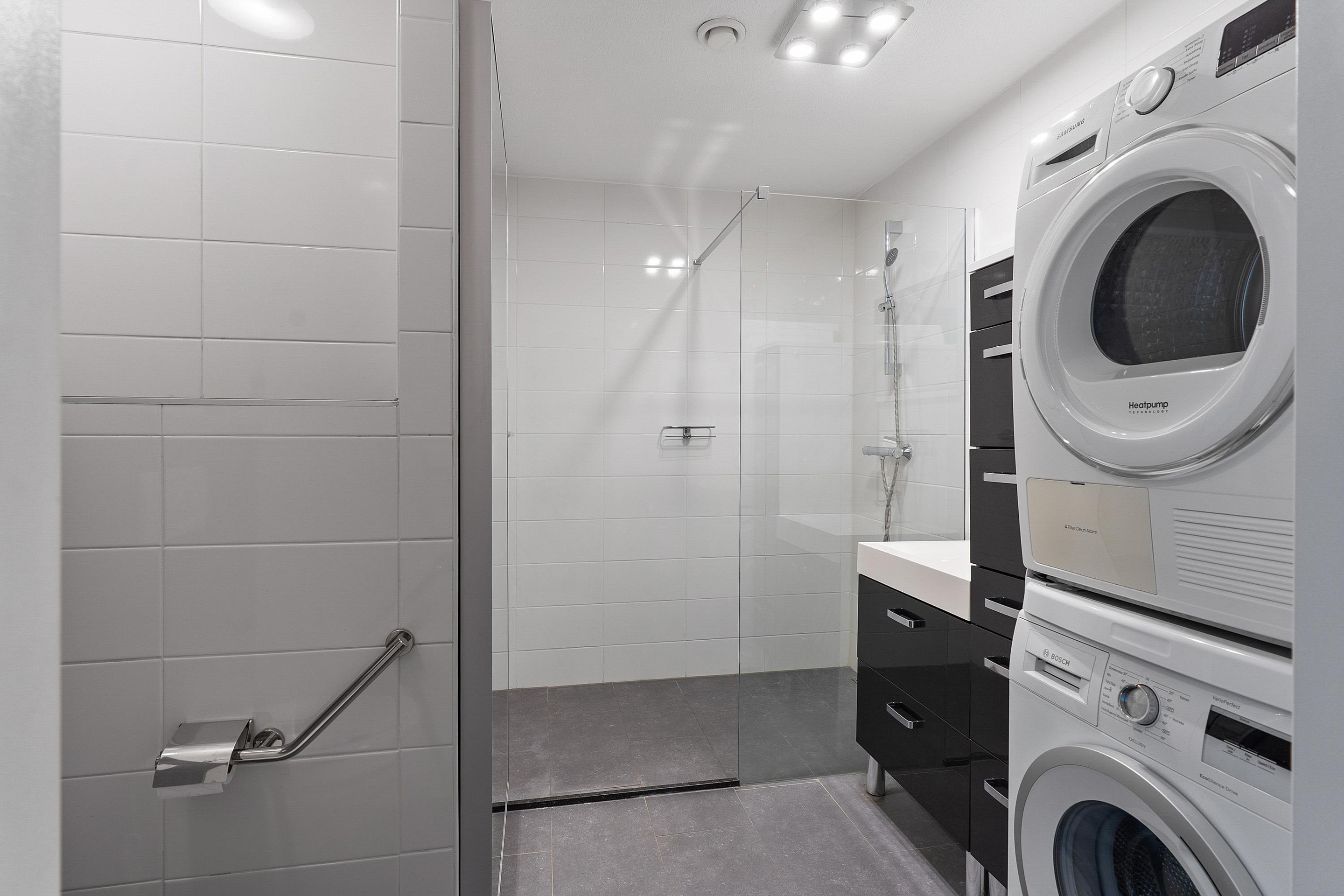 Appartement (split level): Met de trap of lift bereikt u de eerste verdieping van het appartement. De entreehal is voorzien van de meterkast met glasvezelaansluiting en een bergkast. Vanuit de hal heeft u toegang tot de moderne badkamer, compleet met inloopdouche, badkamermeubel, wandcloset en aansluitingen voor wasmachine en droger. Daarnaast is er een aparte ruimte voor de HR CV-ketel van het merk Atag. Via de hal bereikt u de open hobby- en/of slaapruimte; deze ruimte heeft toegang tot de ruime slaapkamer met balkon op het westen, bereikbaar via een aluminium schuifpui. Hier kunt u van de middag- en avondzon genieten.