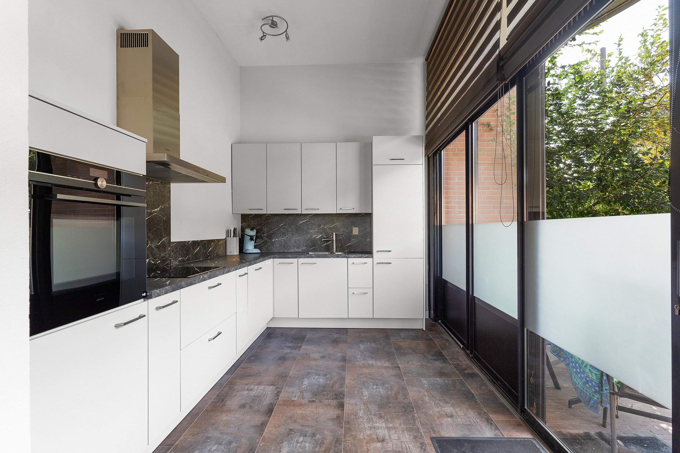Enkele traptreden lager komt u in de ruime woonkamer en eetgedeelte waar een nieuwe pvc-vloer ligt sinds 2020. Een nis in de woonkamer biedt ruimte voor een kantoor. De nette keuken uit 2021 is voorzien van moderne apparatuur van Siemens: een vaatwasser, combi-oven, koel-/vriescombinatie, inductie en afzuigkap. Vanuit de keuken heeft u via een schuifpui toegang tot het zonnige terras op het zuiden en uitzicht op de Havenkom.