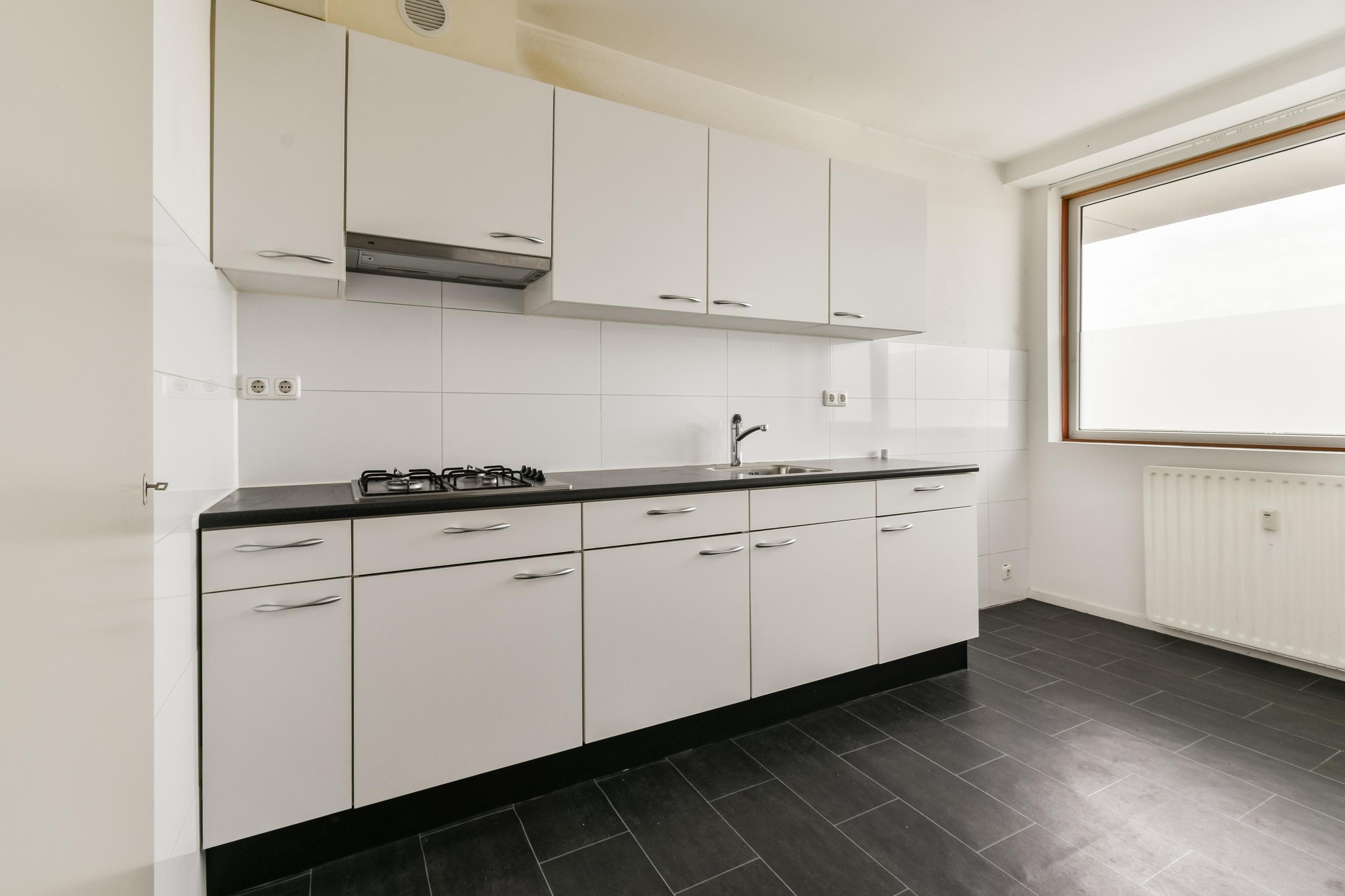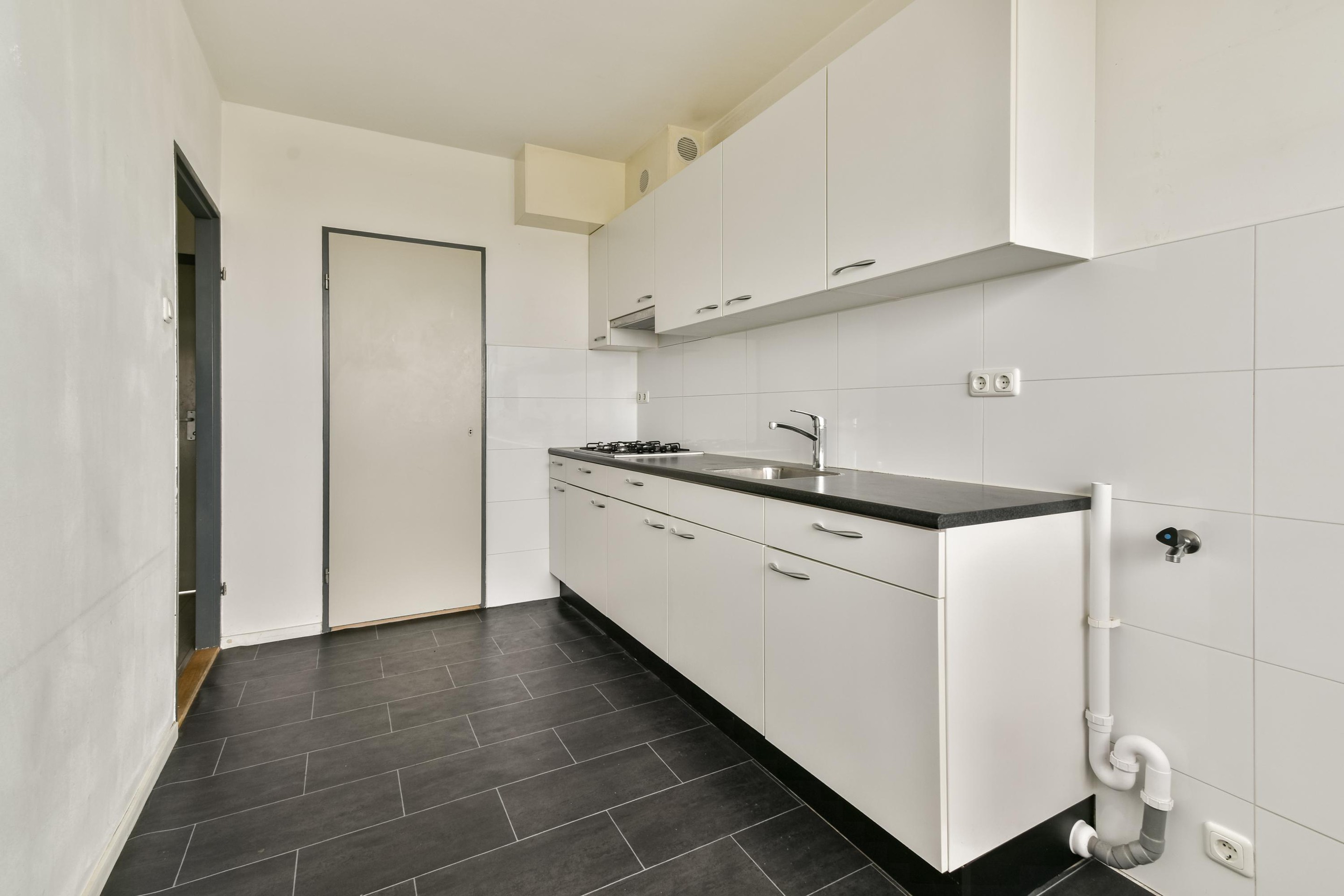 De keuken is apart gepositioneerd en grenst direct aan de woonruimte, wat zorgt voor een praktische indeling met korte looplijnen. De keuken is voorzien van een gaskookplaat en afzuigkap en beschikt over voldoende werk- en kastruimte. Dankzij de opstelling en situering is er bovendien prettig daglicht aanwezig.